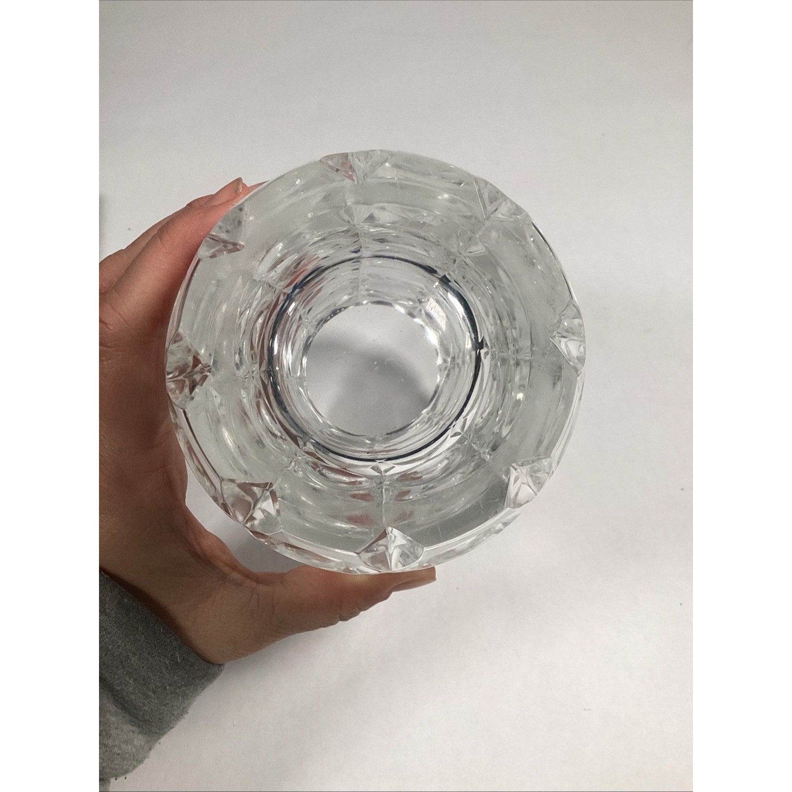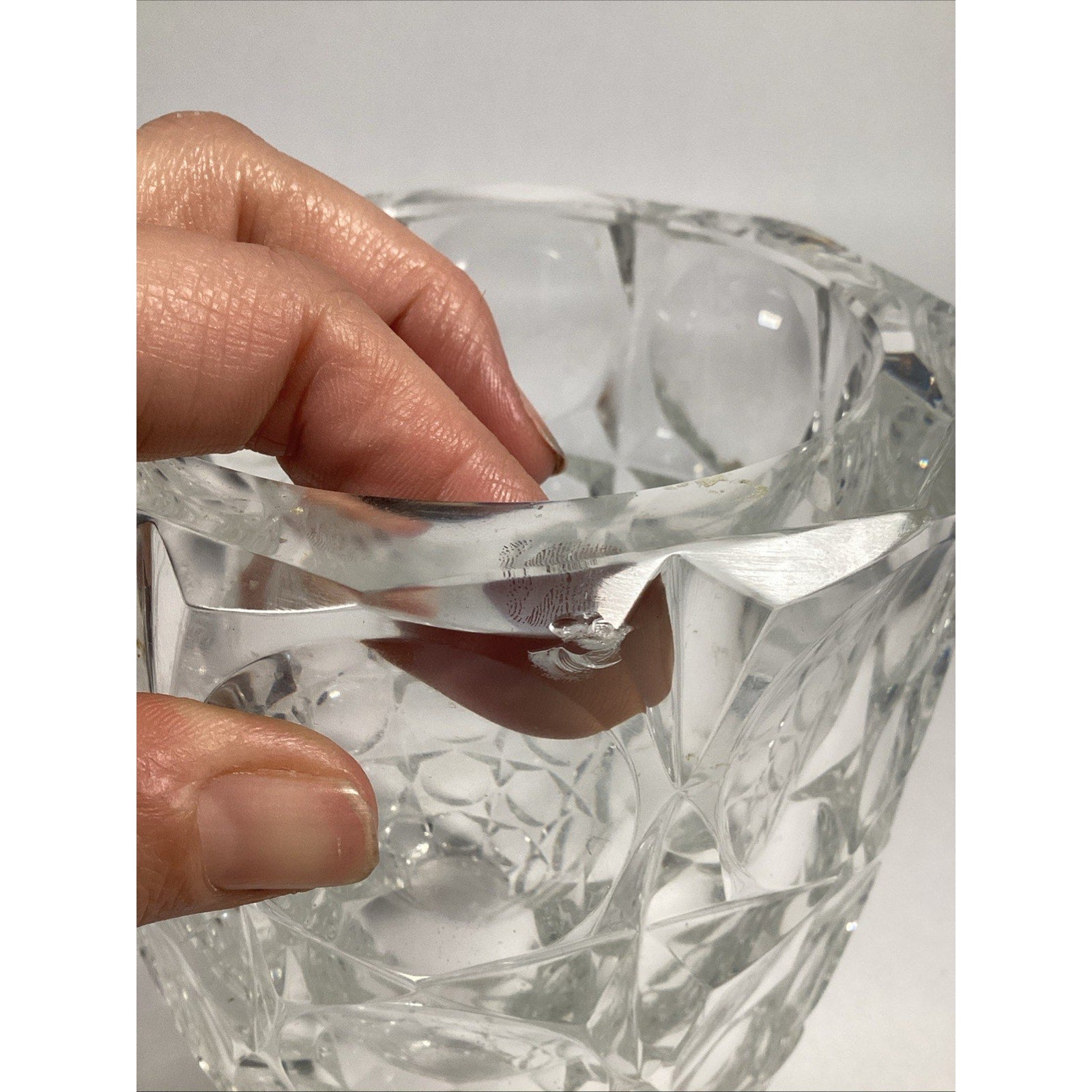 Vintage 1930’s Saint-Louis French Crystal Centerpiece Vase W/ Facet Cut Design. In mostly good condition but it’s not perfect. It has 1 chip near the top edge and there are some stains and scratches on this. This vase measures 7.25”Hx4.75”D and weighs 4.11 pounds.