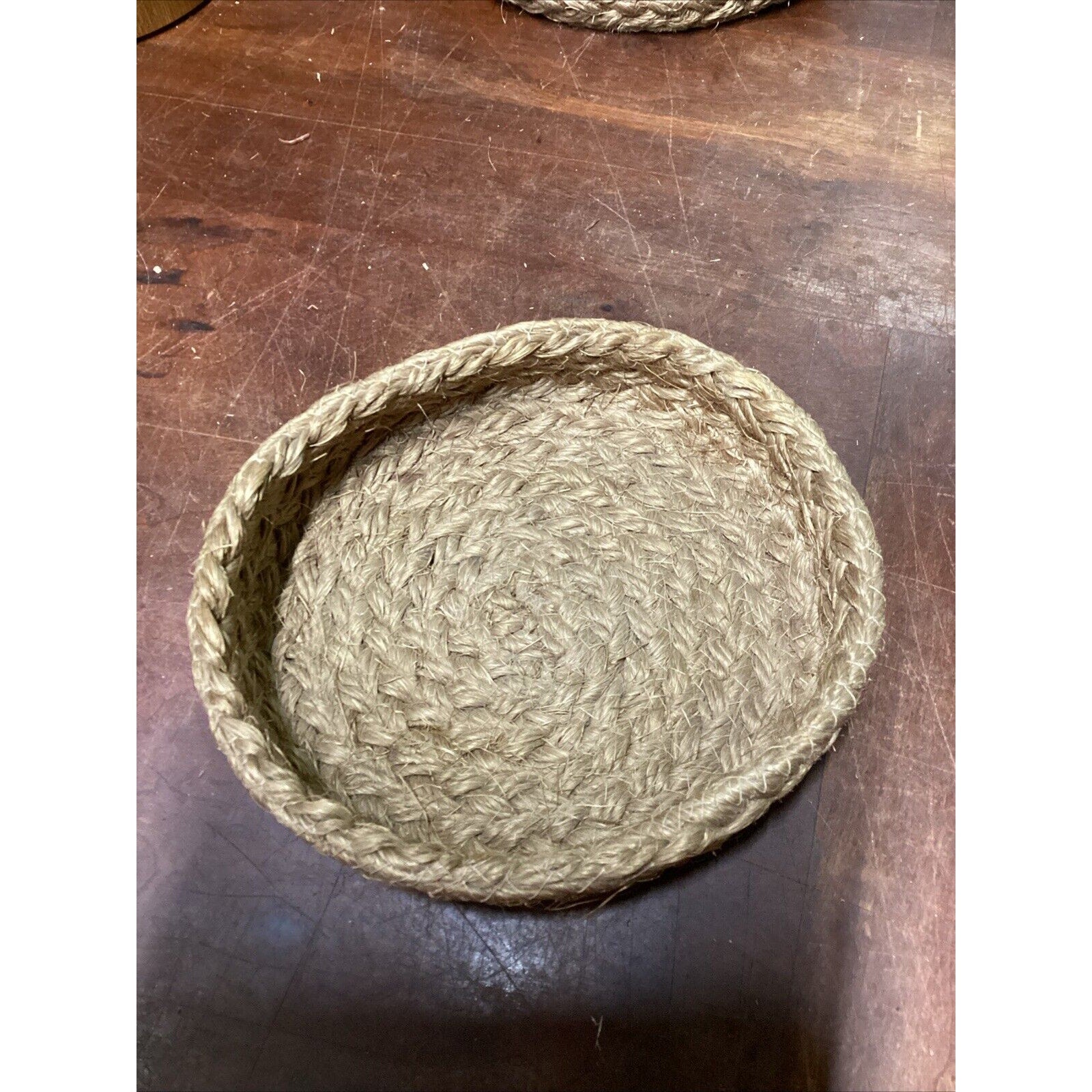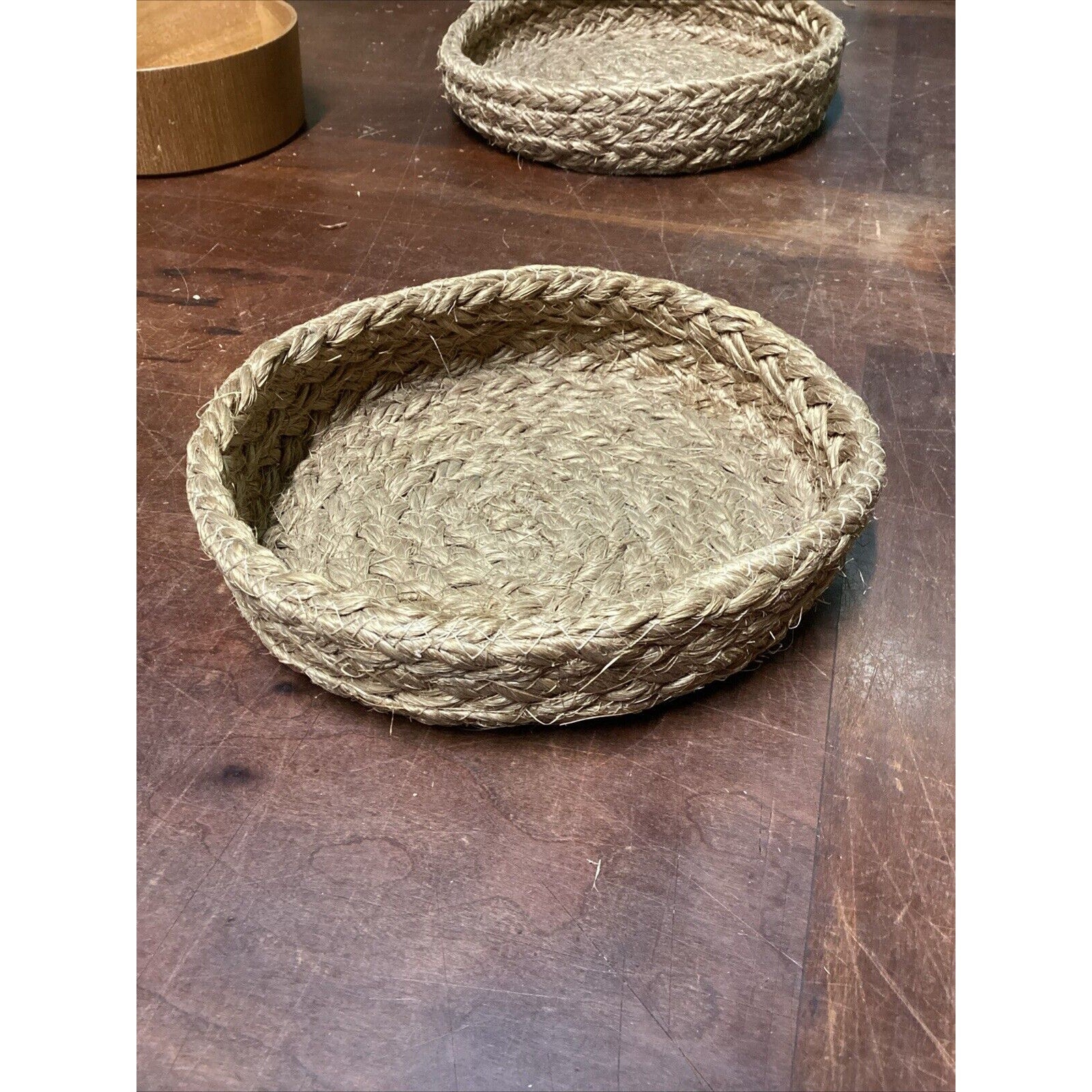 2 Corn Husk Rope Basket Trays & 3 Wooden Nesting Bowls