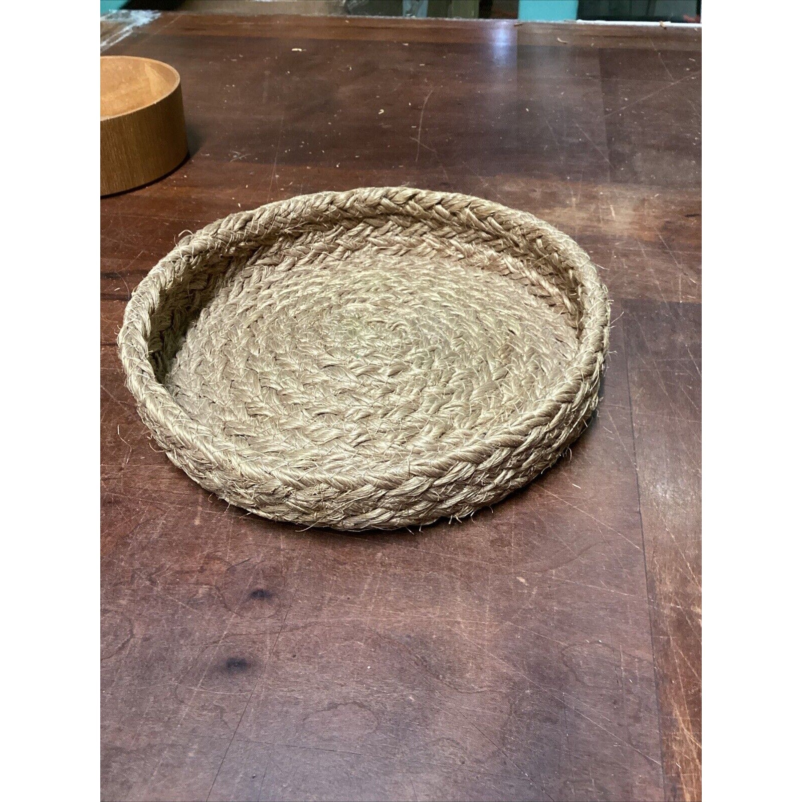 1. Larger rope basket measures 2”Hx9.25”D. This baskets center is raised a bit