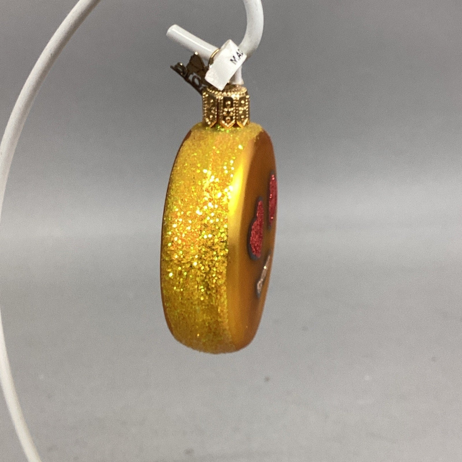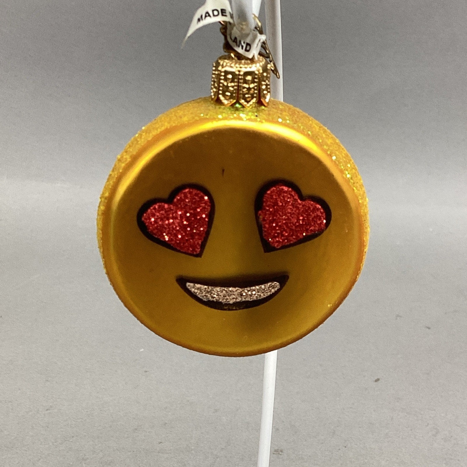 2016 Glass Emoticon Smiley Face With Heart Ornament. Made in Poland. In good condition. It’s 2.25”D