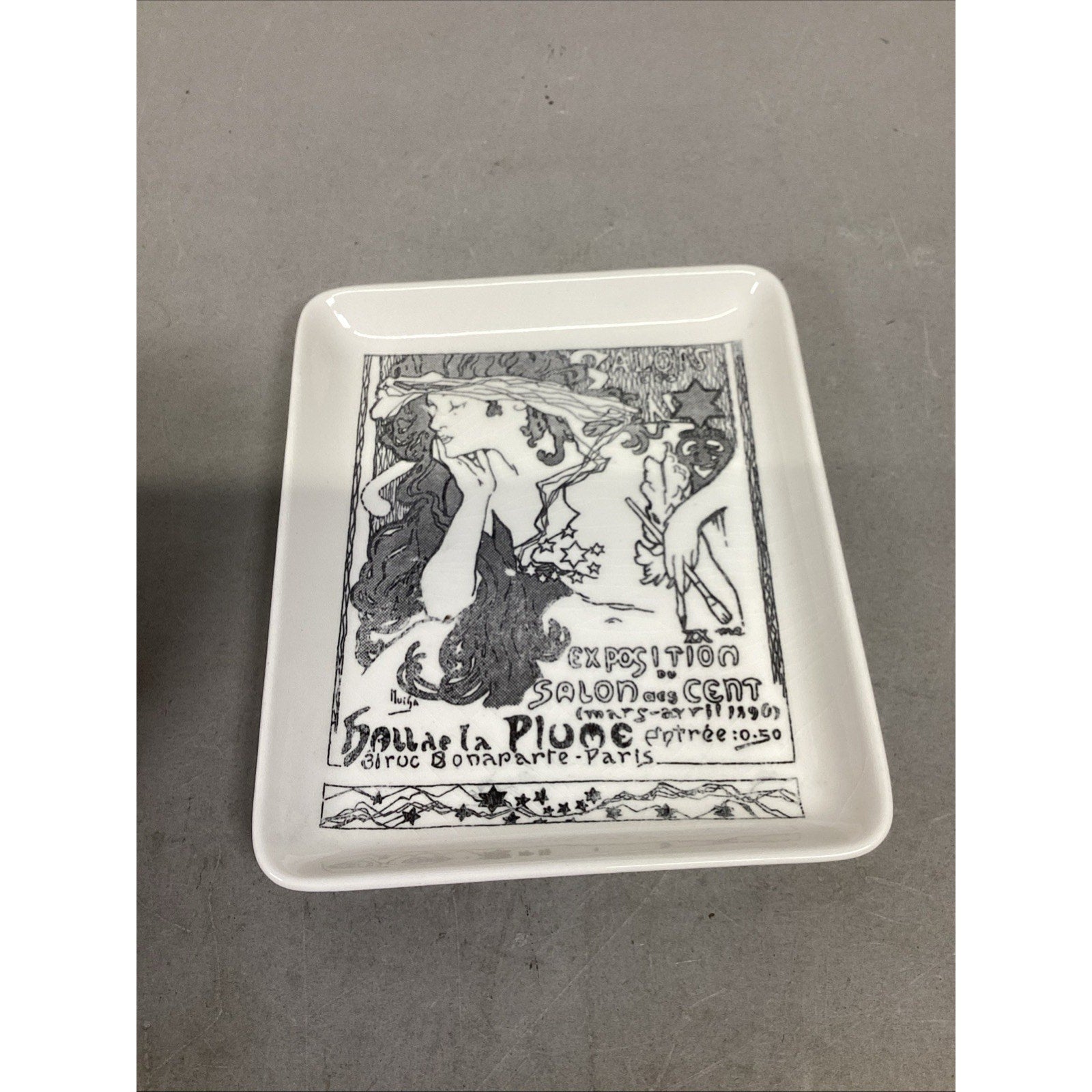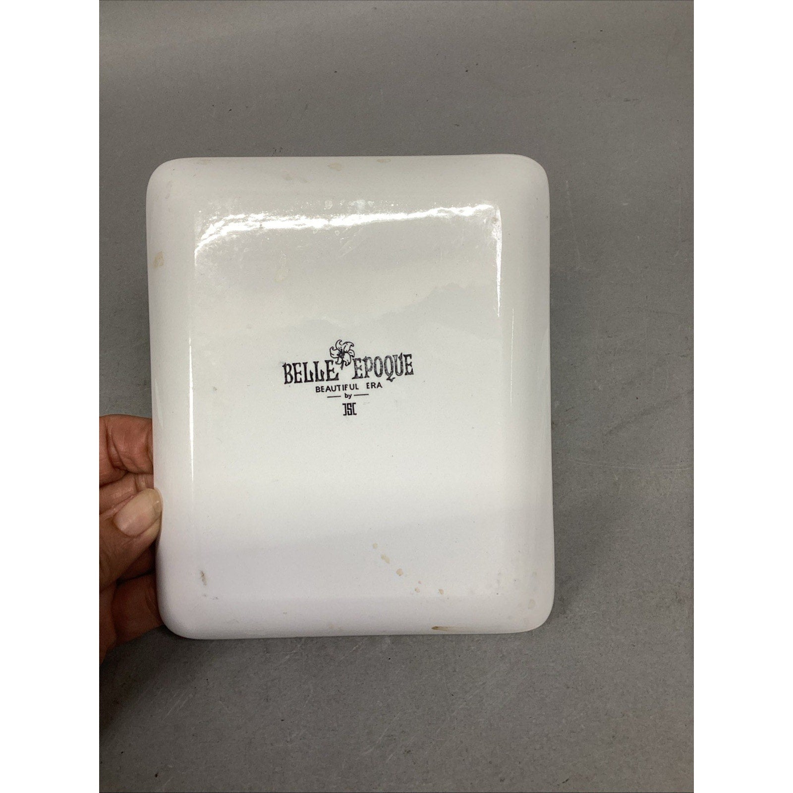3 Belle Epoque Trinket Trays French Actresses - Made In Paris, France - 6x5”. In good condition with no cracks or chips. These do have some stains which Should wash out with a good scrubbing.