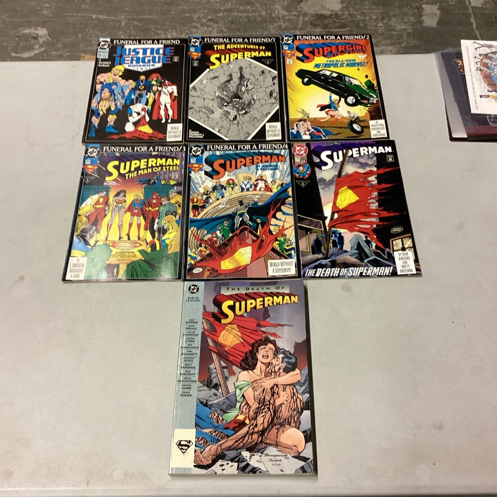 7 DC Comics - Comic Books - Superman #1-4, Justice League, Death Of Superman