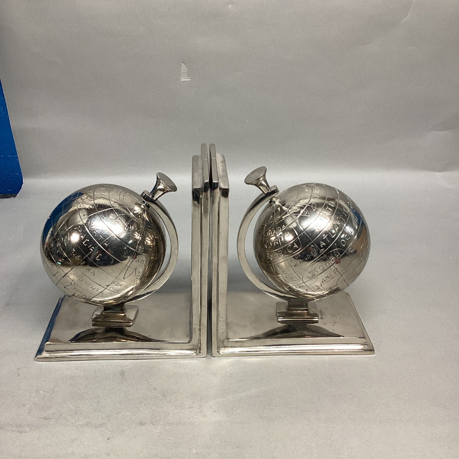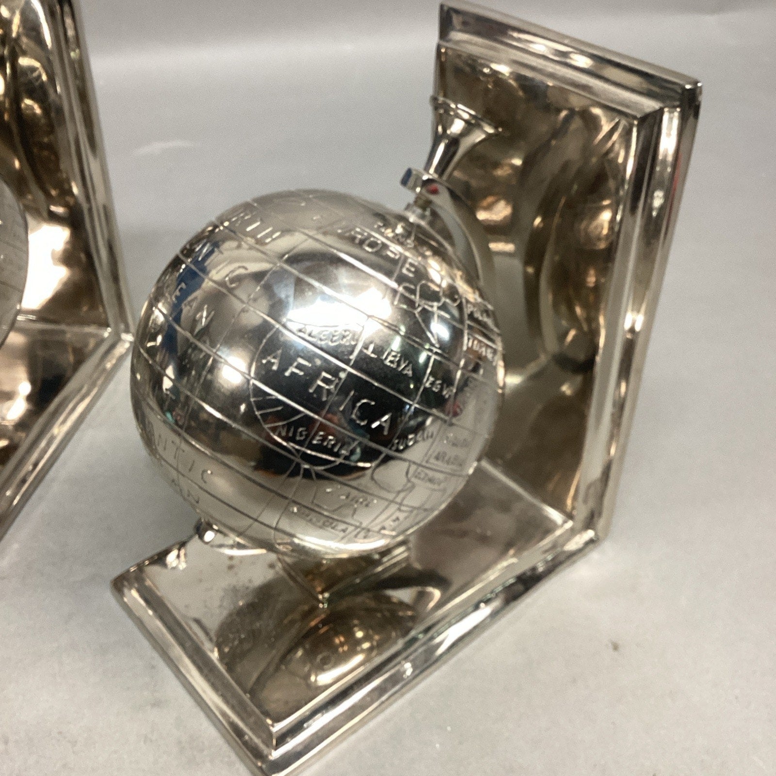 Aluminum Globe Bookends - Nickel Plated - Globes Spin