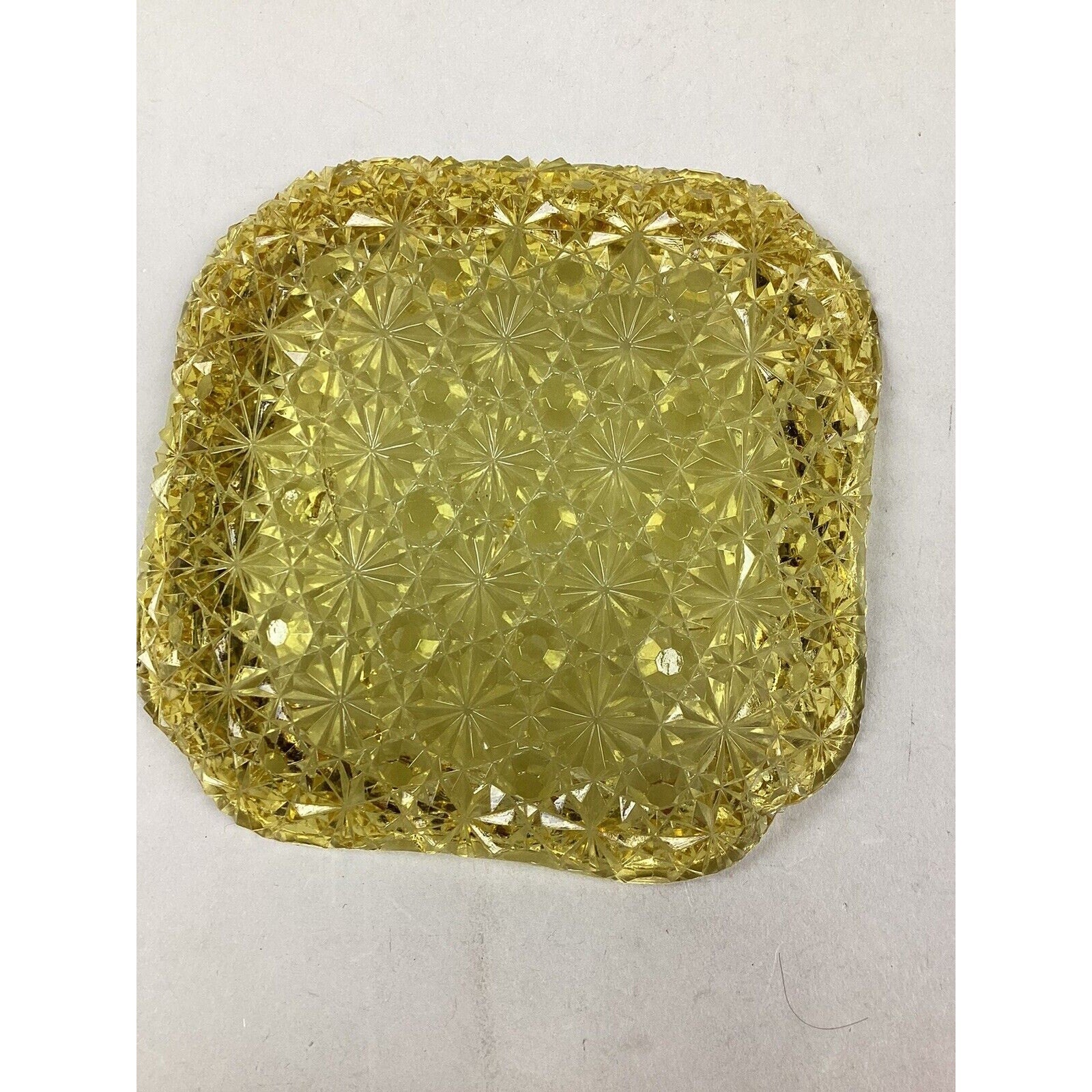 You are bidding on a beautiful set here. An Amber Gold Star Cut Glass Serving Dish & 6 Curved Dessert Bowls/Plates. Excellent condition. I didn’t notice any chips or cracks in the glass for the dessert plates but in the serving dish, you can see a scratch on the interior base. I don’t believe it’s cracked or chipped though. It looks like a scratch. There are other very light scratches on the interior base too but those are less visible then the bigger one.