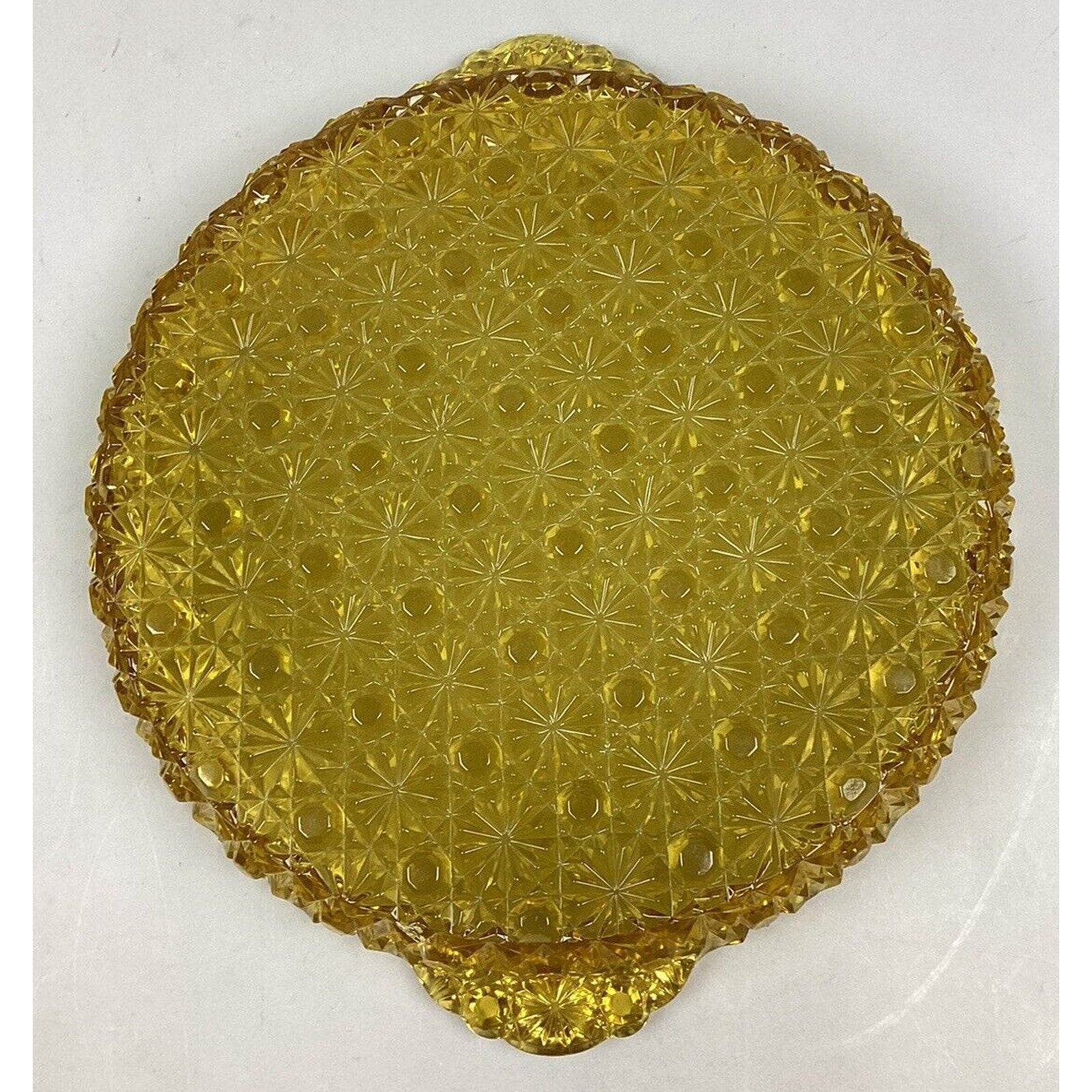 Amber Gold Star Cut Glass Serving Dish & 6 Curved Dessert Bowls/Plates