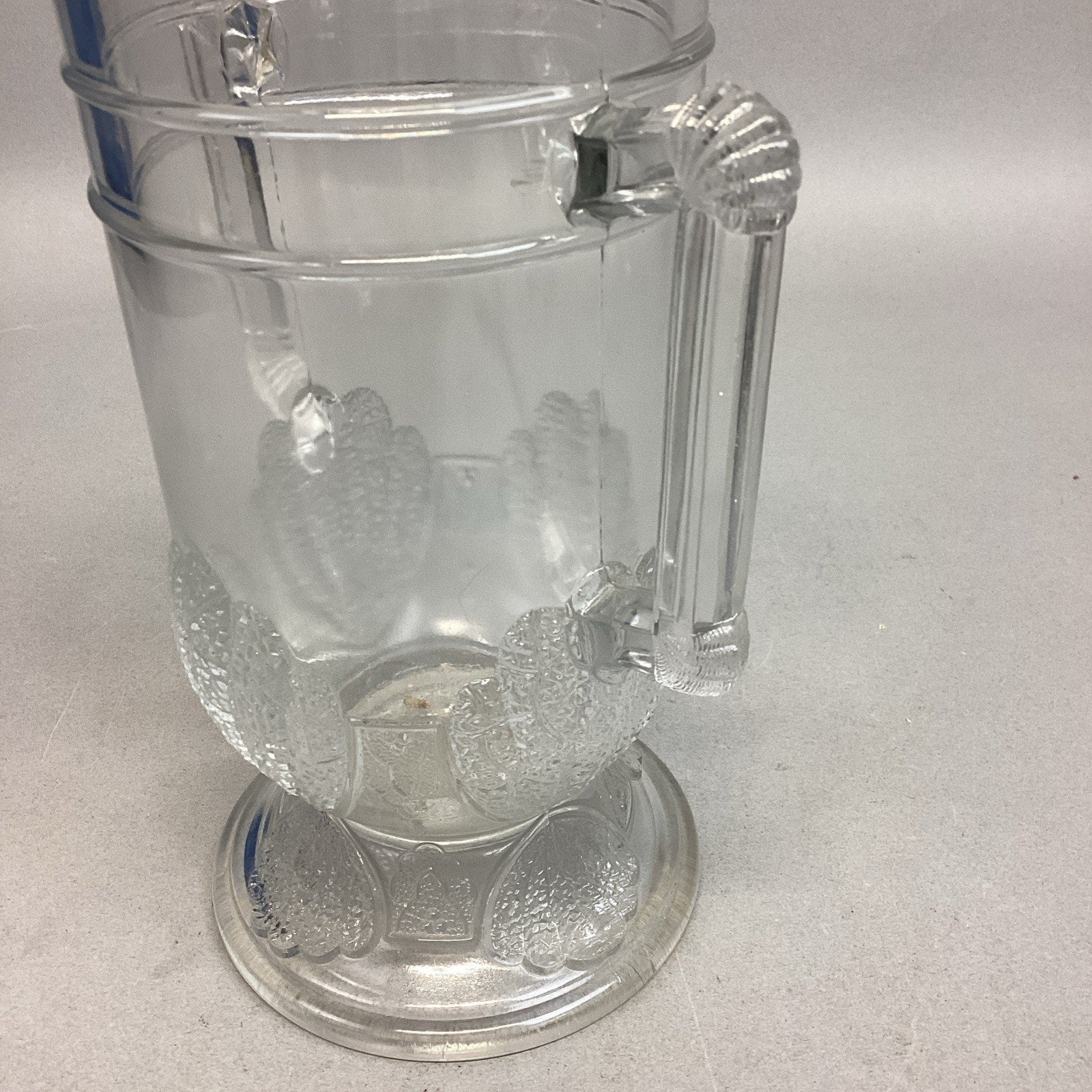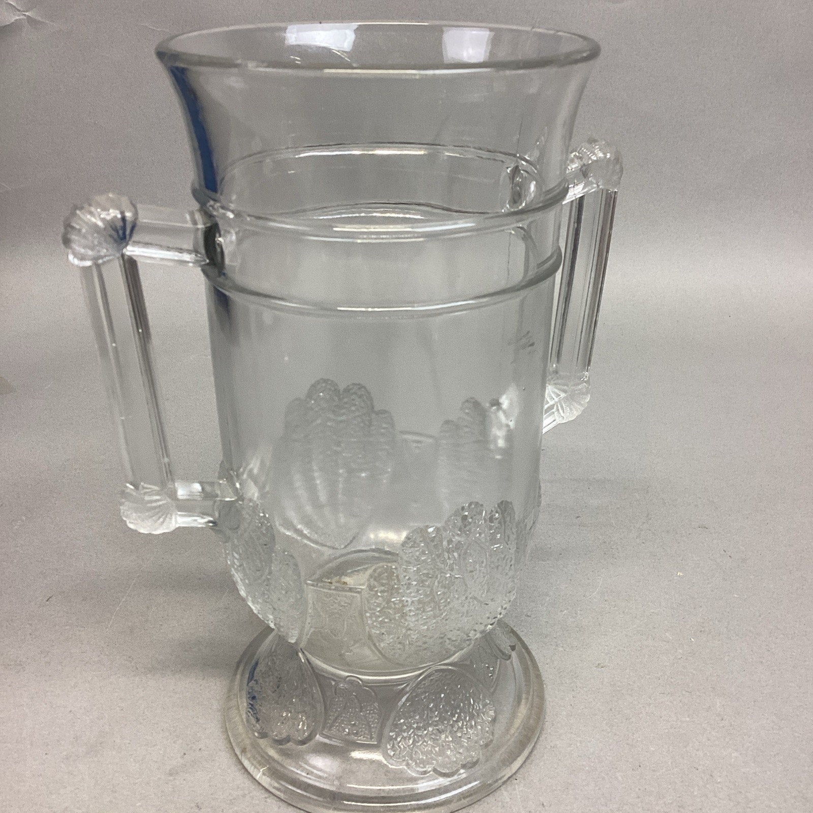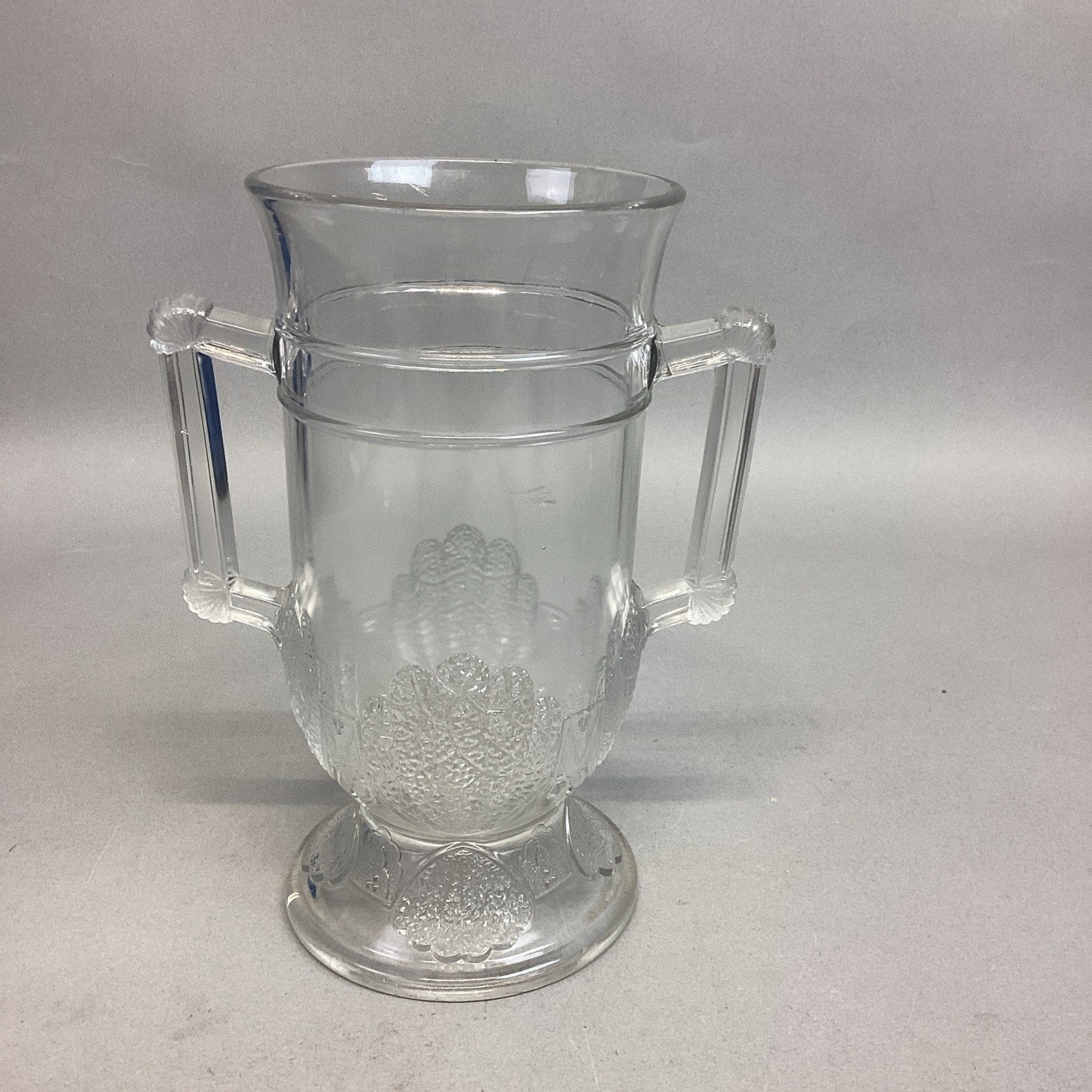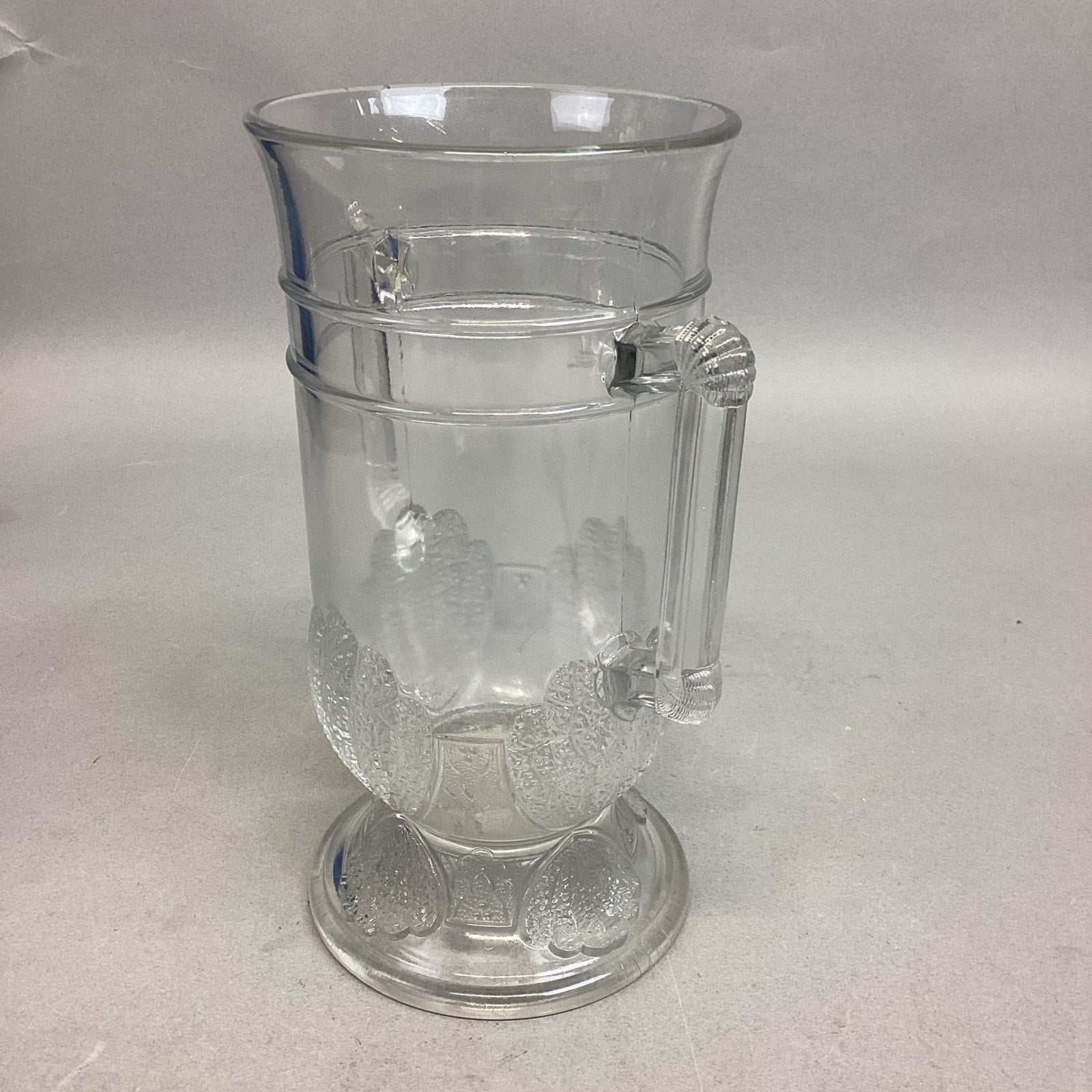 Antique 1880 EAPG Duncan & Sons Pressed Glass Shell & Tassel Spooner - 8”H. In good condition overall. No cracks or chips but it does have some scratches from age and normal use. Measures 8”Hx4”Di and is 6.75” deep.