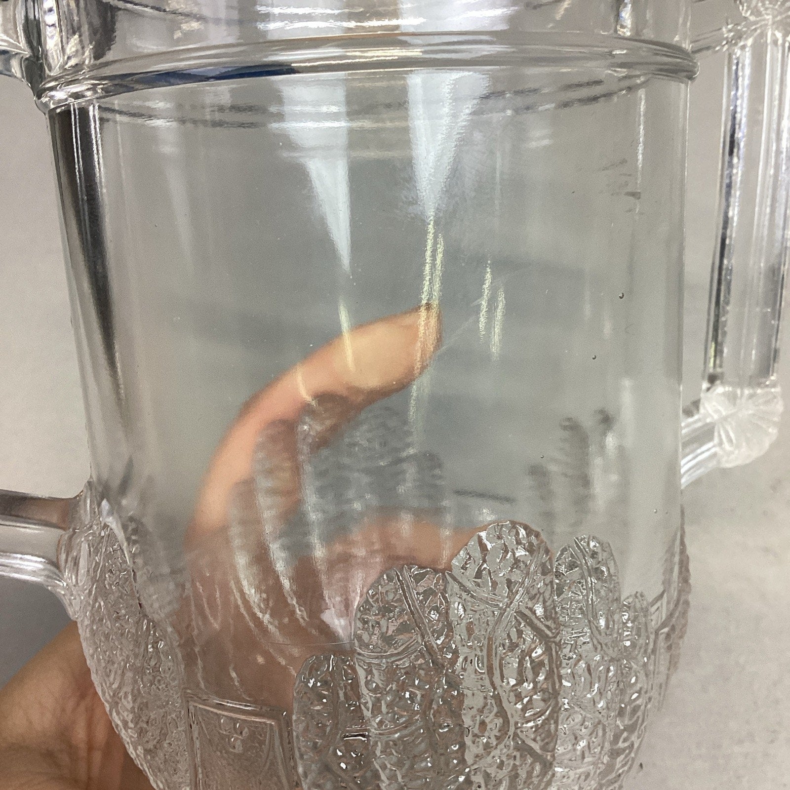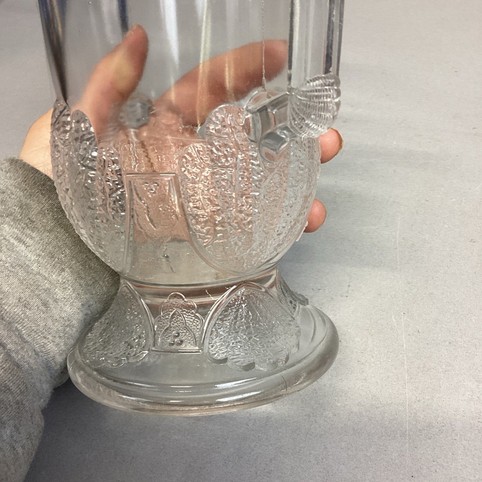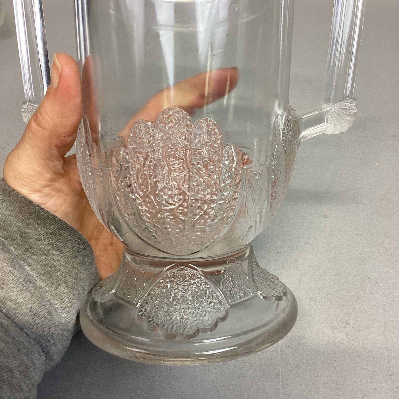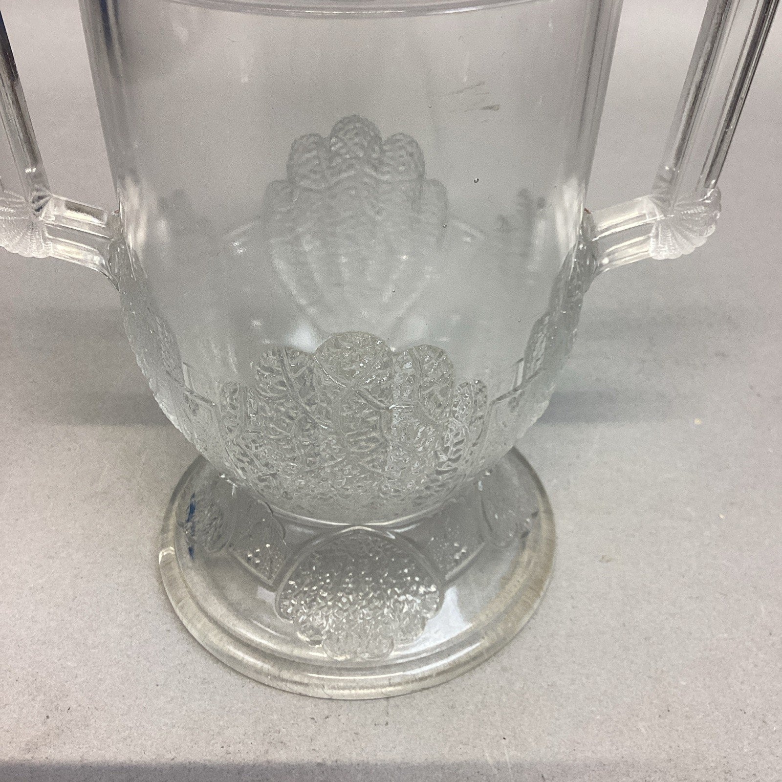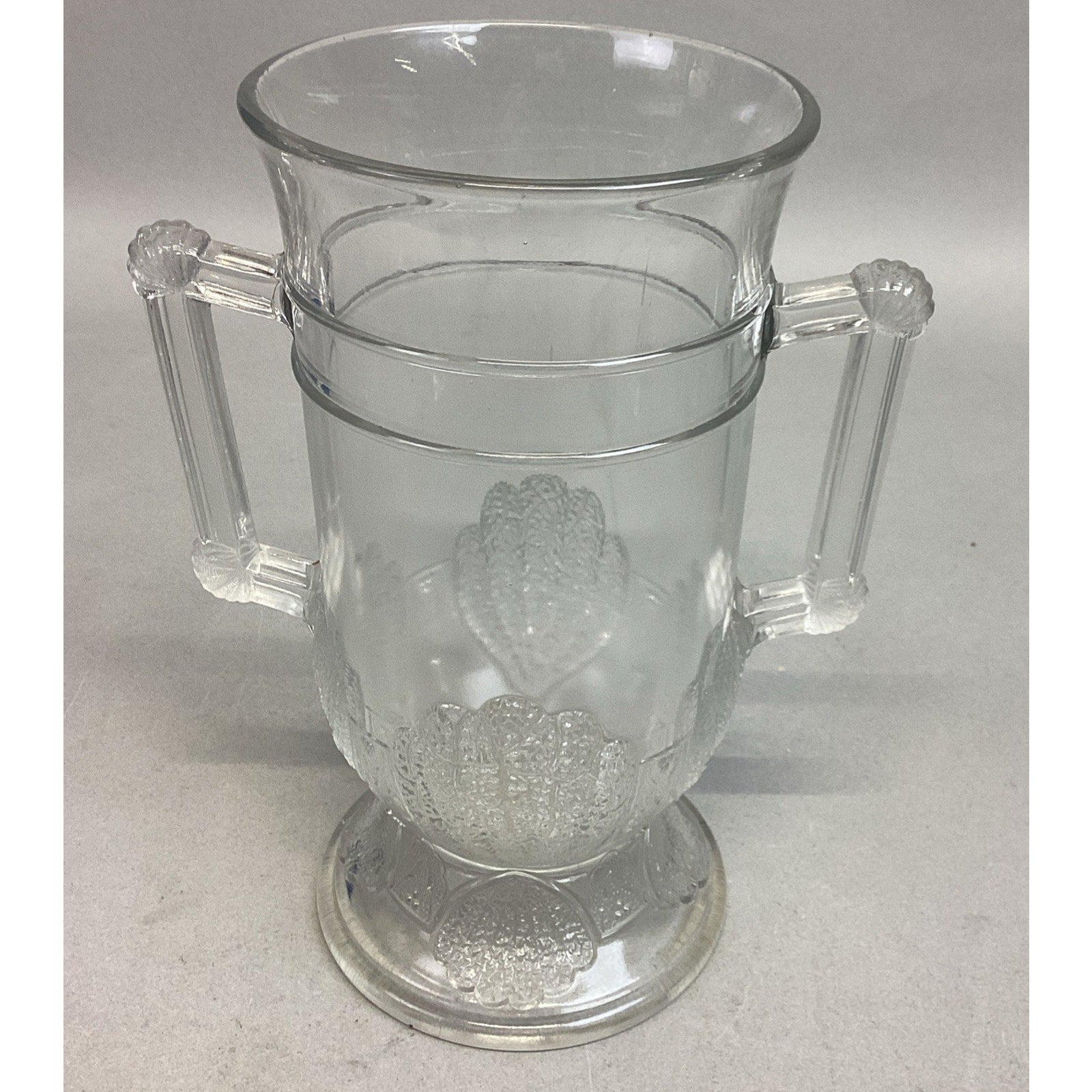 Antique 1880 EAPG Duncan & Sons Pressed Glass Shell & Tassel Spooner - 8”H. In good condition overall. No cracks or chips but it does have some scratches from age and normal use. Measures 8”Hx4”Di and is 6.75” deep.