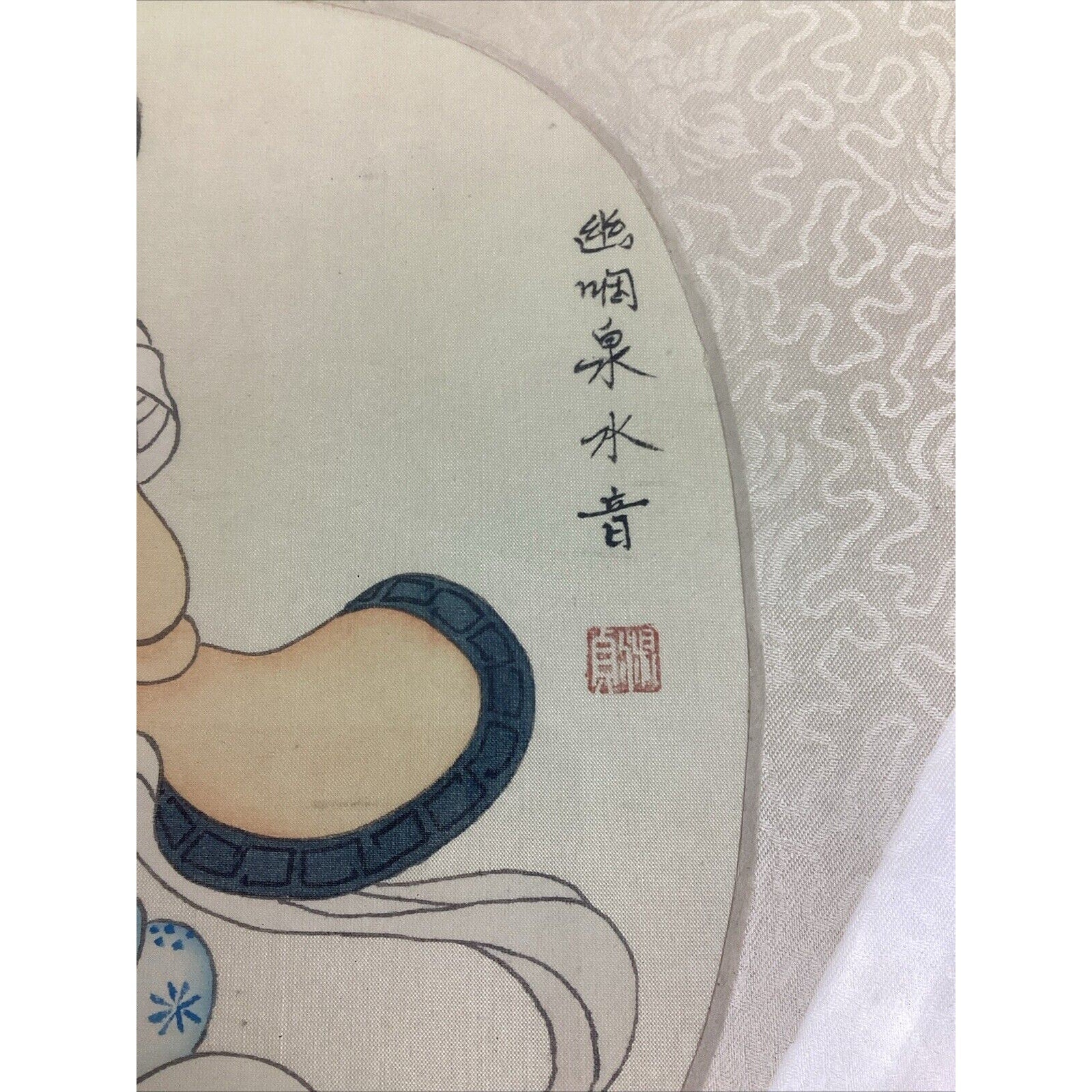 This is an Antique Chinese Watercolor Painting On Silk - Girl Playing instrument