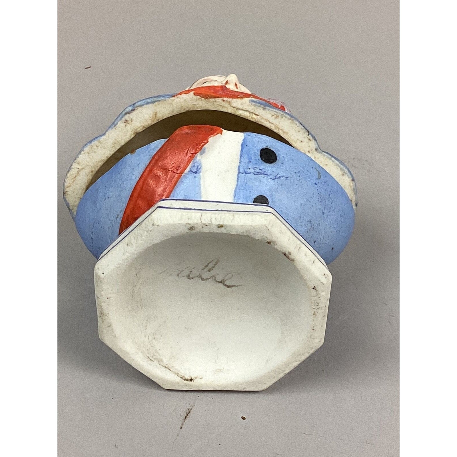 These are in used condition. The interior of the man bust is dirty and could use a good cleaning. There’s a few marks on his exterior too. This piece measures approx 5.25”Hx3.5”Lx2.5”W