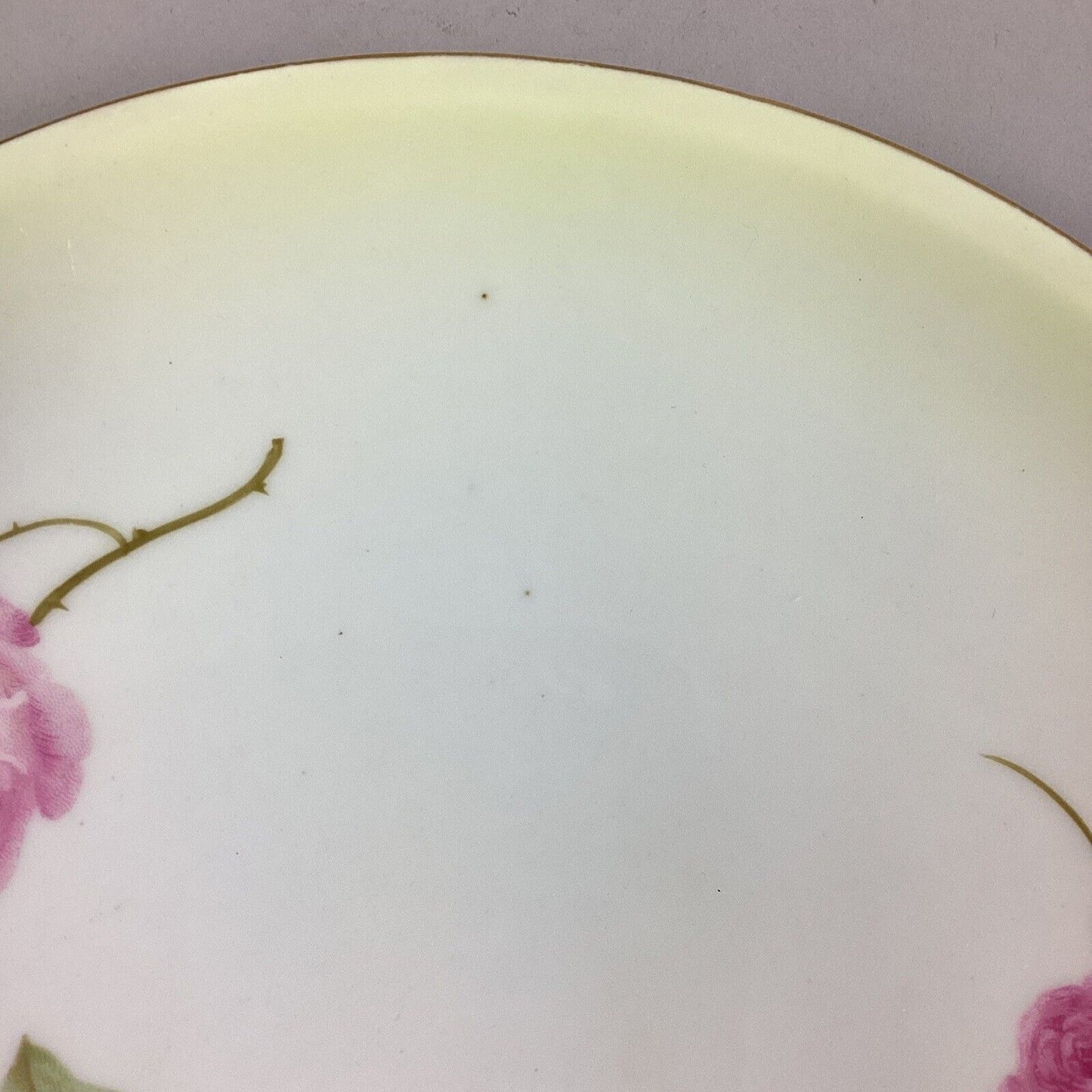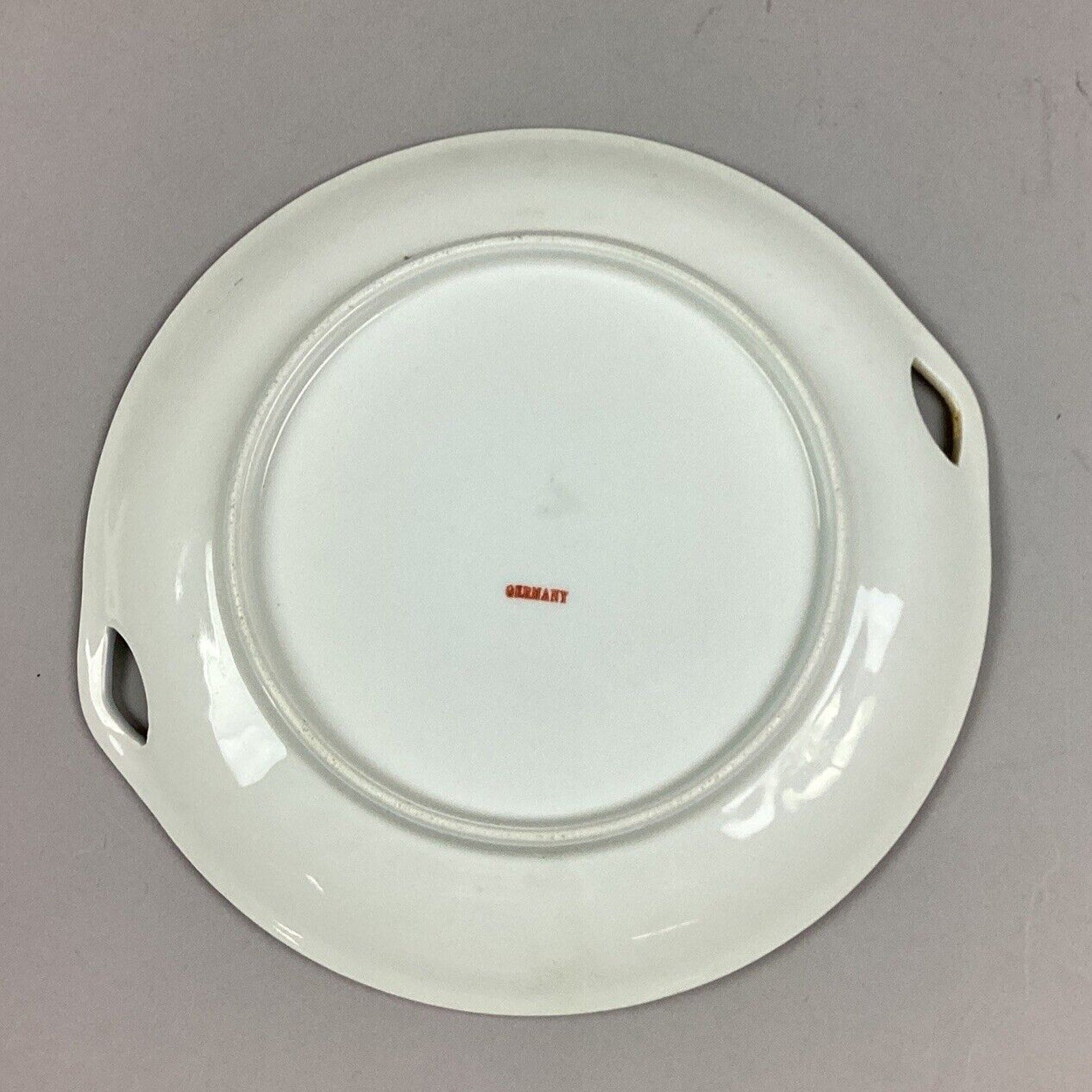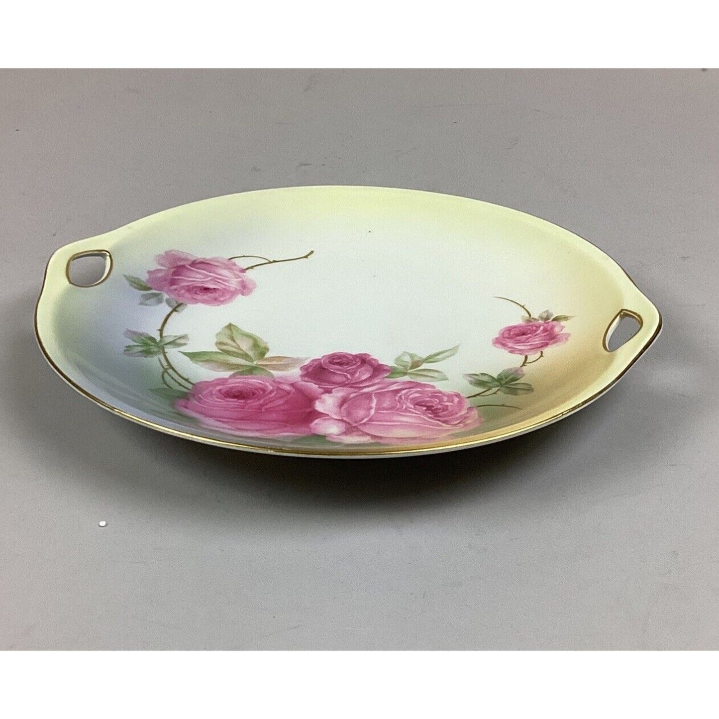 Antique German Roses Cookie Cake Dessert Serving Dish With Gold Trim & Handles