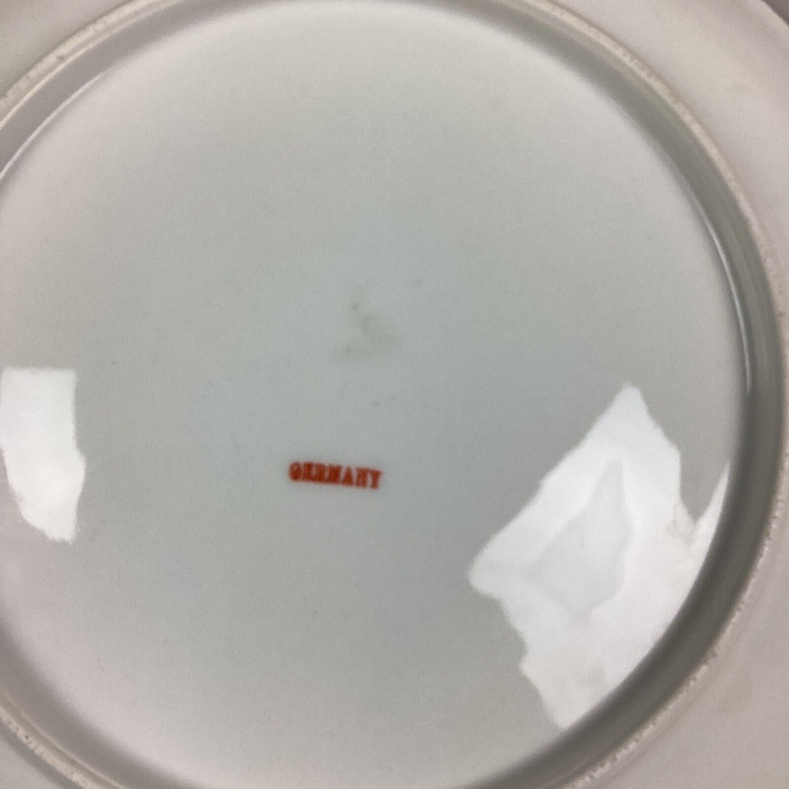 This is a beautiful vintage German serving dish for cookies, cakes or other pastries. It’s in very good condition. There are a few marks on the front, but upon inspection, I didn’t notice any chips or cracks in it. It has 2 small handles on the side and gold trim around the edges and the handles. This dish is concave so it’s flat in the middle and the sides are curved.