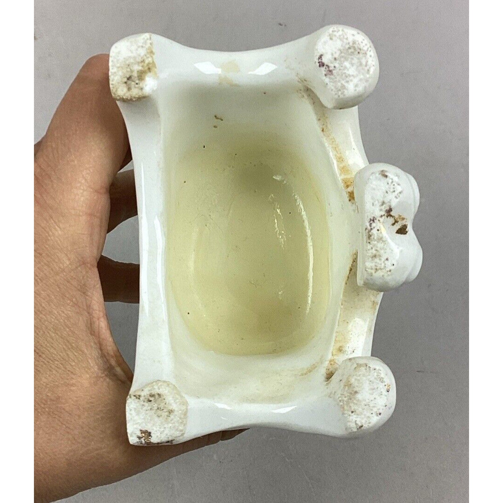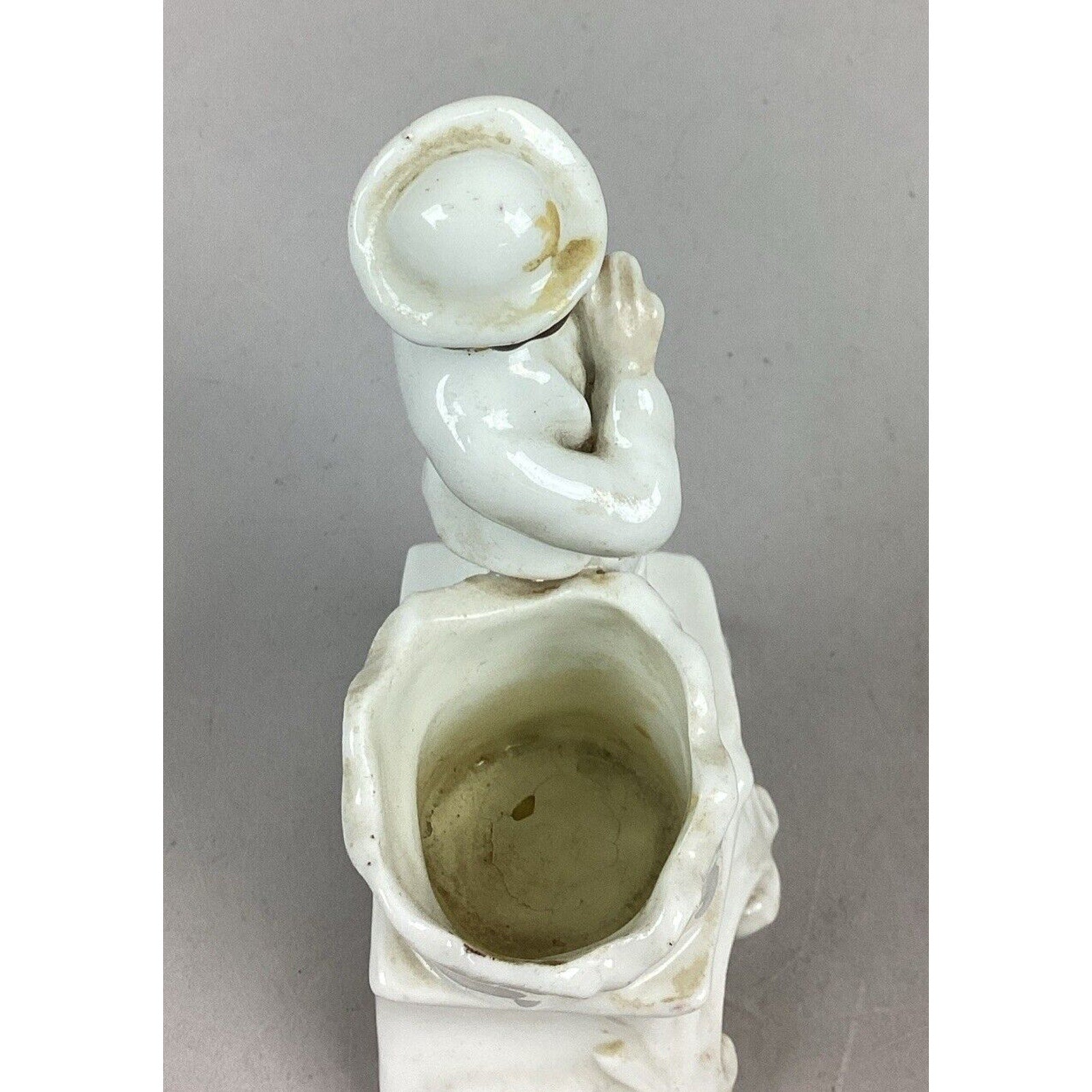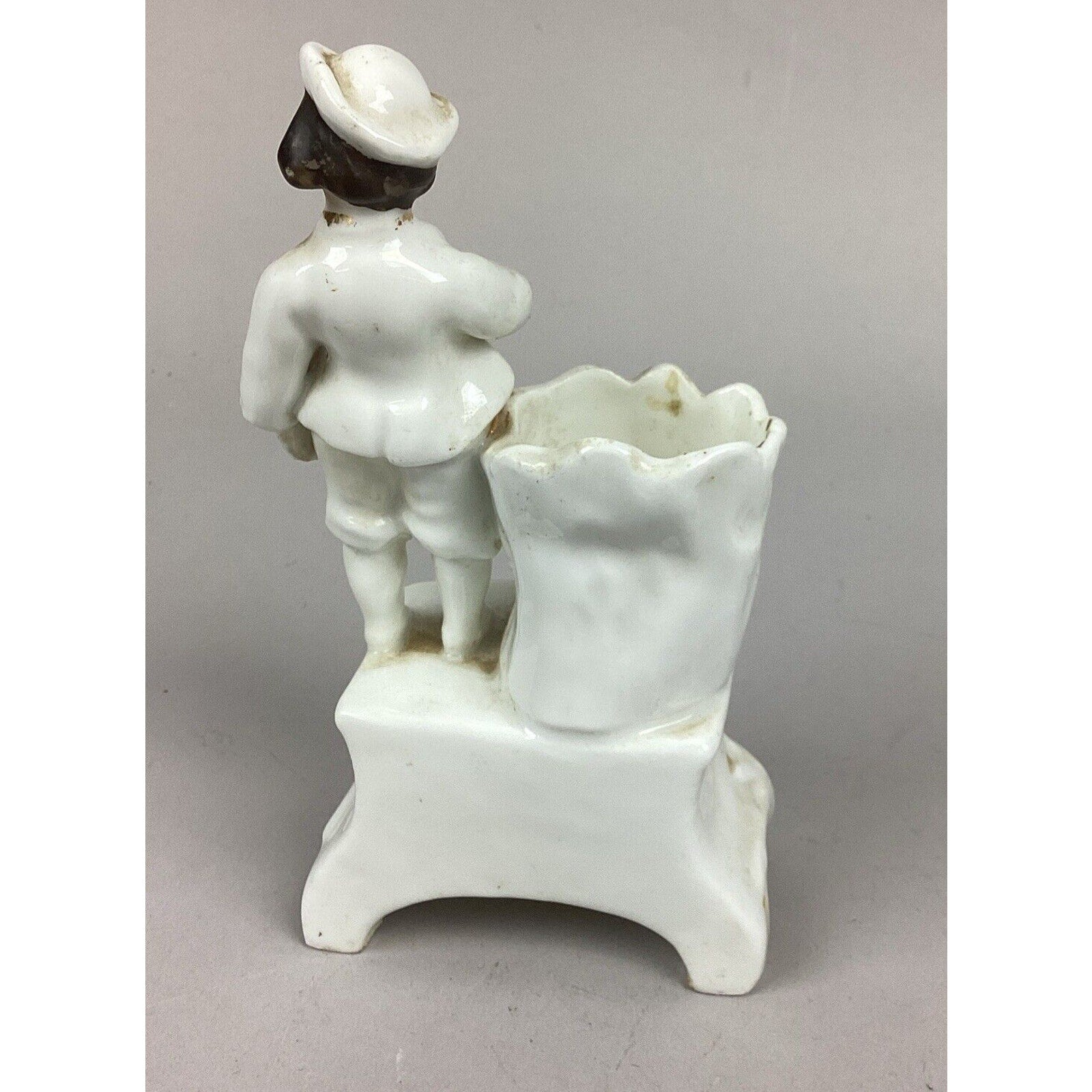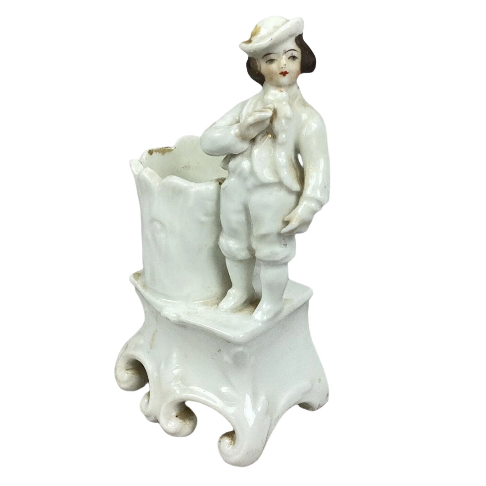 This figurine is in fair condition. There are quite a few marks I. The material and at the bottom of the vase, there’s a chip in the porcelain and it almost appears that the lower half of the vase was repaired at some point.