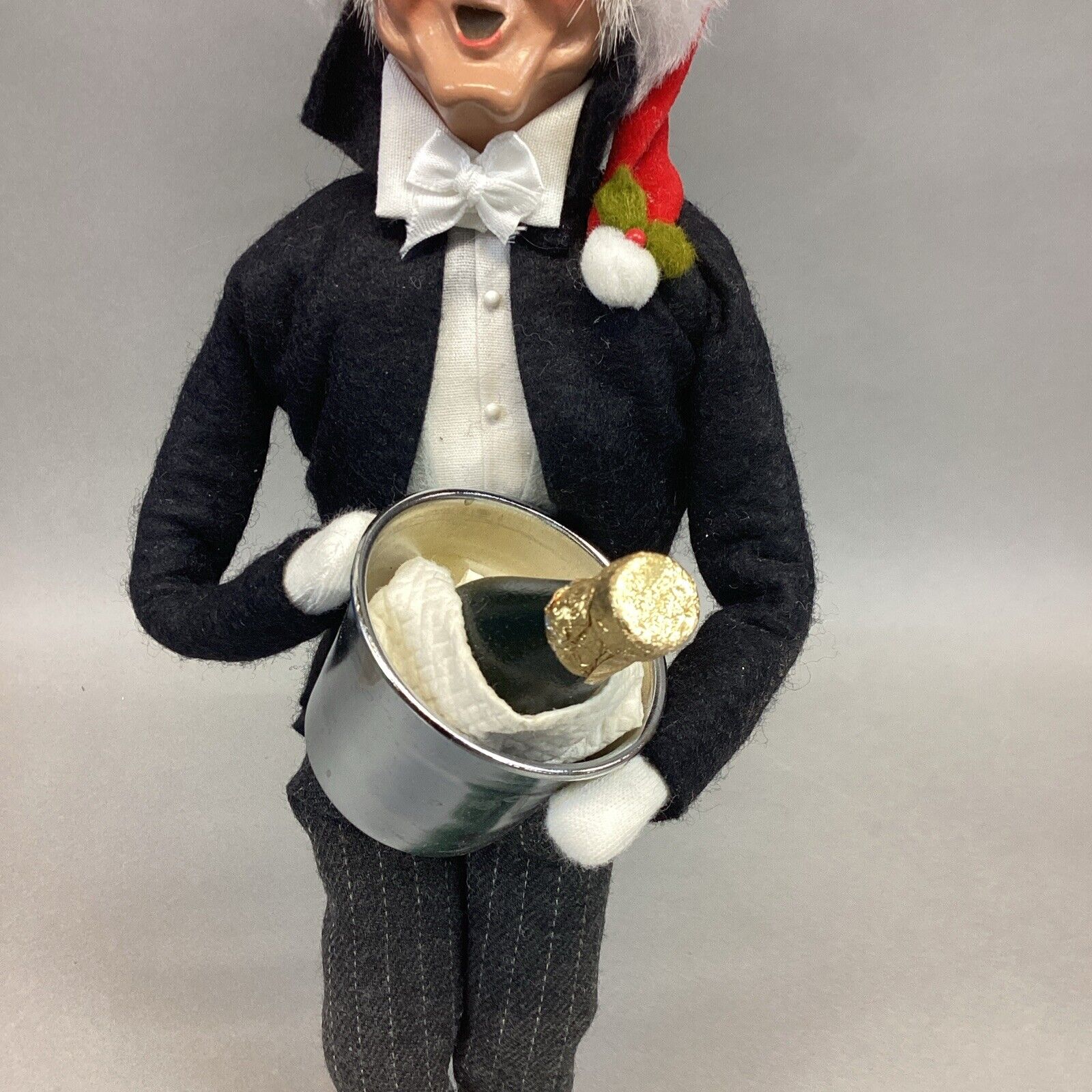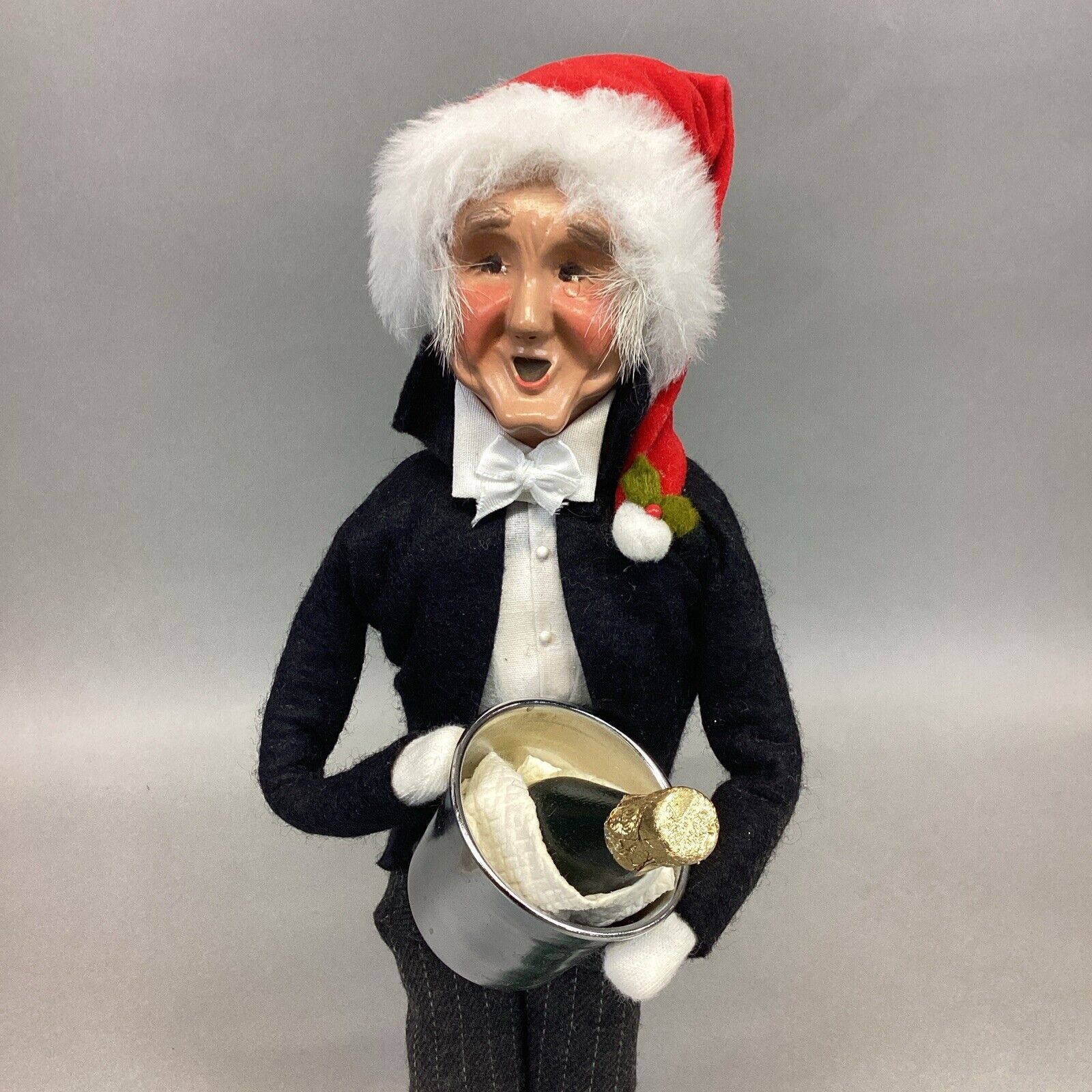 Byers Choice 1999 Caroler Man Butler w/ Santa Hat Holding Ice Bucket & Champagne