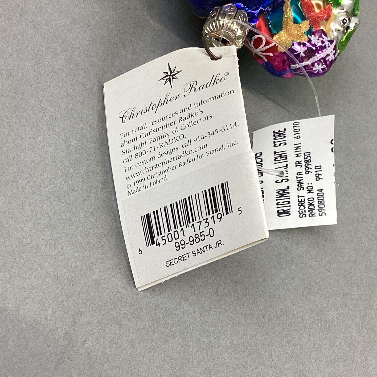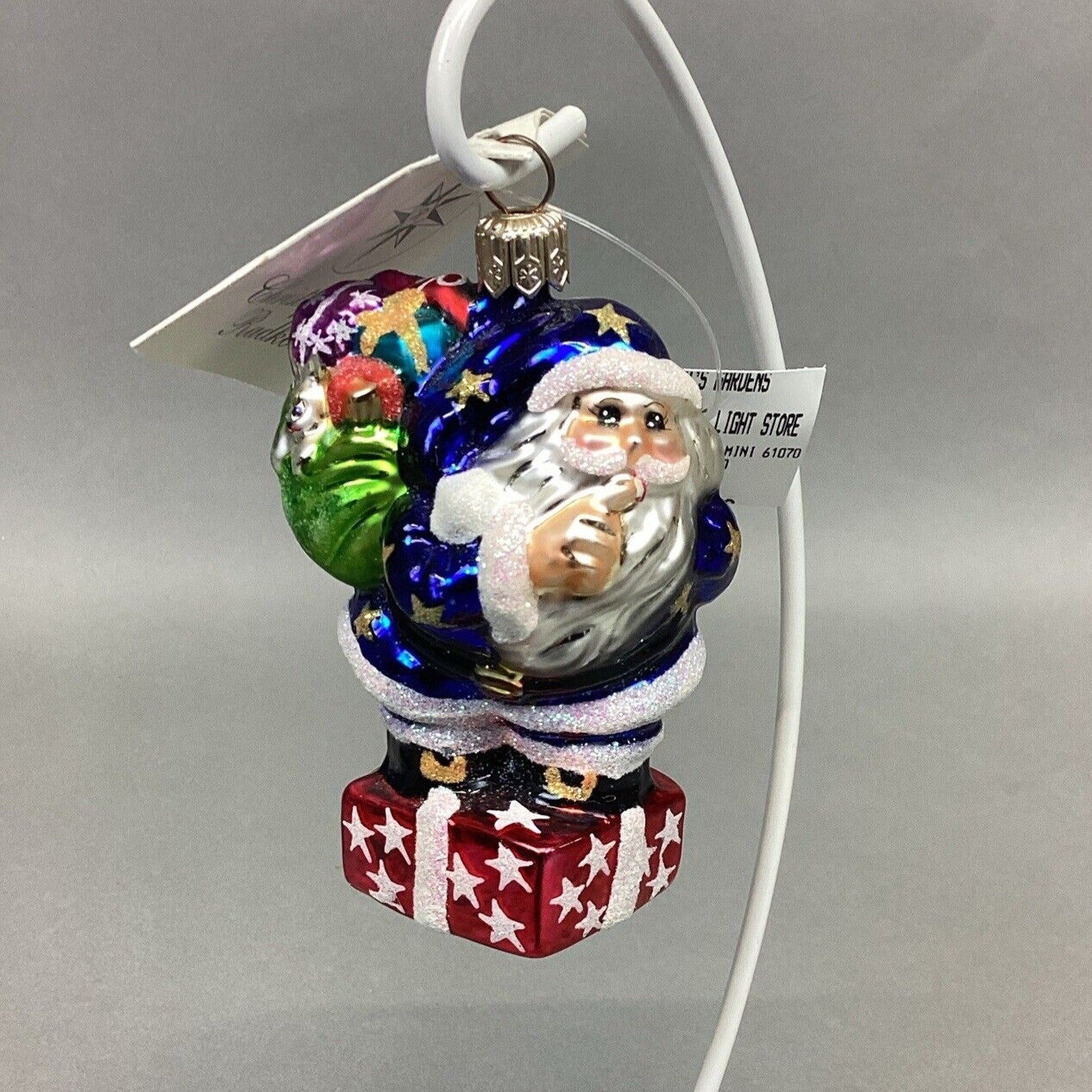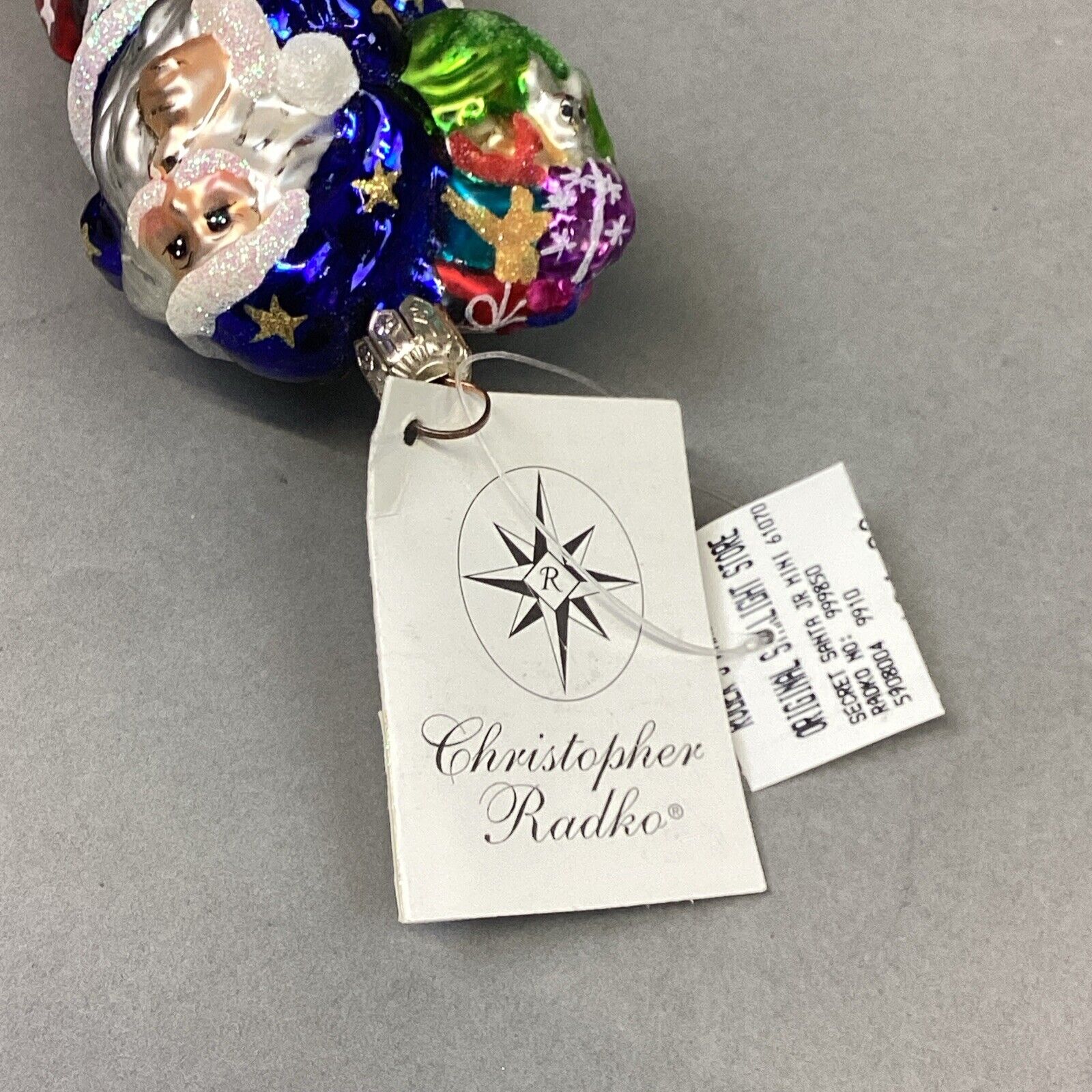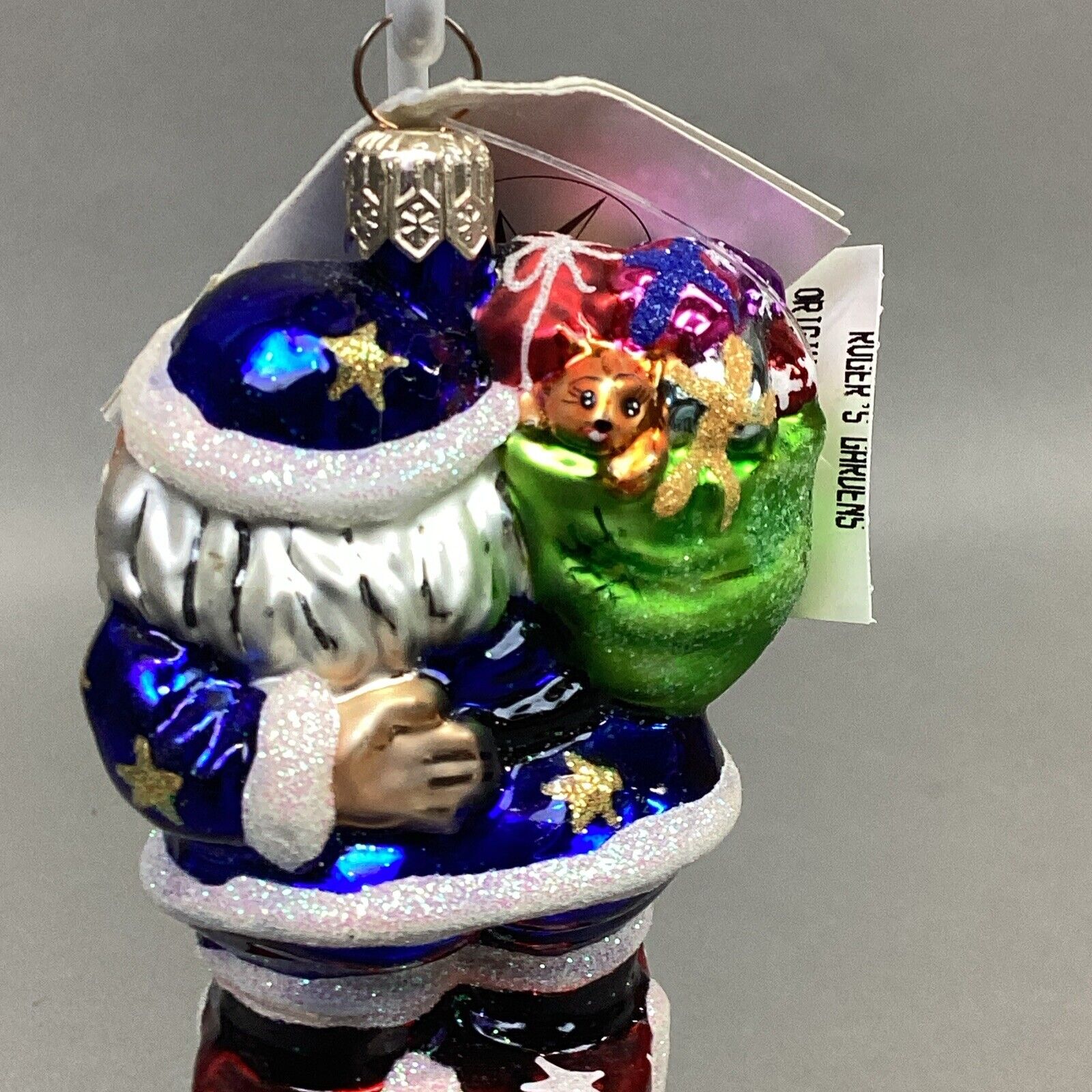 Christopher Radko 1999 Secret Santa Jr. Glitter Blue Santa W/ Tags - #999850