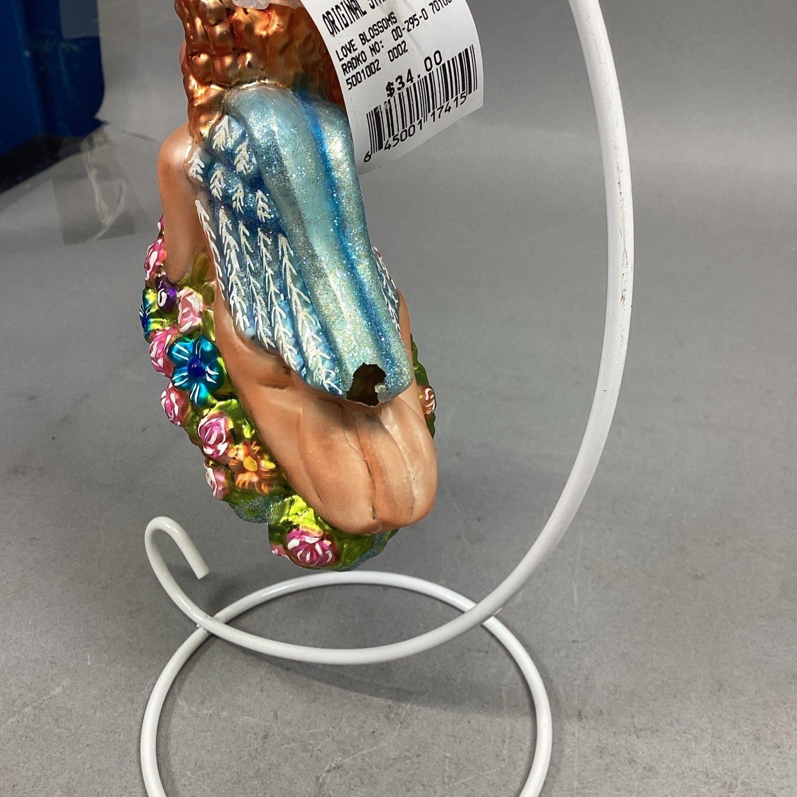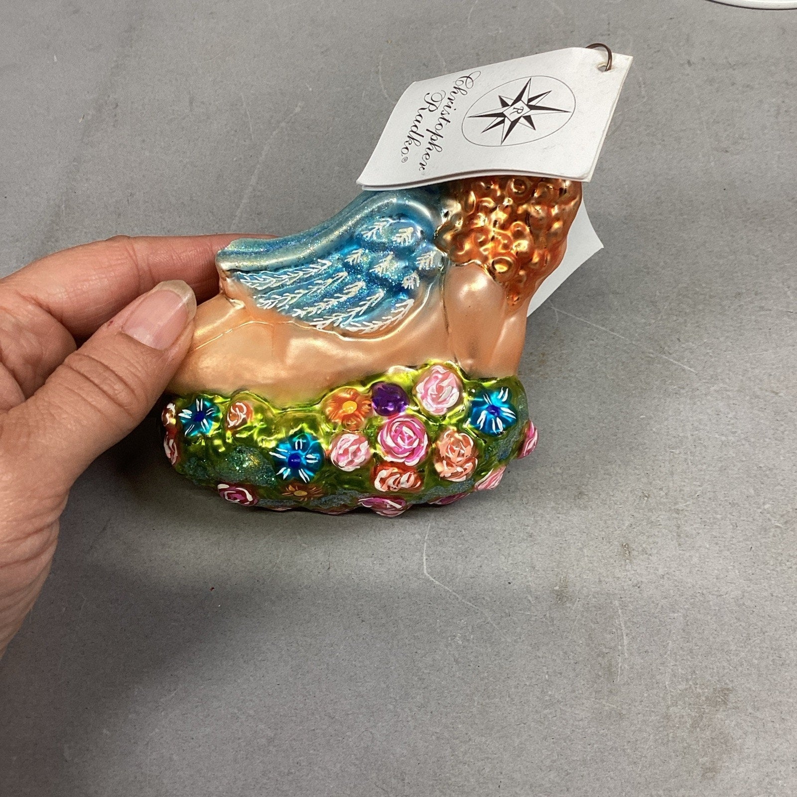 Christopher Radko Cherubic Angel Ornament Love Blossom - Damaged On Wing. Measures 4.25”Lx4.5”H