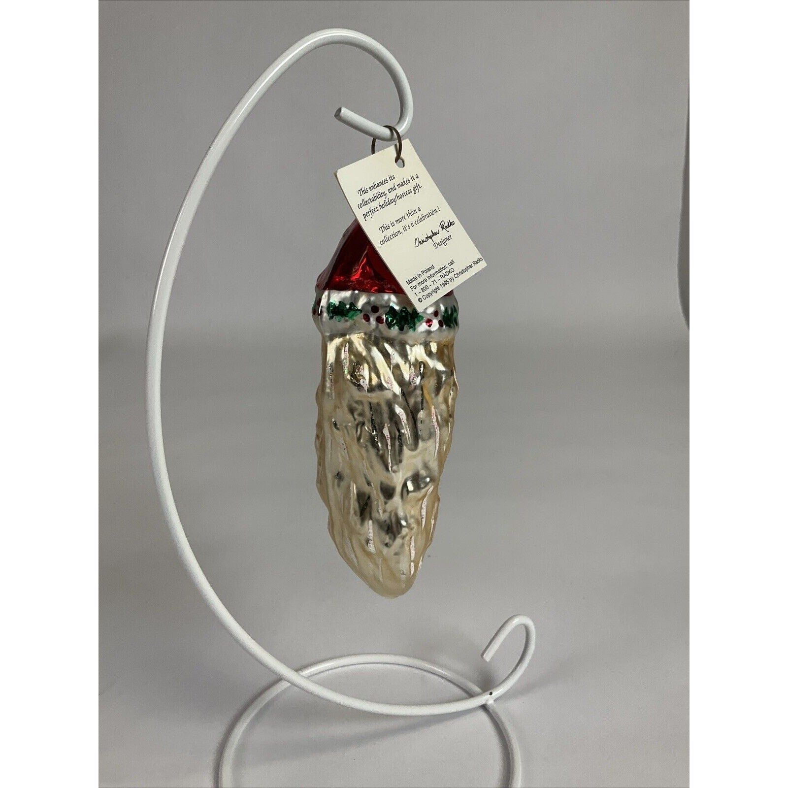 Christopher Radko Ho Ho Ho Santa Claus Head Glass Christmas Ornament 5”