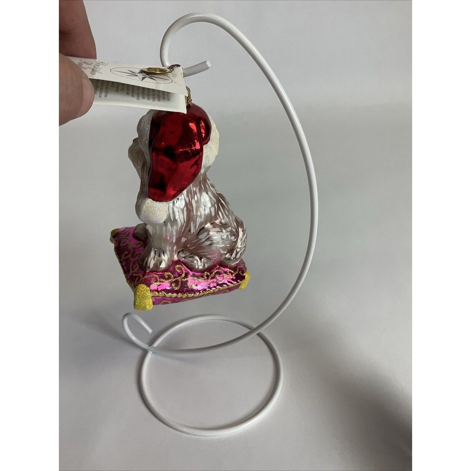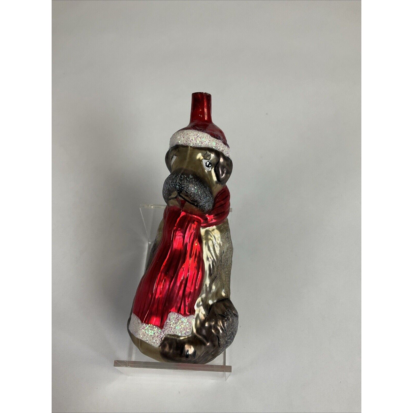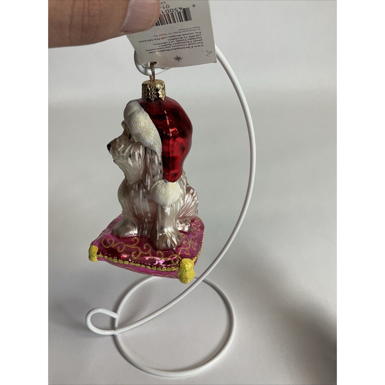 Christopher Radko Ornament Charlie White Dog + Scarf Santa Dog