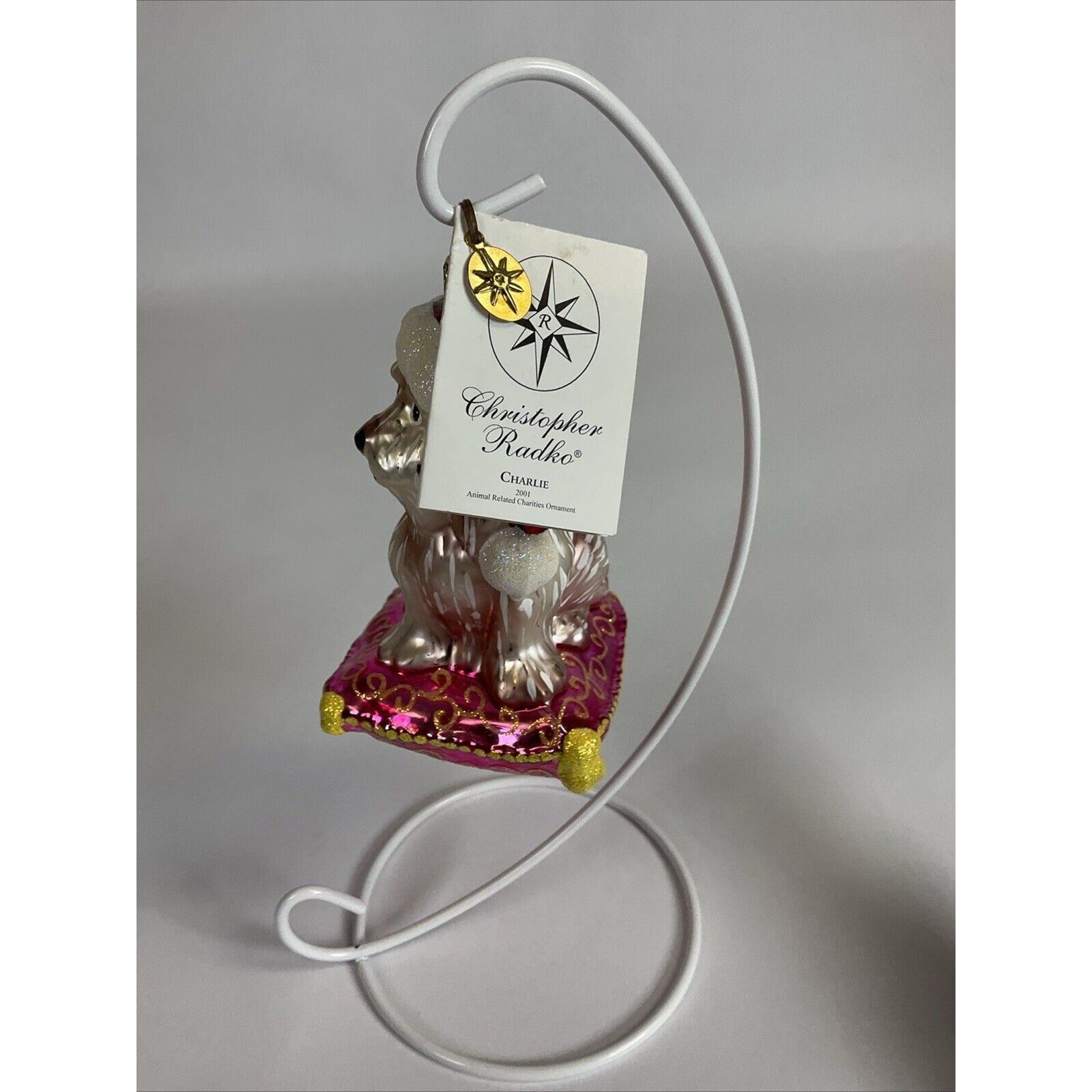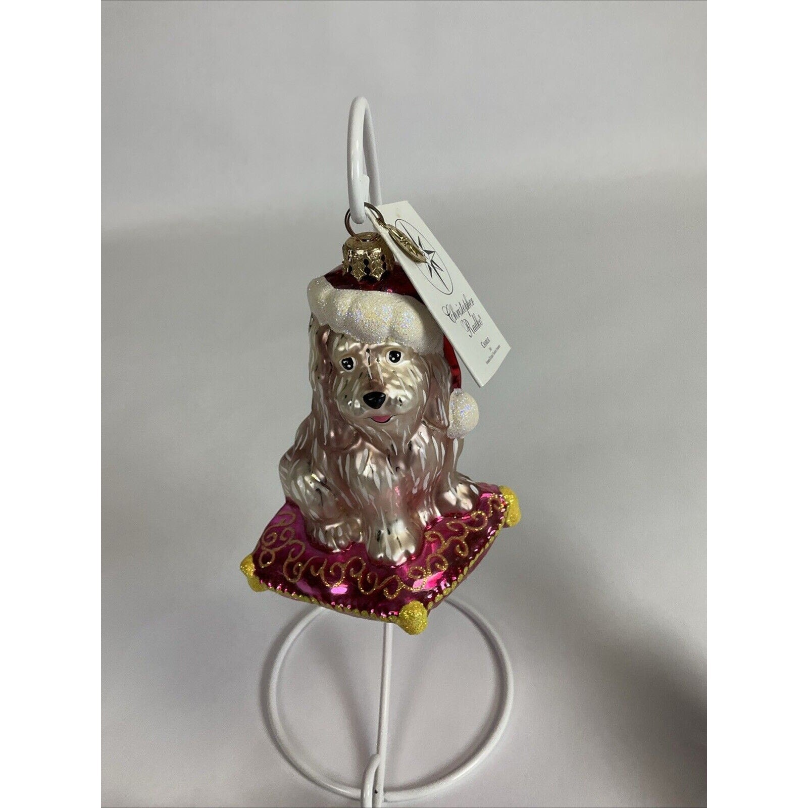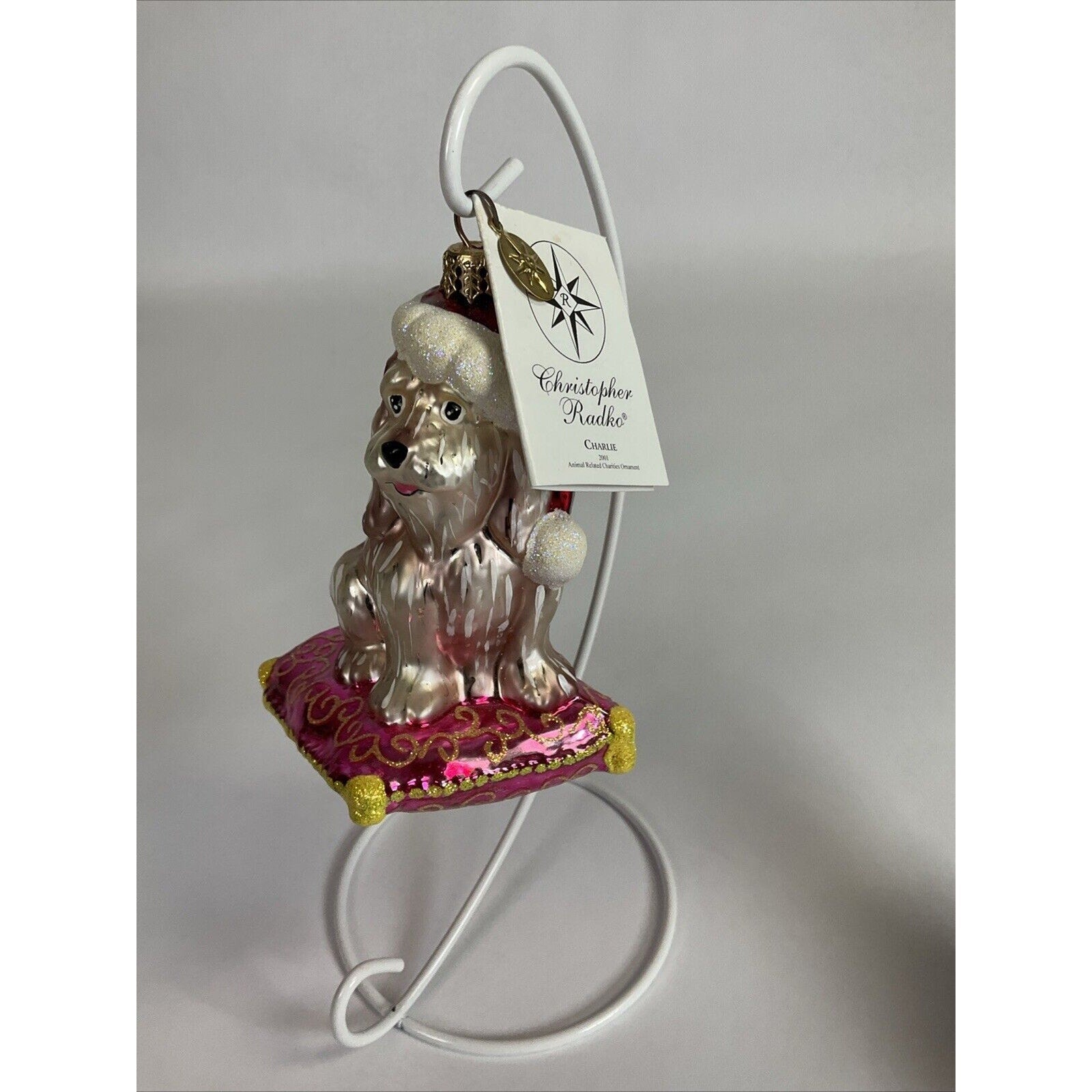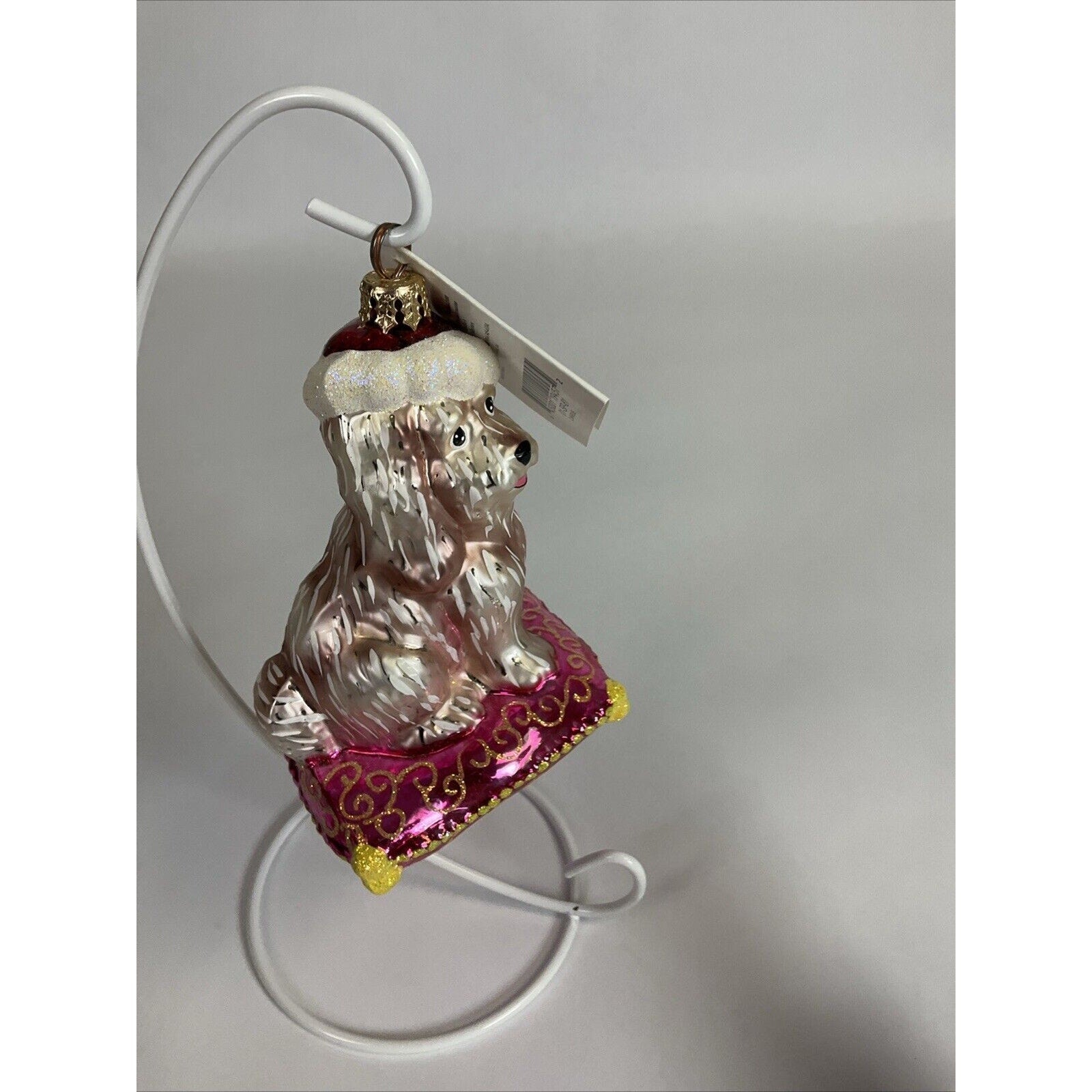 Christopher Radko Ornament Charlie White Dog + Scarf Santa Dog