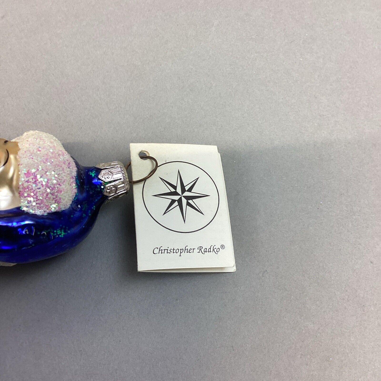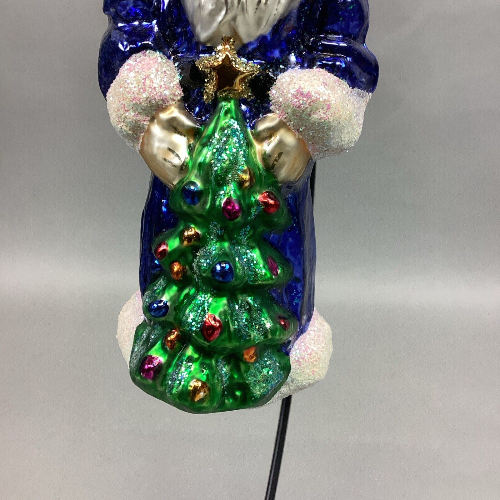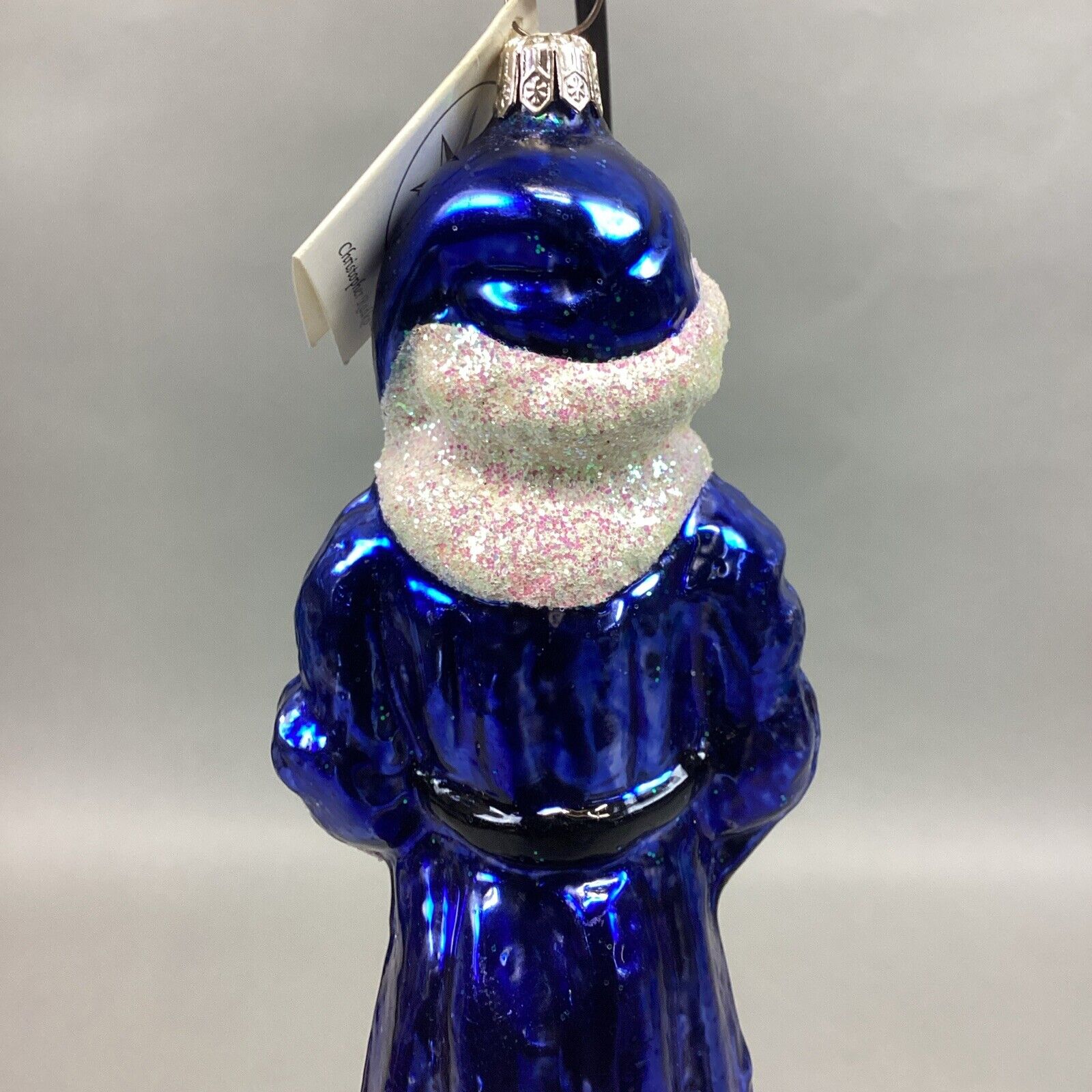 Christopher Radko Sapphire Santa Claus Glass Christmas Ornament With Tag - 7”