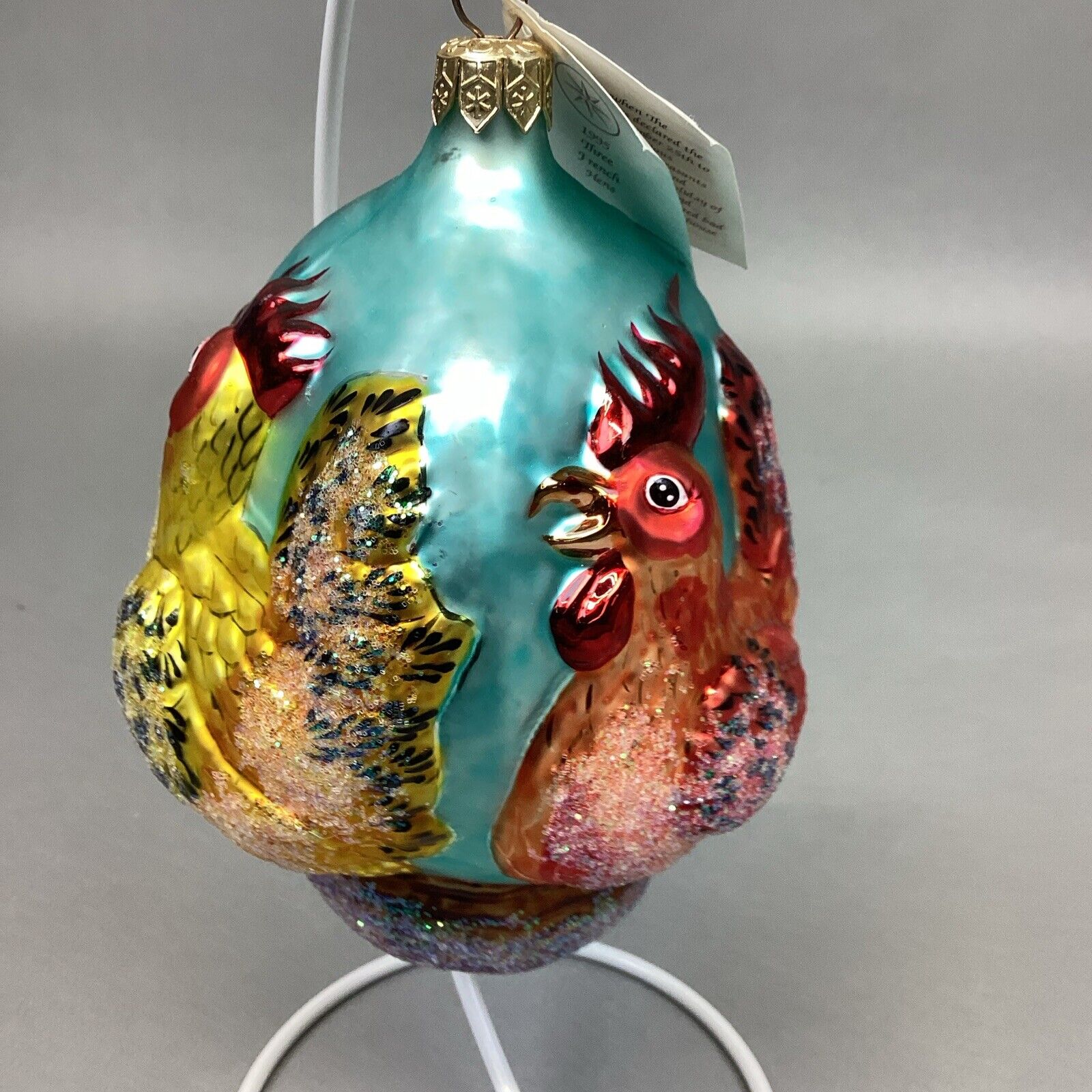 This is a Christopher Radko Three French Hens 12 Days Of Christmas Glass Ornament W/ Tag. In very good condition. No cracks or chips in the ornament. This measures 5.25”Hx3.5”D approximately.