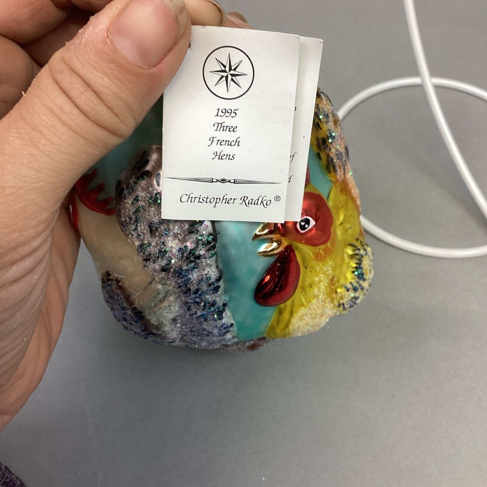 Christopher Radko Three French Hens 12 Days Of Christmas Glass Ornament W/ Tag