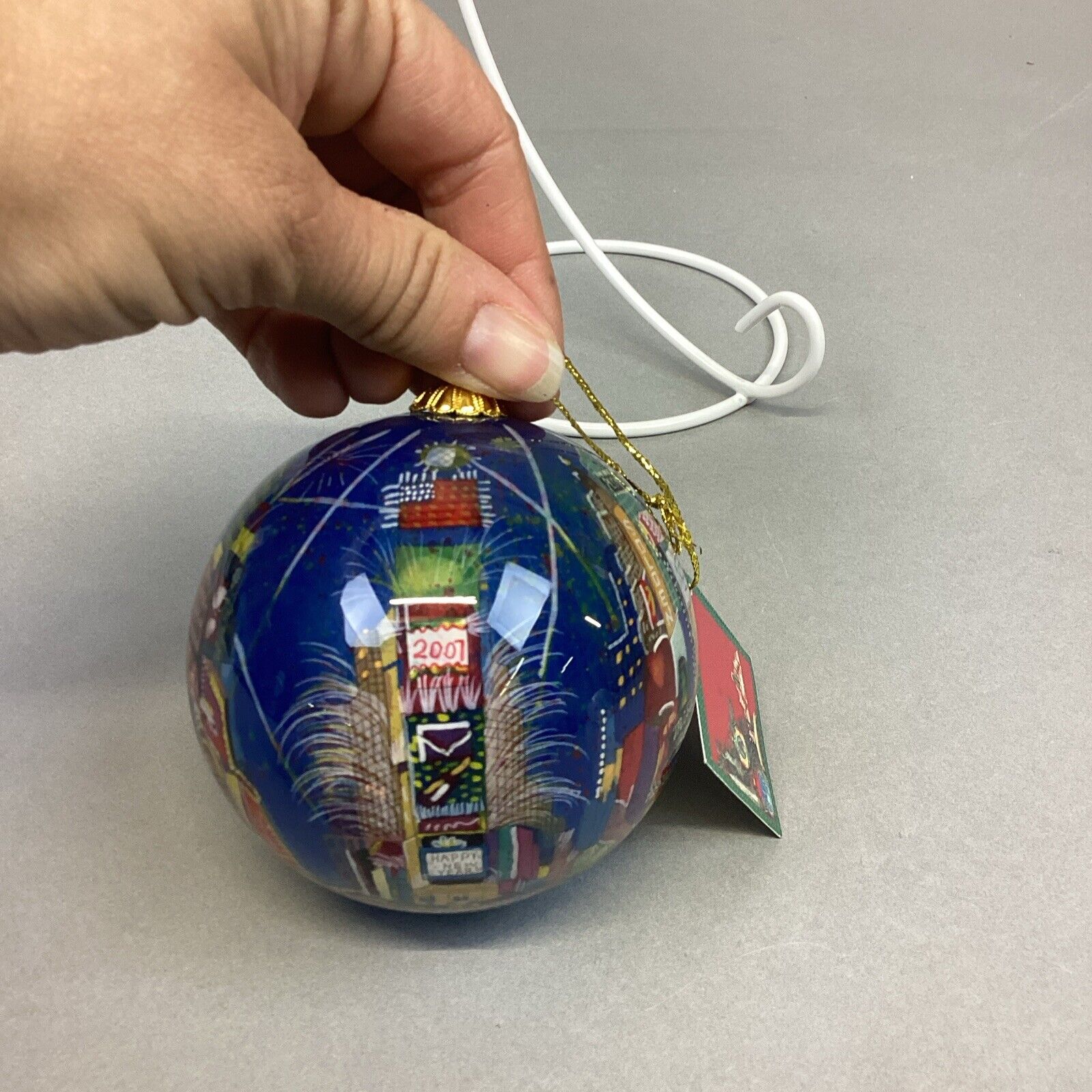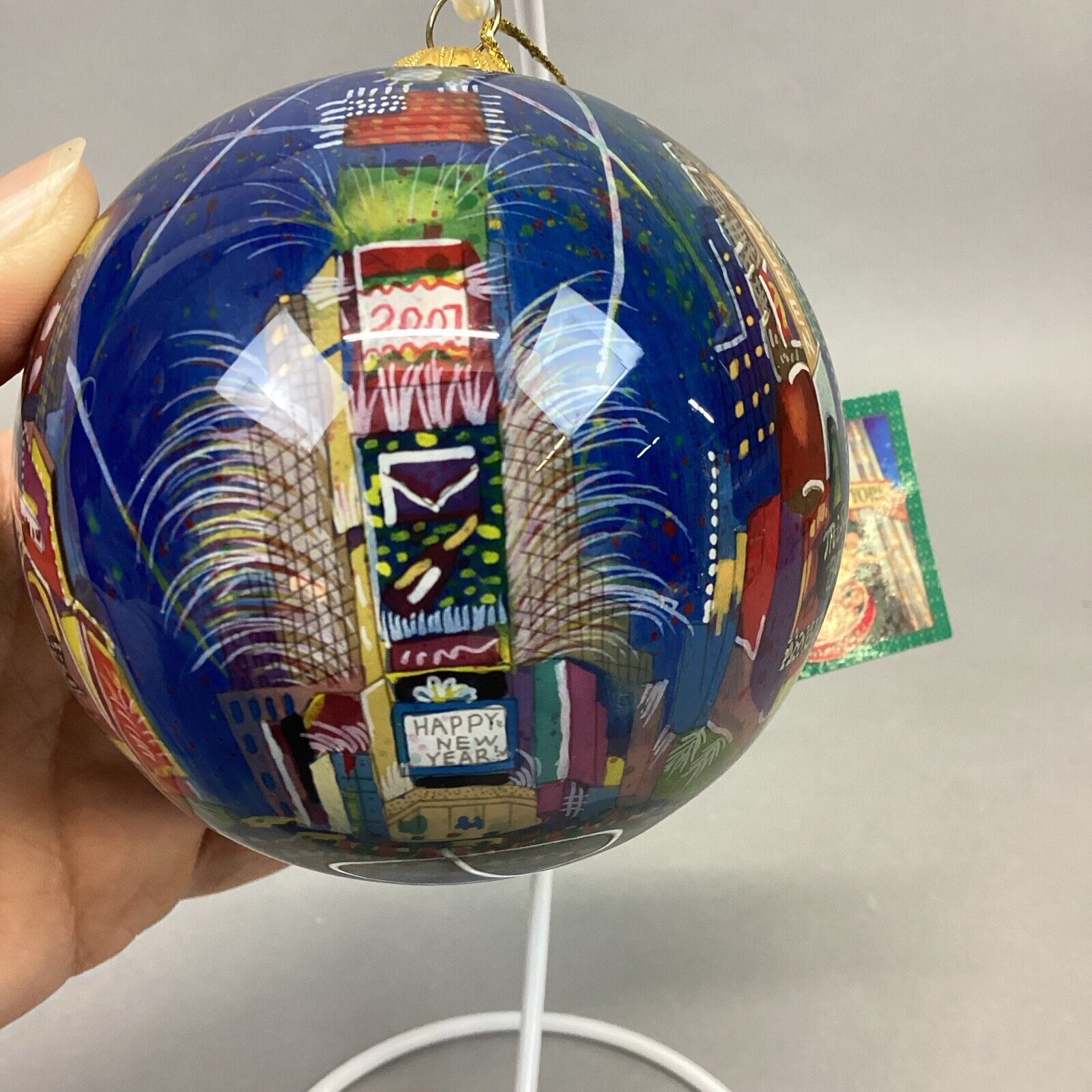This listing is for Chuck Fischer’s Christmas In The City - New York Times Square - Handpainted in China. Beautiful condition. No chips, cracks, holes or scratches. The 2 spots you see in each picture is the reflection of the lights we use to take pictures of items. This ornament measures 4” high by 2.75” diameter approximately. Comes with original tags.