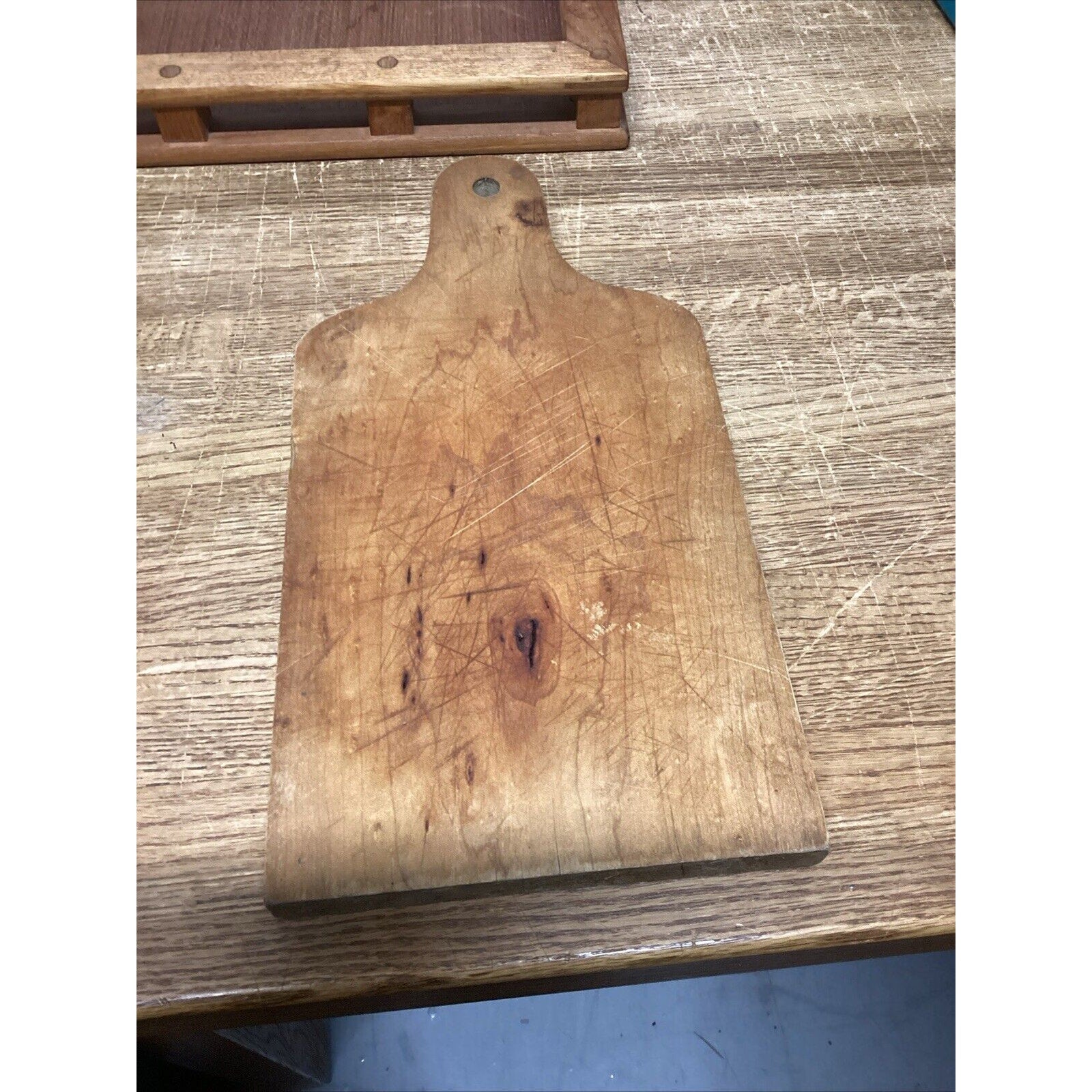 Last one is a regular cutting board. Wooden. Heavily used but very sturdy. This measures 3/4”Hx14.25”Lx7”W
