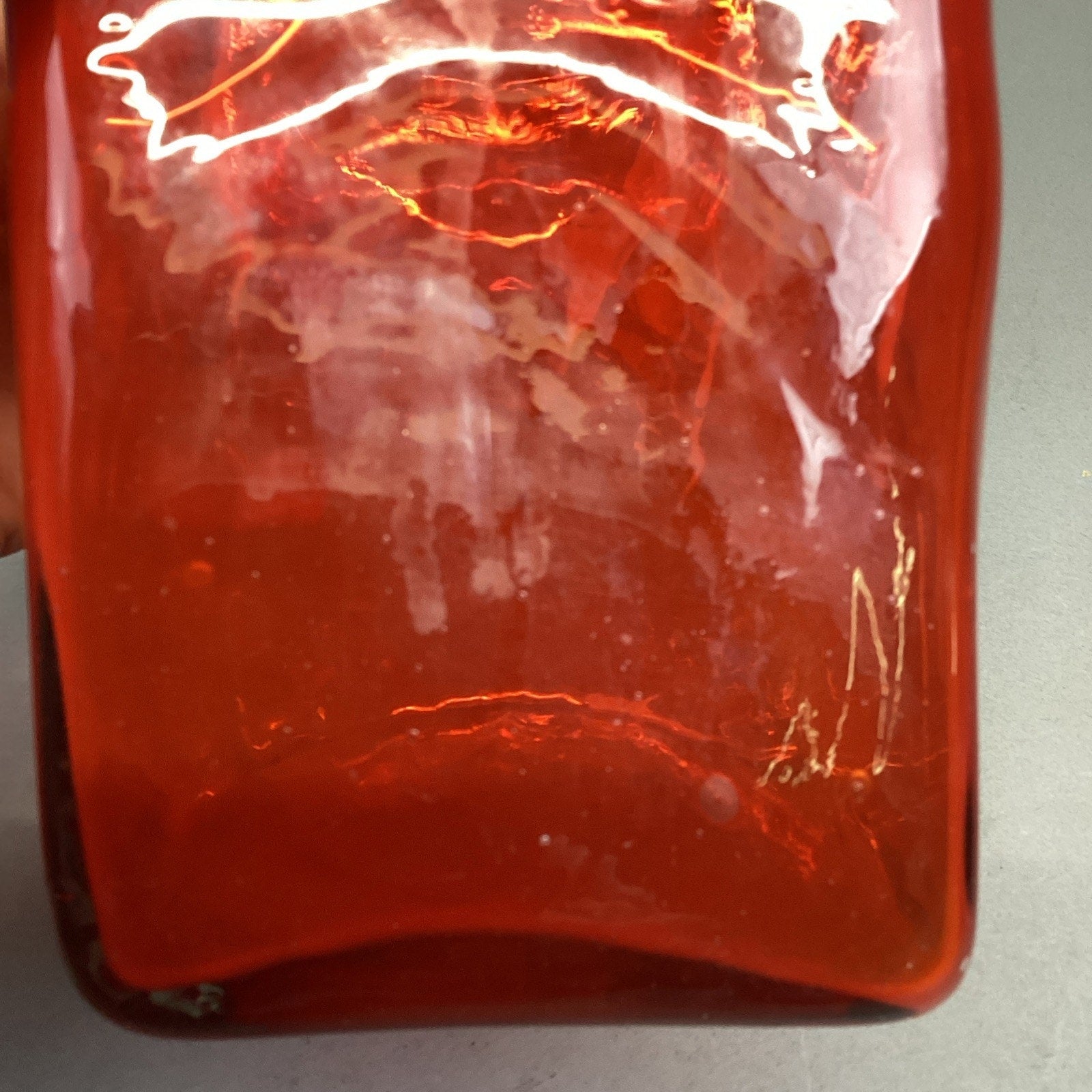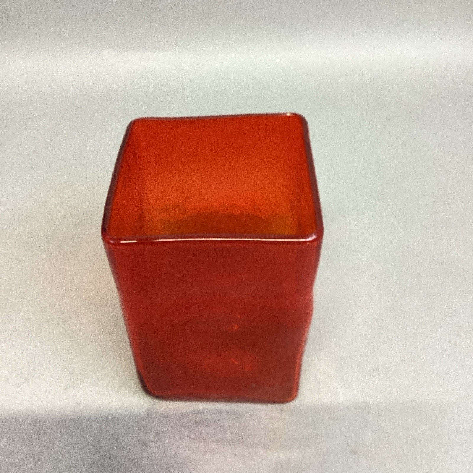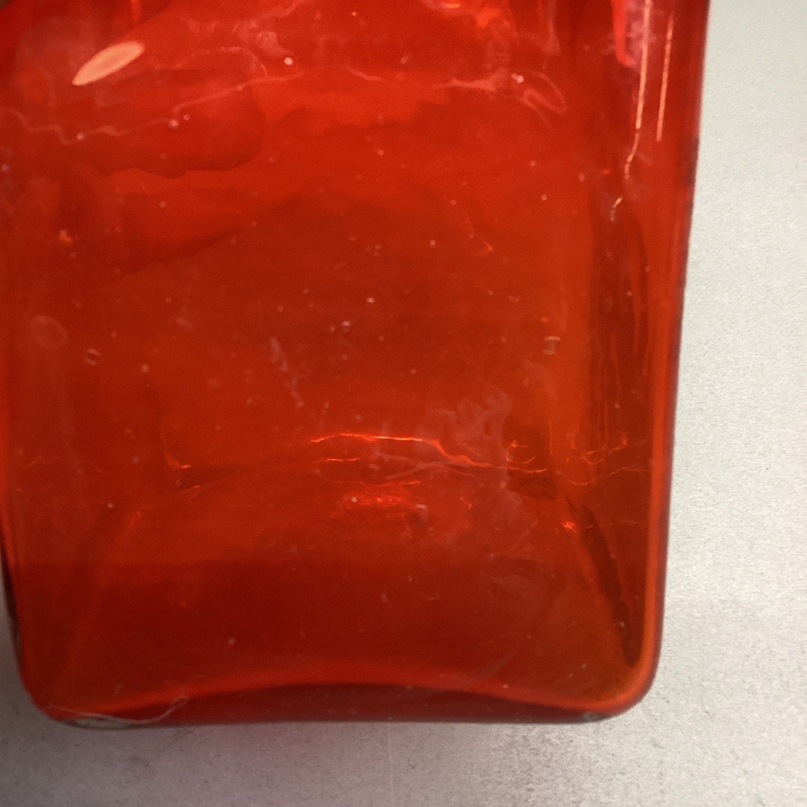 Decorative Orange Square Glass Cube Container Indoor Decor Candle Holder or vase. Measures 6”Hx4”D. There are several air bubbles in between the layers of glass.