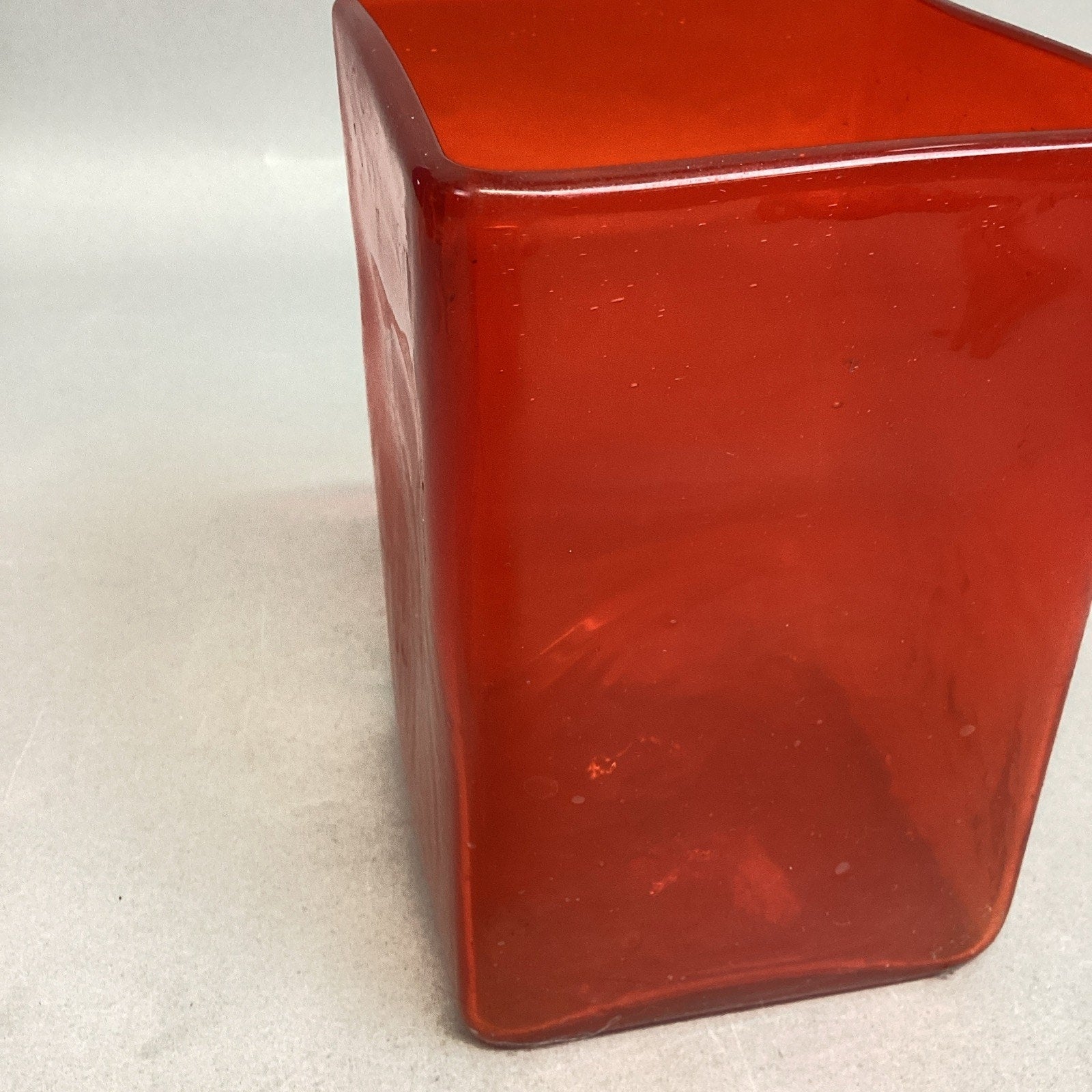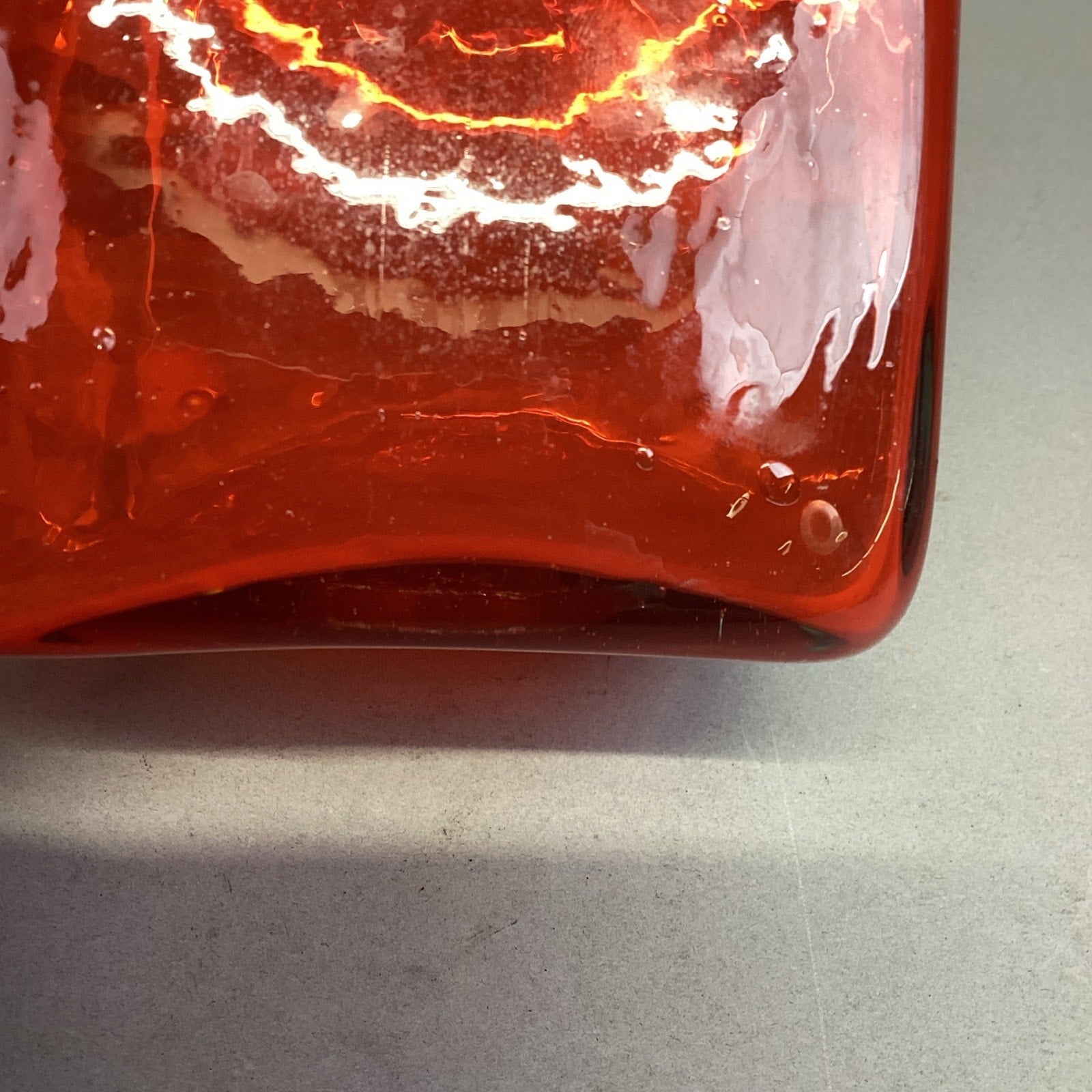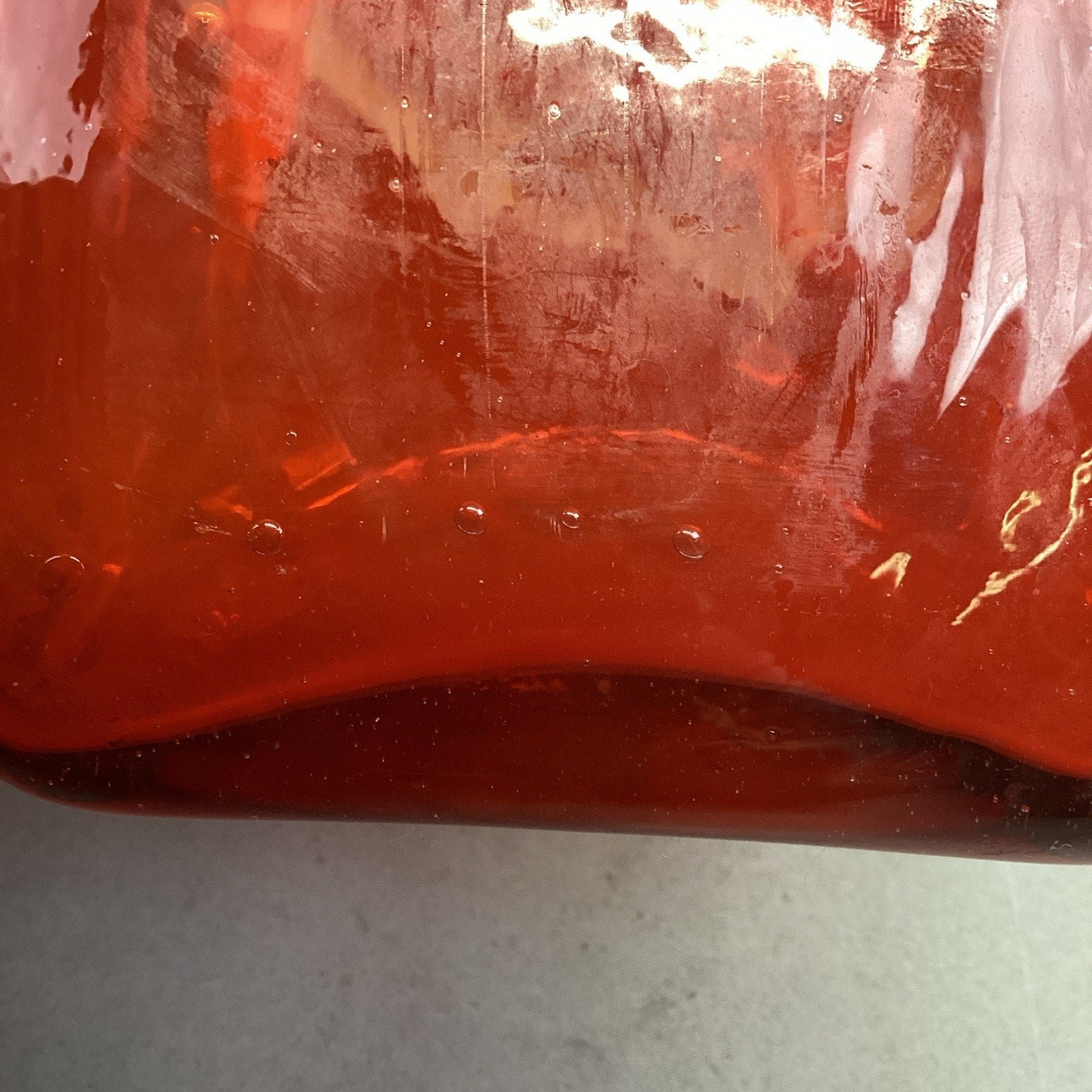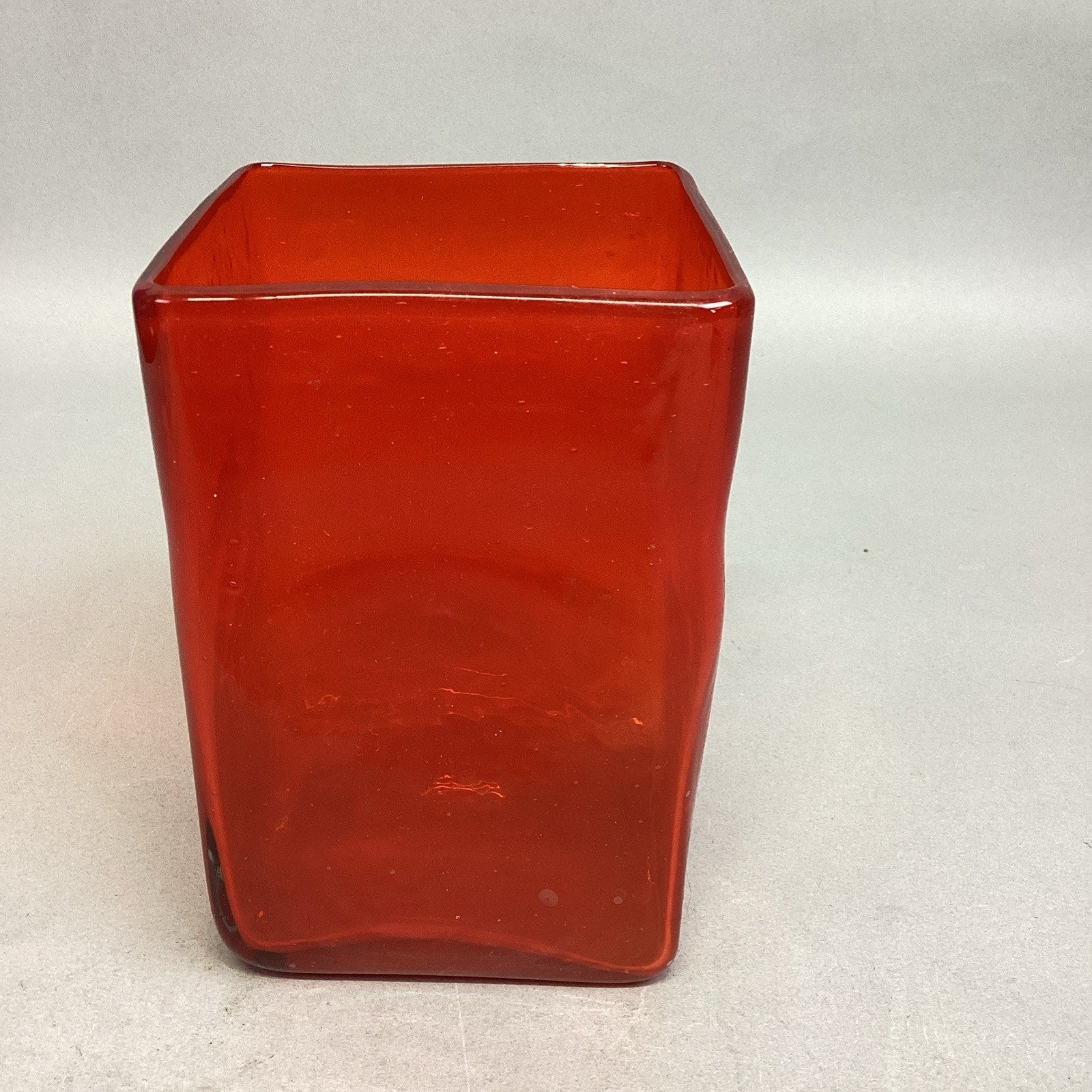 Decorative Orange Square Glass Cube Container Indoor Decor Candle Holder or vase. Measures 6”Hx4”D. There are several air bubbles in between the layers of glass.