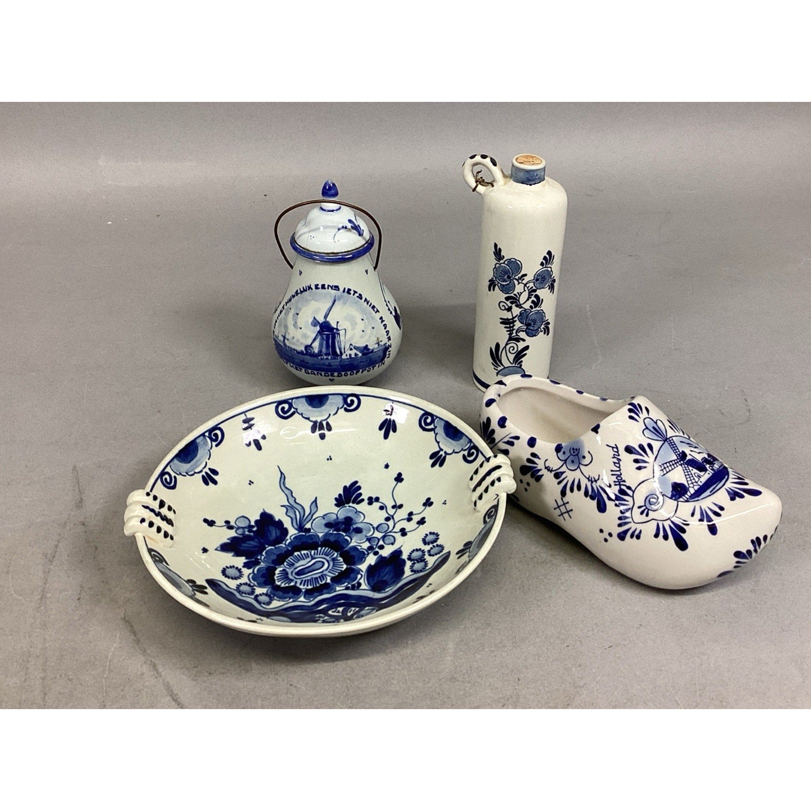 Delft Sugar Bowl, Jug, Bowl And Shoe Figurines - Made In Holland