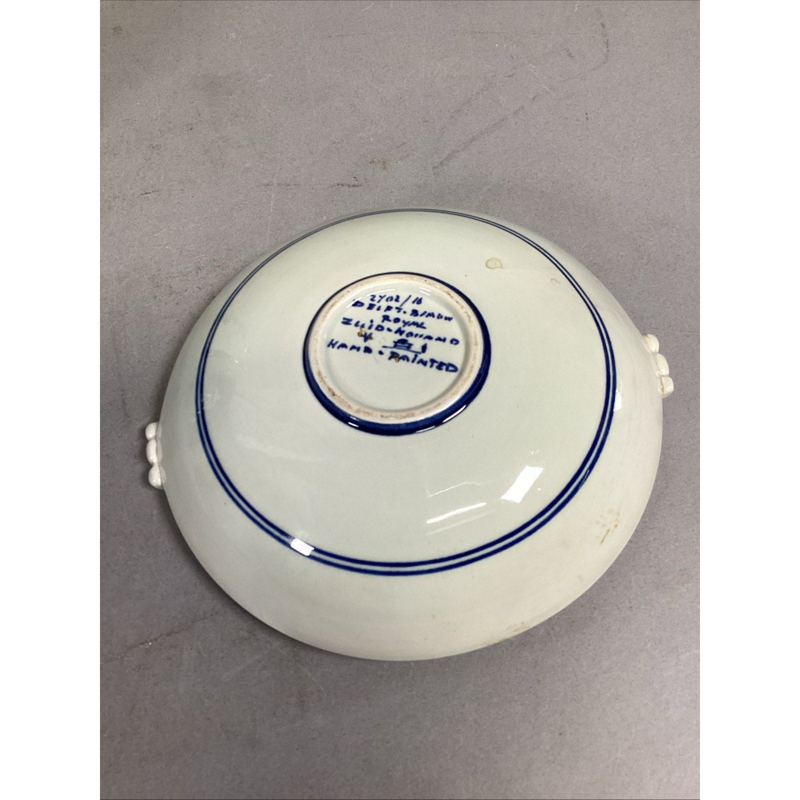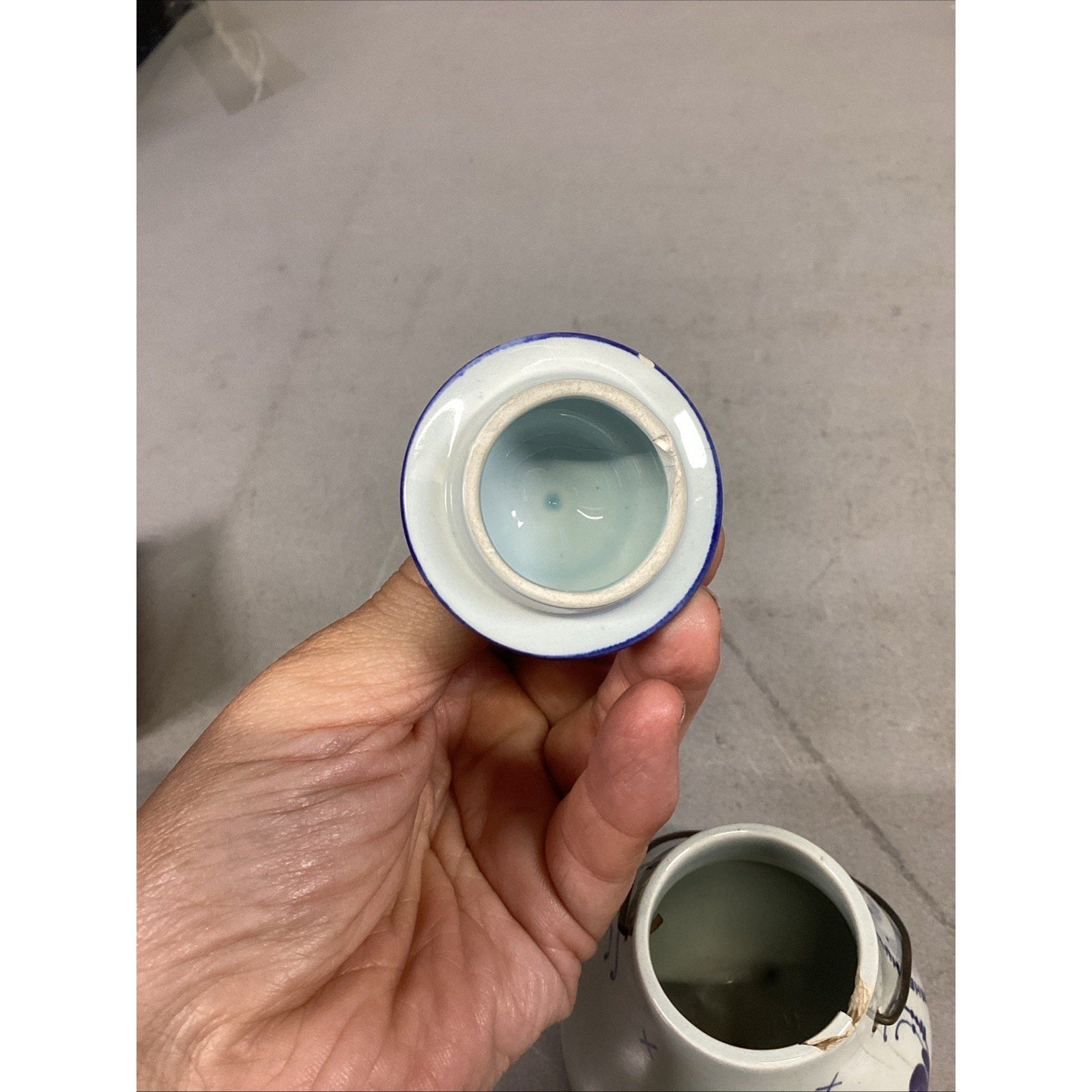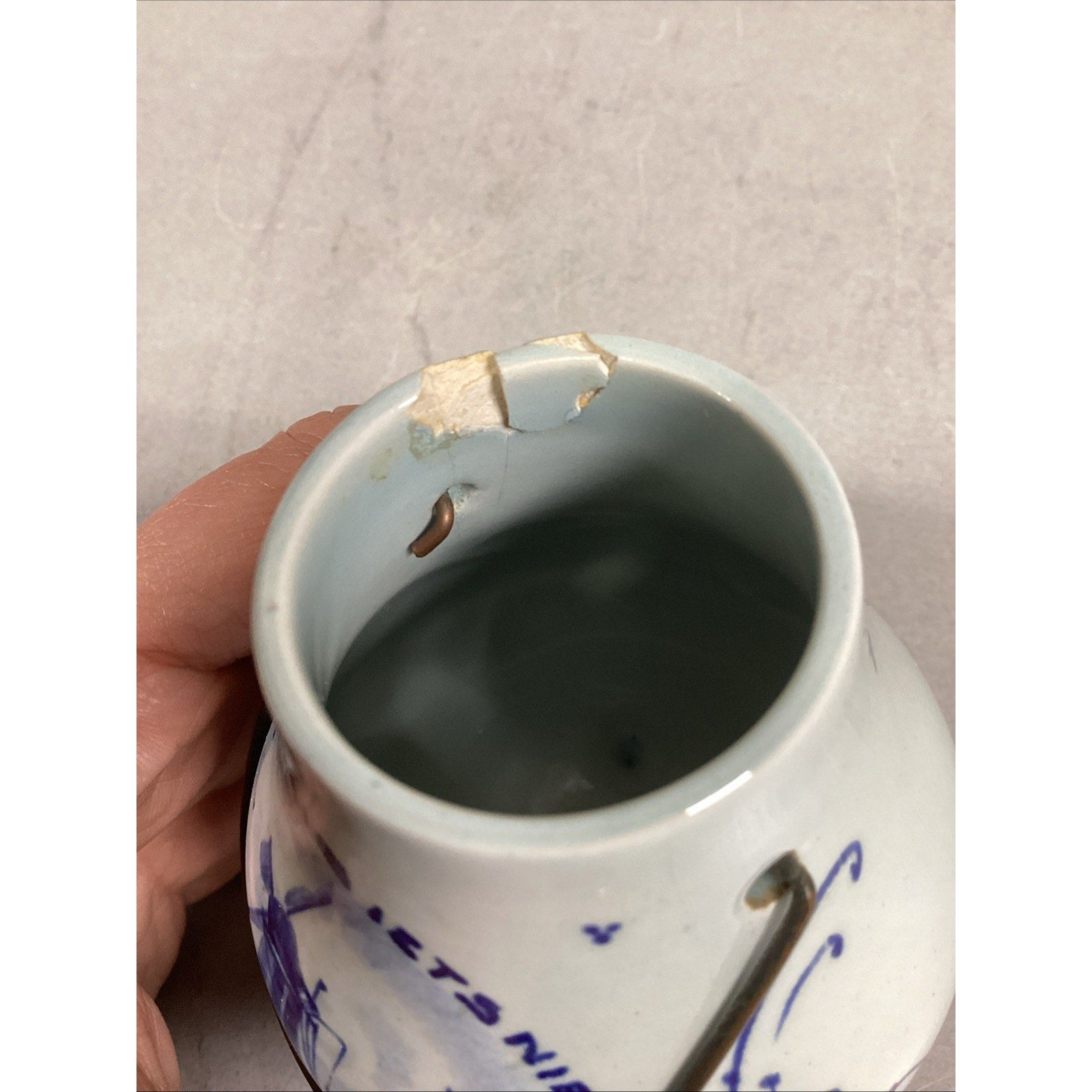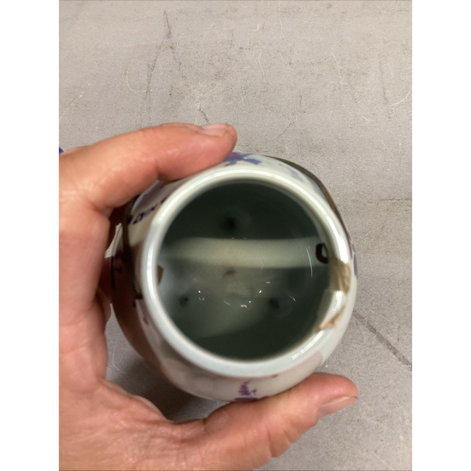 1. Sugar bowl with lid and handle. It’s chipped and cracked on the top interior edge. Measures 5”H