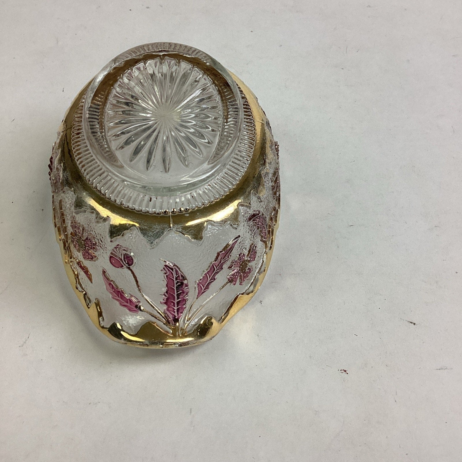 Antique EAPG US Glass Co Rose Stain Delaware Pattern Master Berry Oval Fruit Bowl 5 5/8”x3.5x1 5/8”. In good condition overall. No chips or cracks. Some marks and stains and some color loss due to age and use.