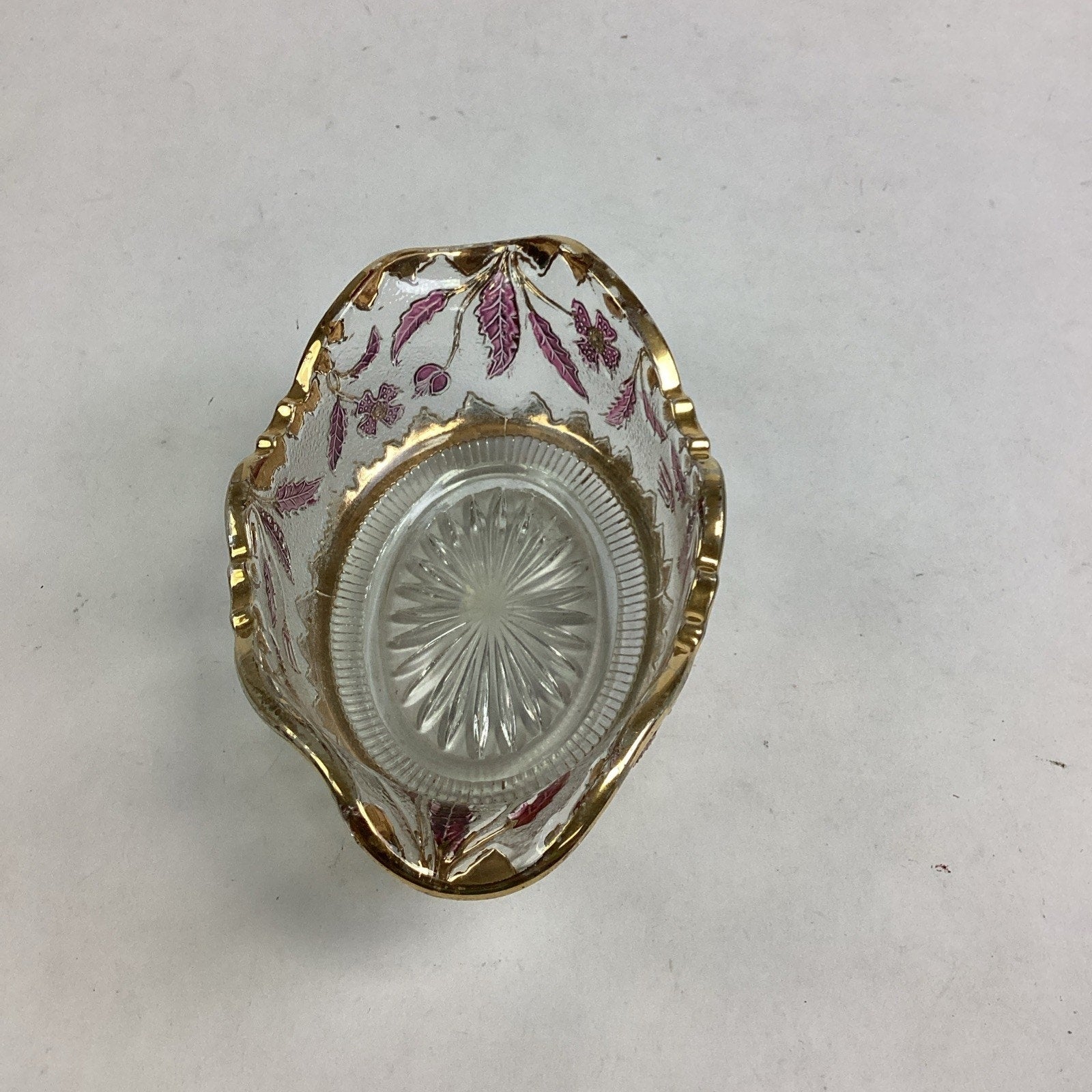 EAPG US Glass Co Rose Stain Delaware Pattern Master Berry Oval Bowl 5 5/8”