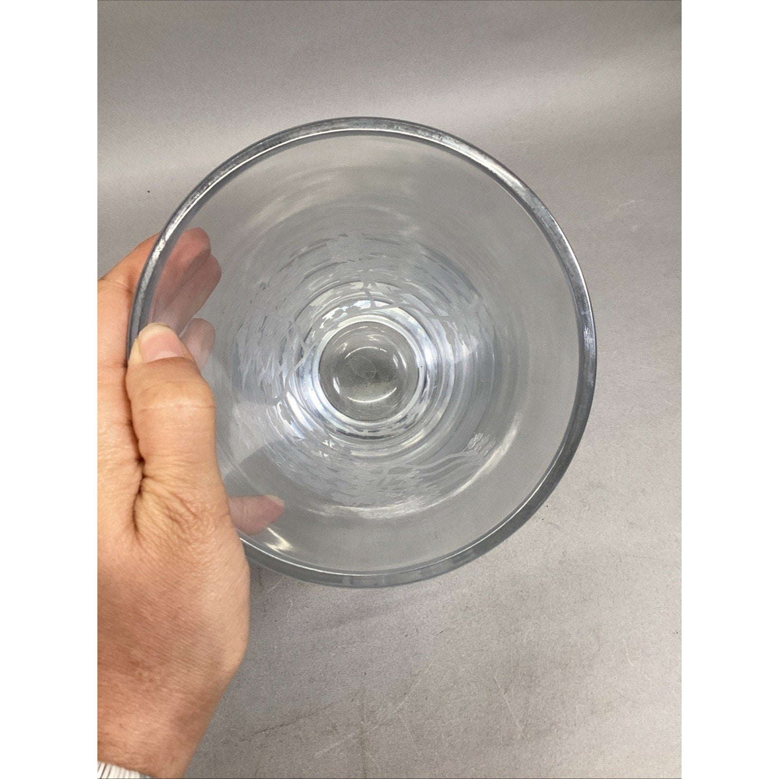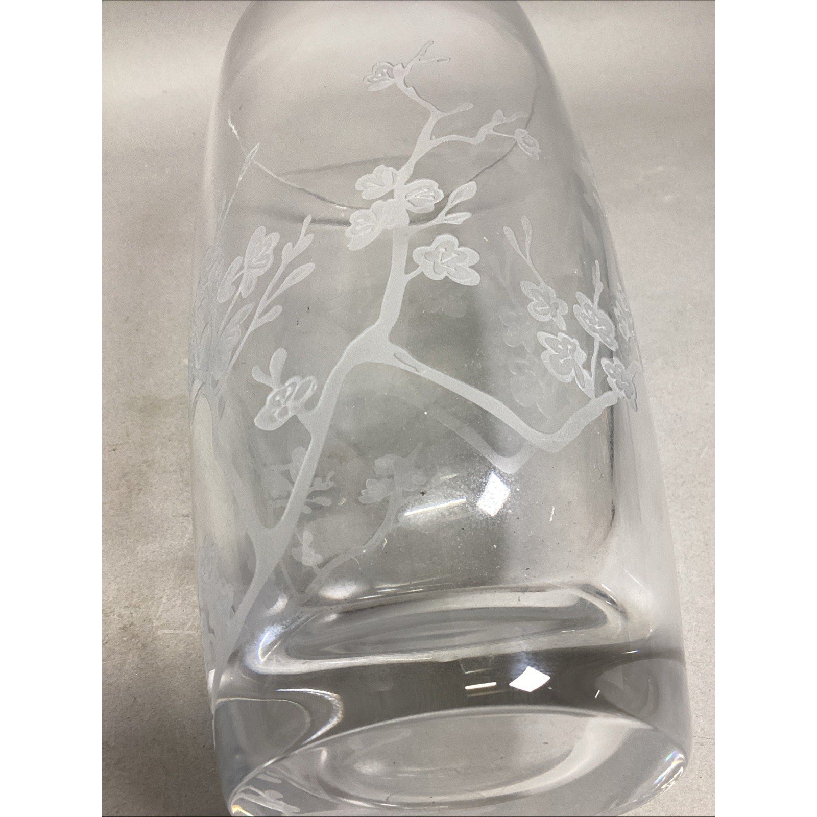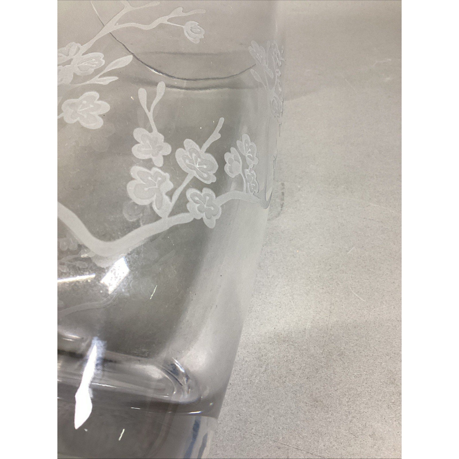 Floral Etched Glass Flower Vase - 10x5”. In used but good condition. There are no cracks or chips in the glass.