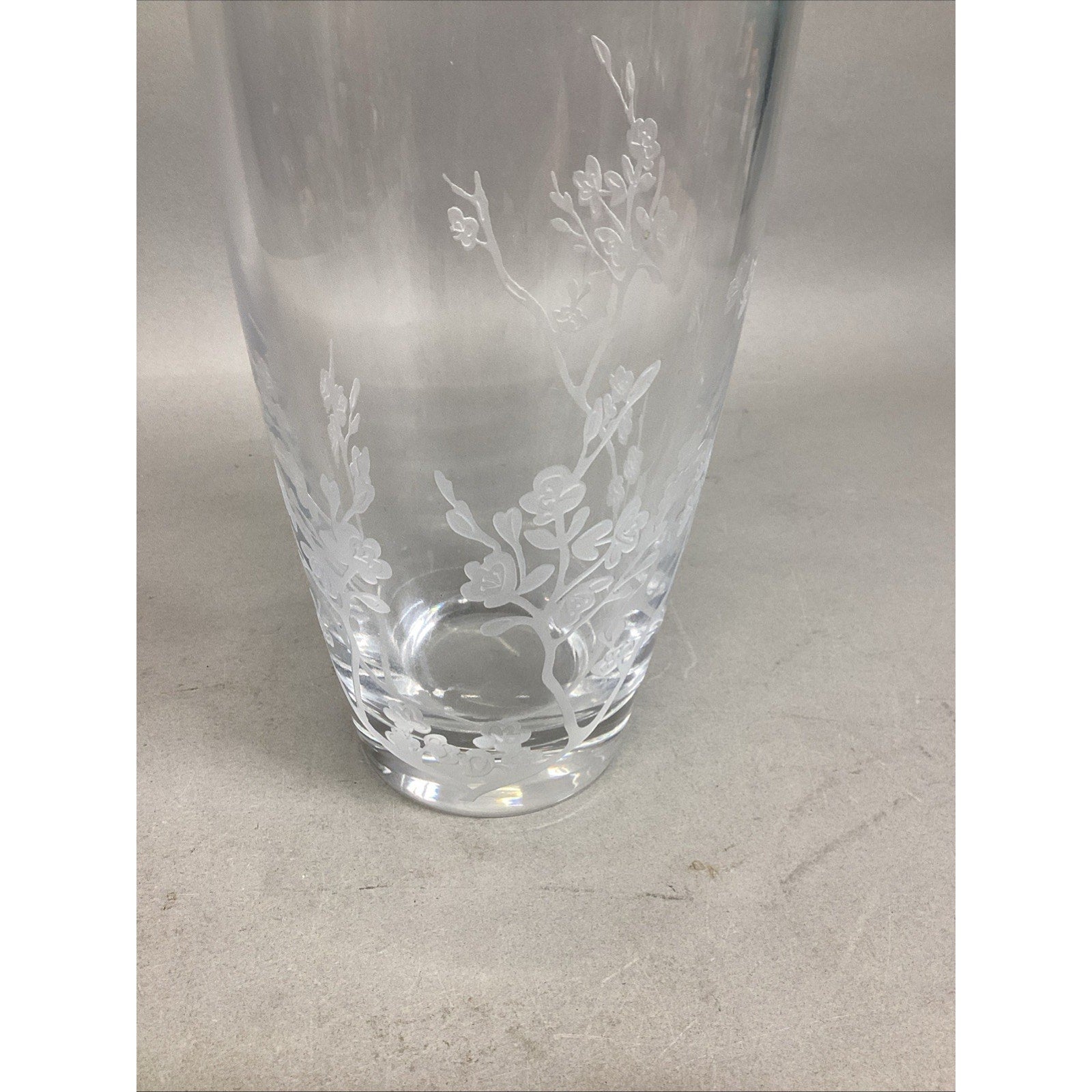Floral Etched Glass Flower Vase - 10”Hx5”D