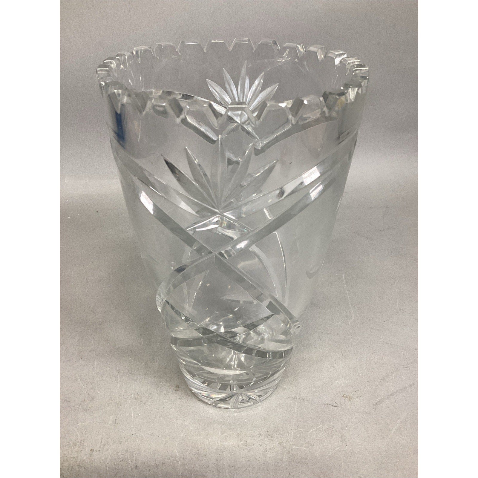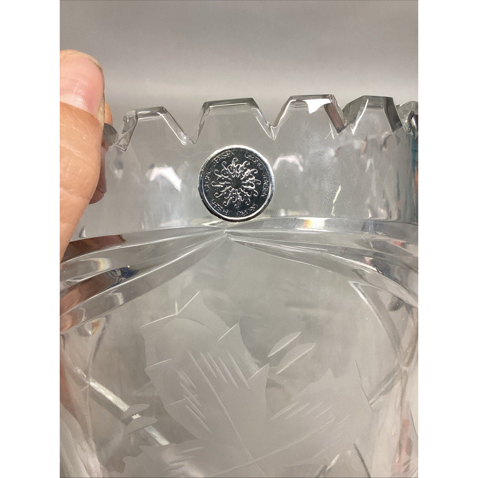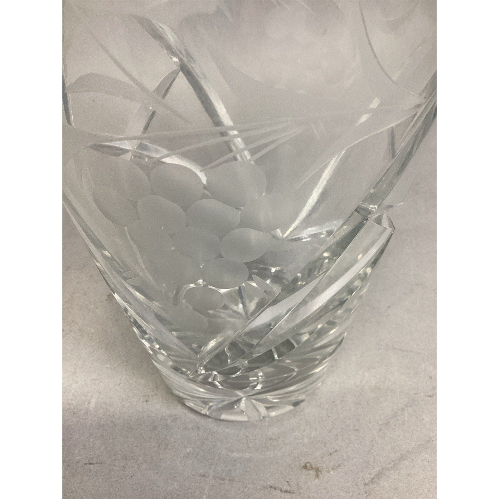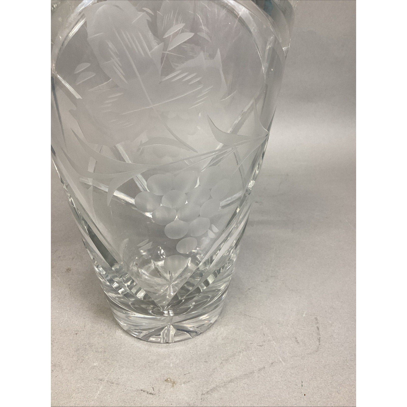 George Jensen Etched Glass Flower Vase - 10”Hx5.5”D. In used condition. There is 2 marks on the one side. They are textured but don’t appear to be chips.