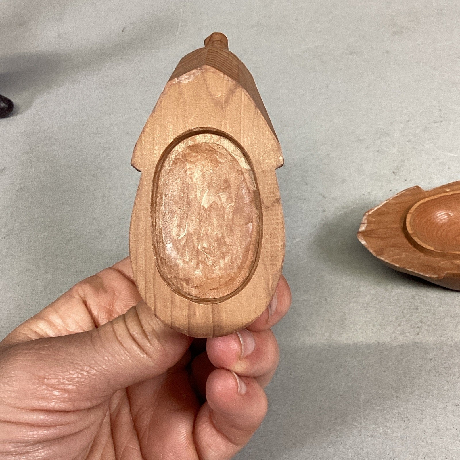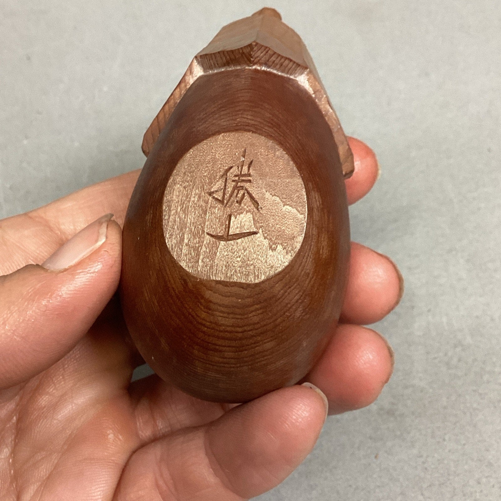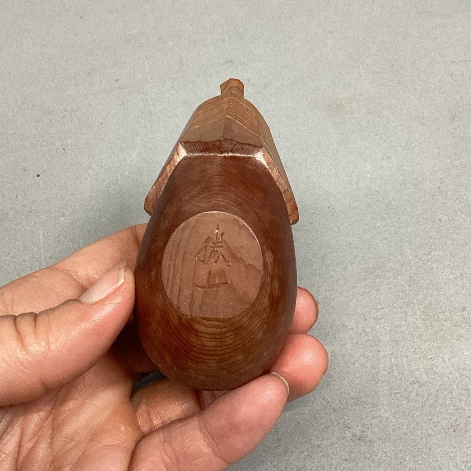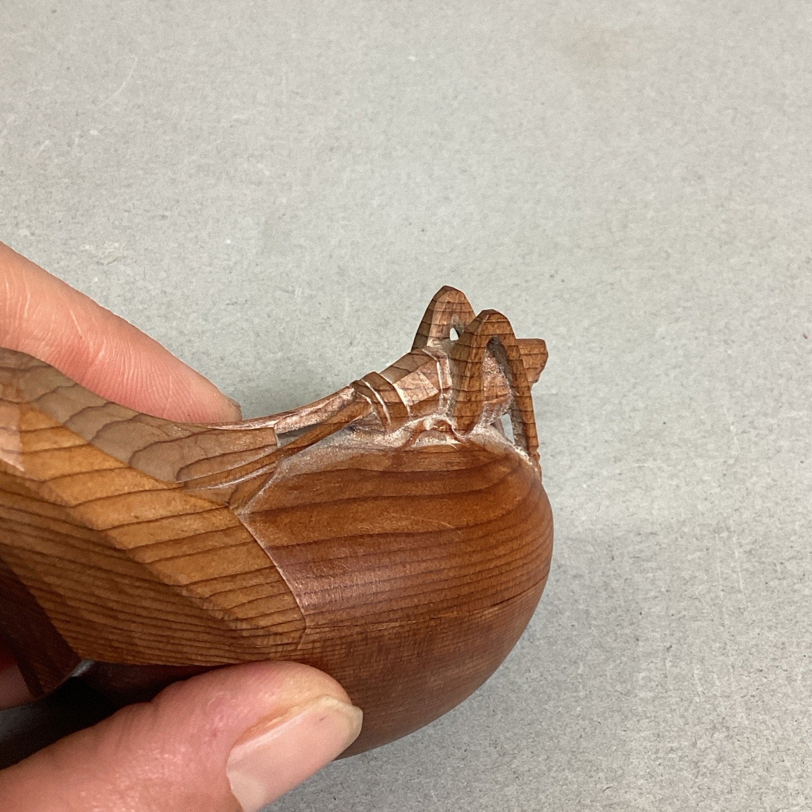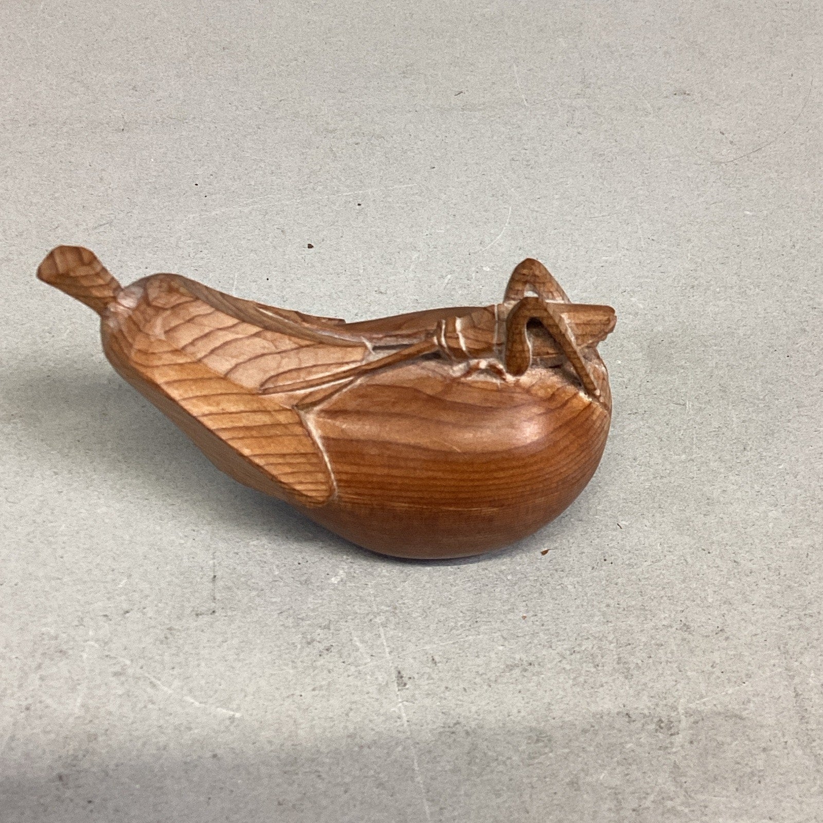 Hand Carved Wooden Grasshopper On Pear Miniature Trinket Box Figurine. In good condition. This measures 2”Hx3.25”Lx1.5”W. The interior storage area is very small. It measures .25”Hx1.5”Lx .75”W