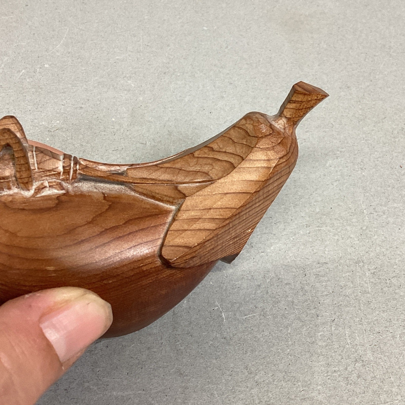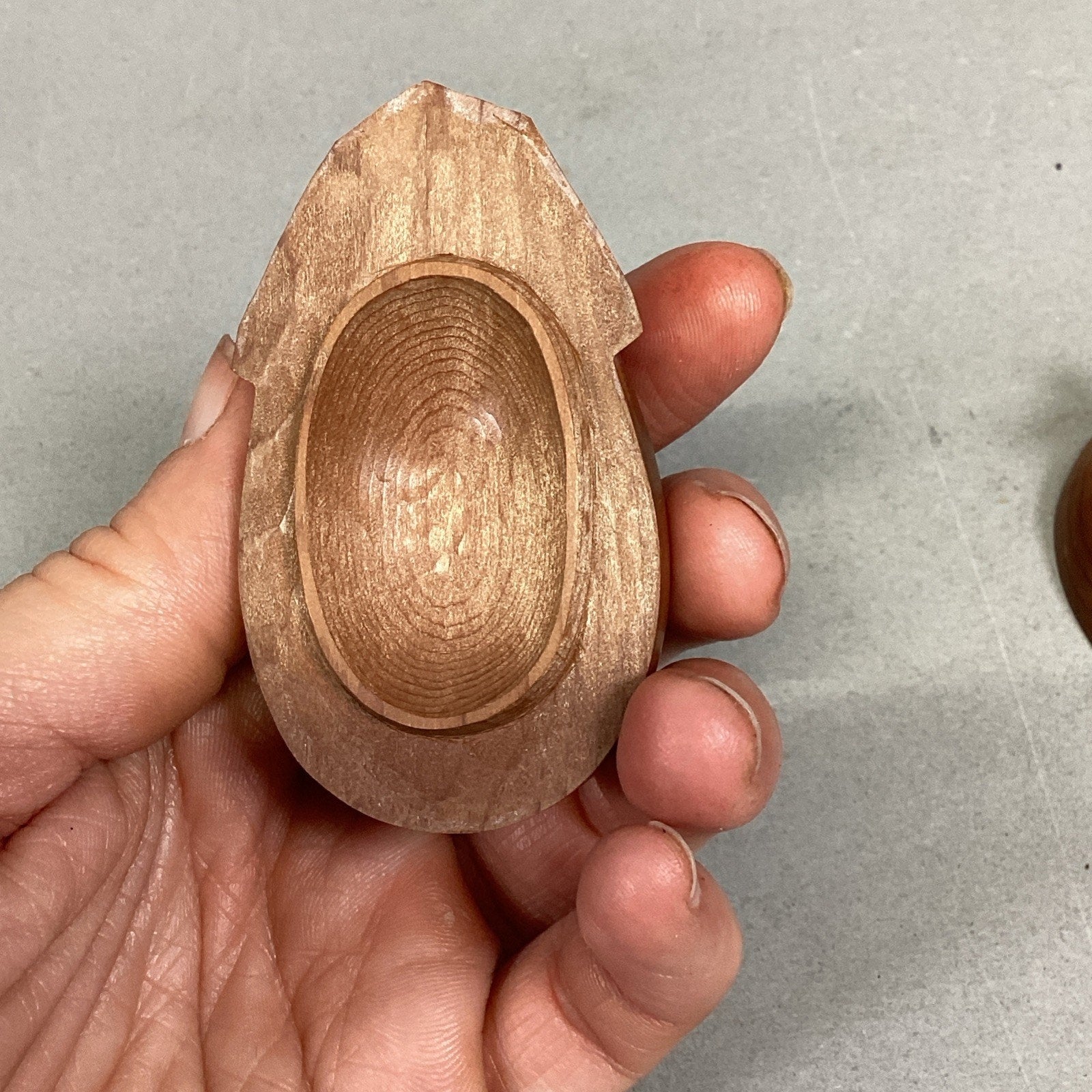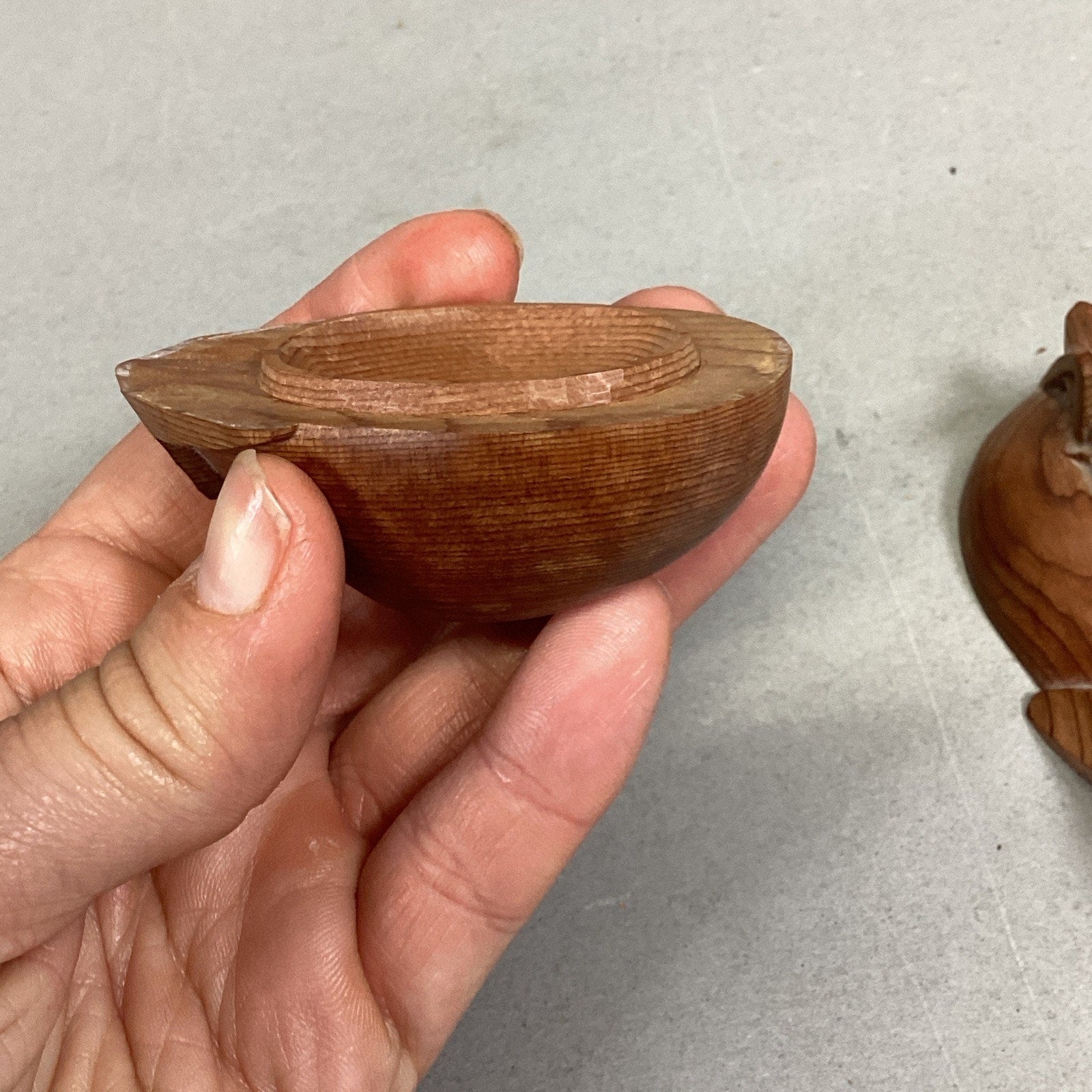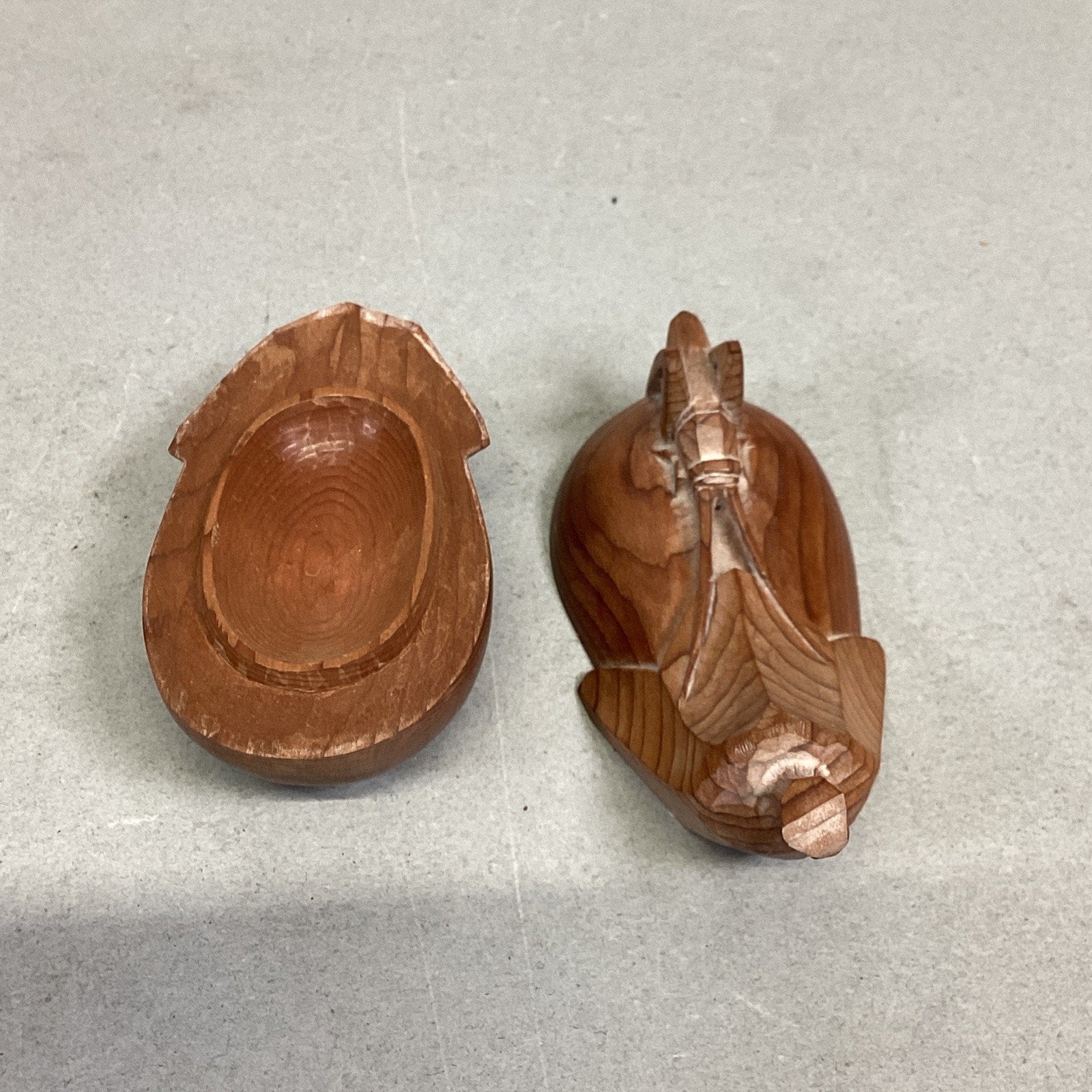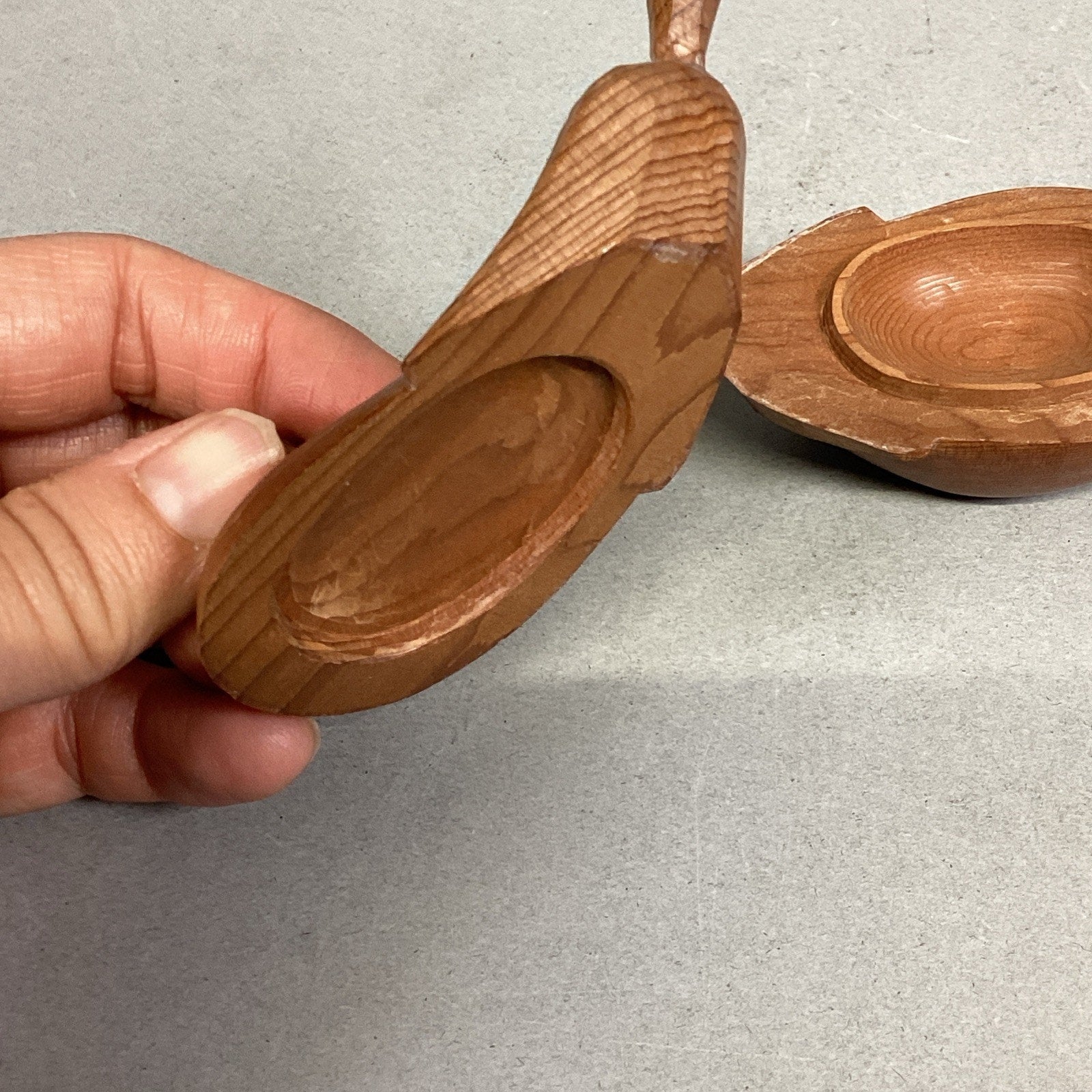 Hand Carved Wooden Grasshopper On Pear Miniature Trinket Box Figurine. In good condition. This measures 2”Hx3.25”Lx1.5”W. The interior storage area is very small. It measures .25”Hx1.5”Lx .75”W