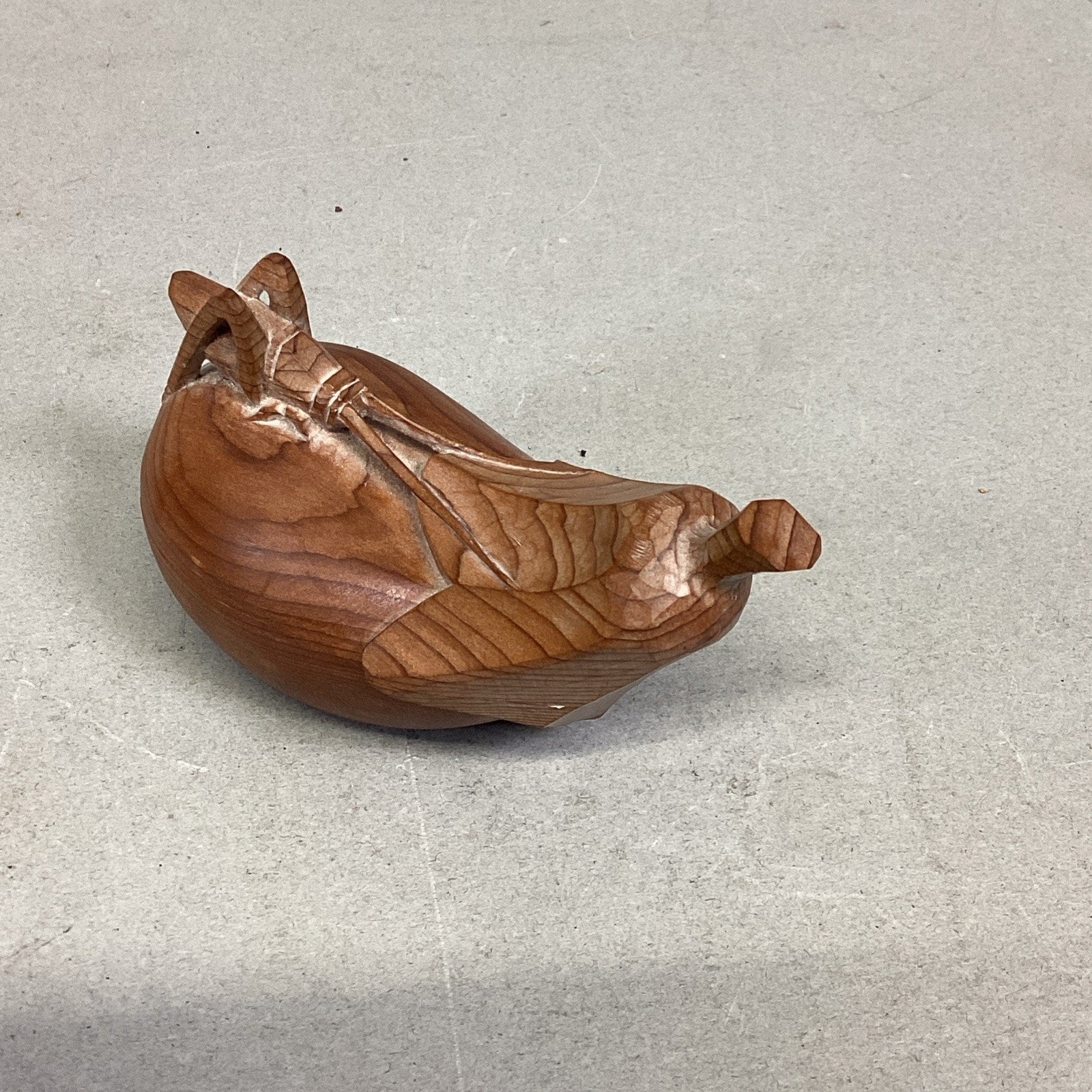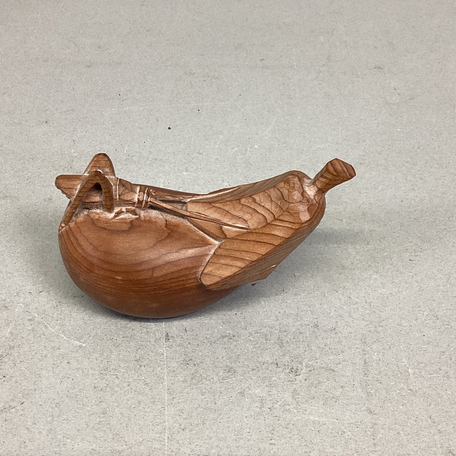 Hand Carved Wooden Grasshopper Cricket On Pear Miniature Trinket Box Figurine