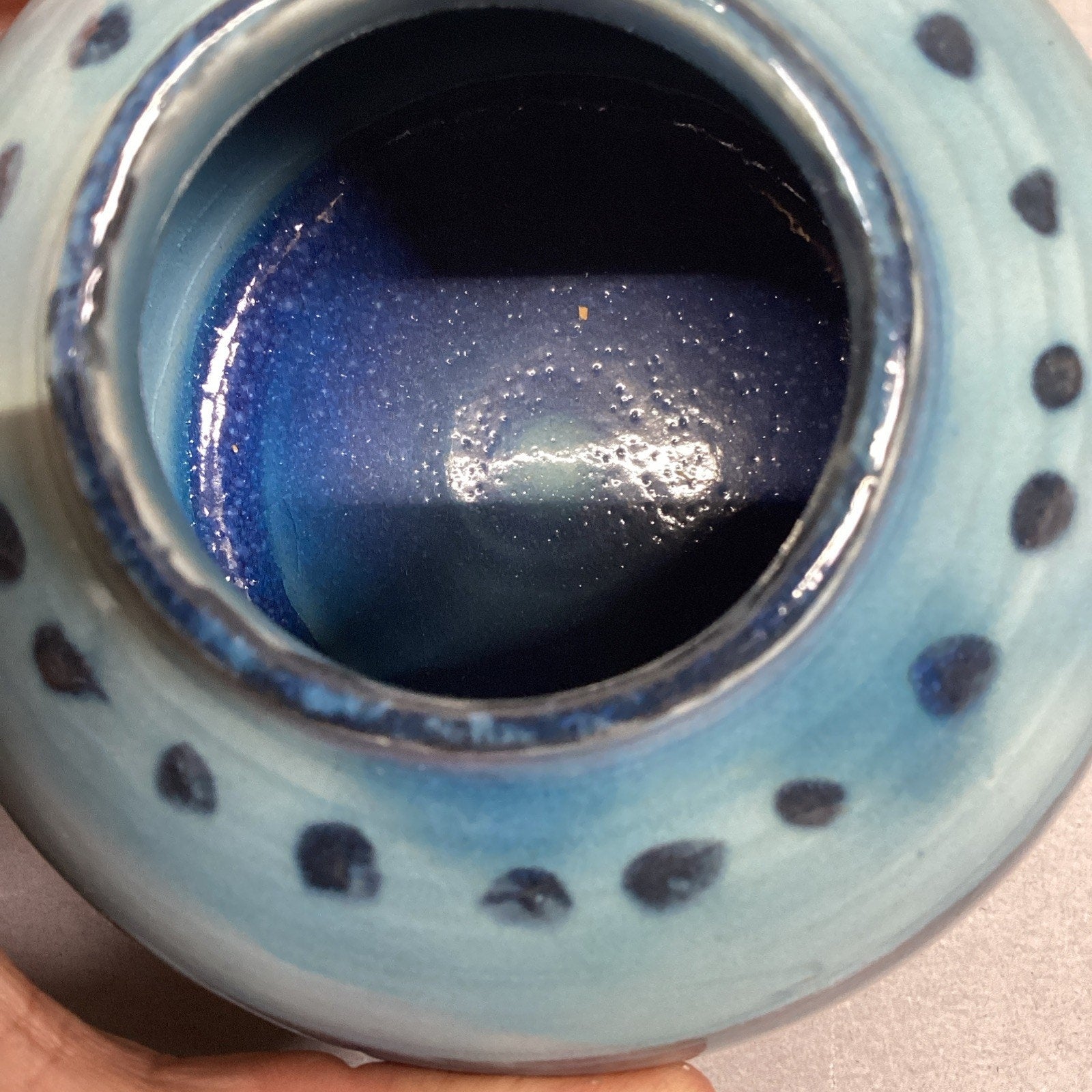 Handmade Pottery Clay Blue Stripe Vase - 3.25”Hx3.5”D