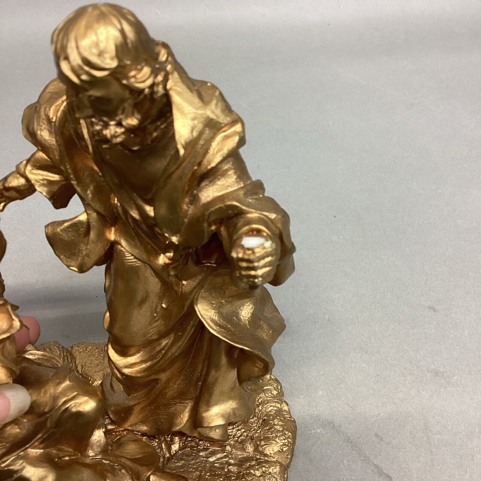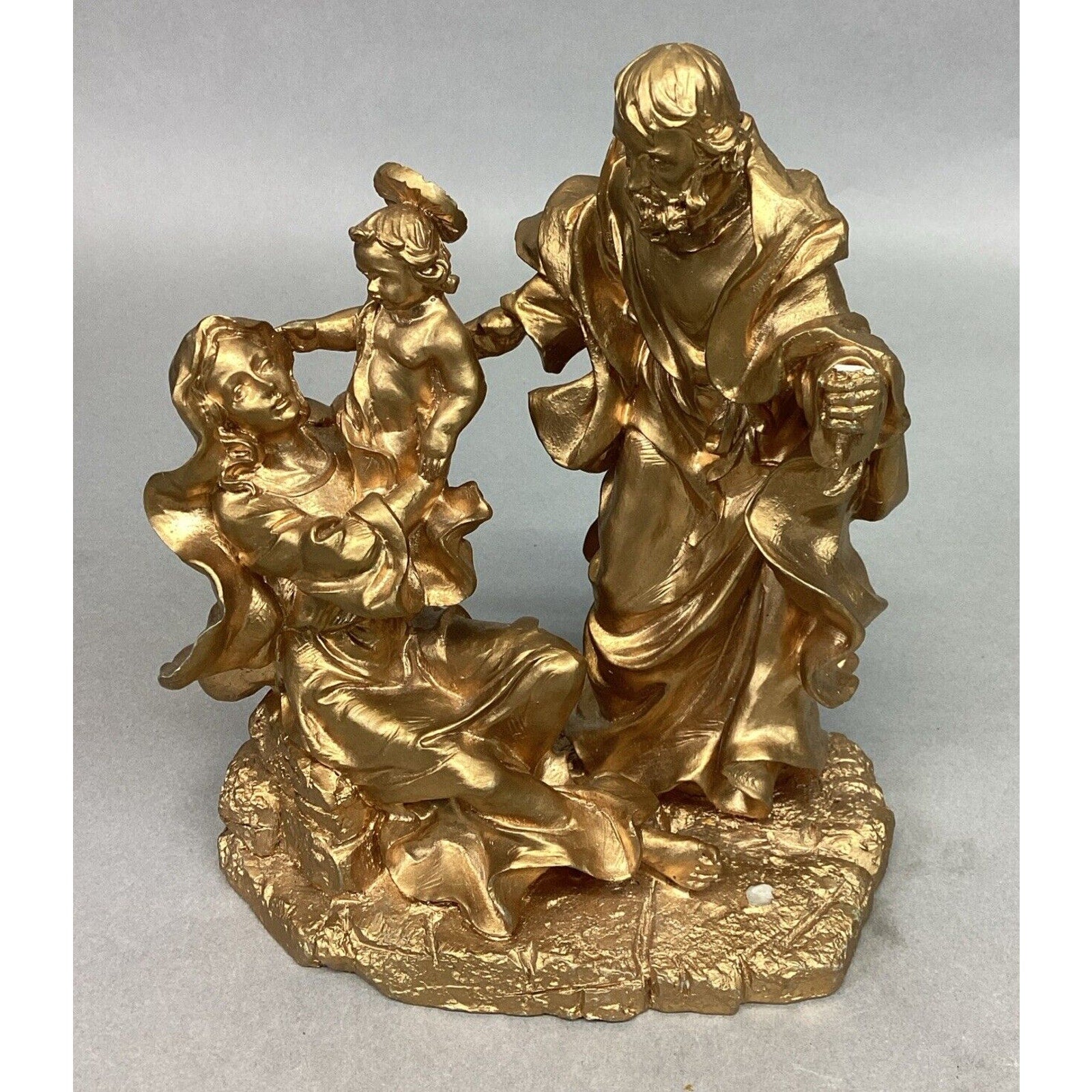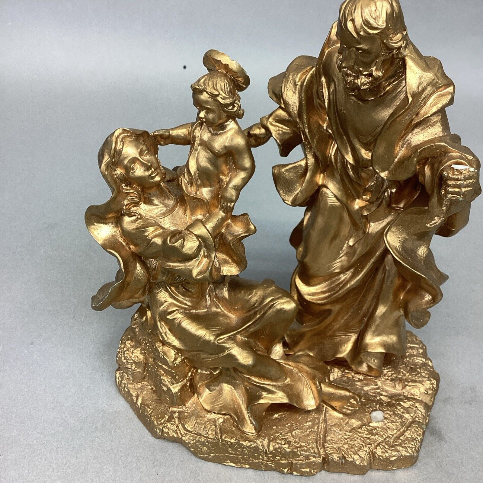 Holy Family In Gold Statue Figurine - 6.5”Hx5”Lx3.5”W. It has 2 chips which can be seen in the pictures. In good condition otherwise.