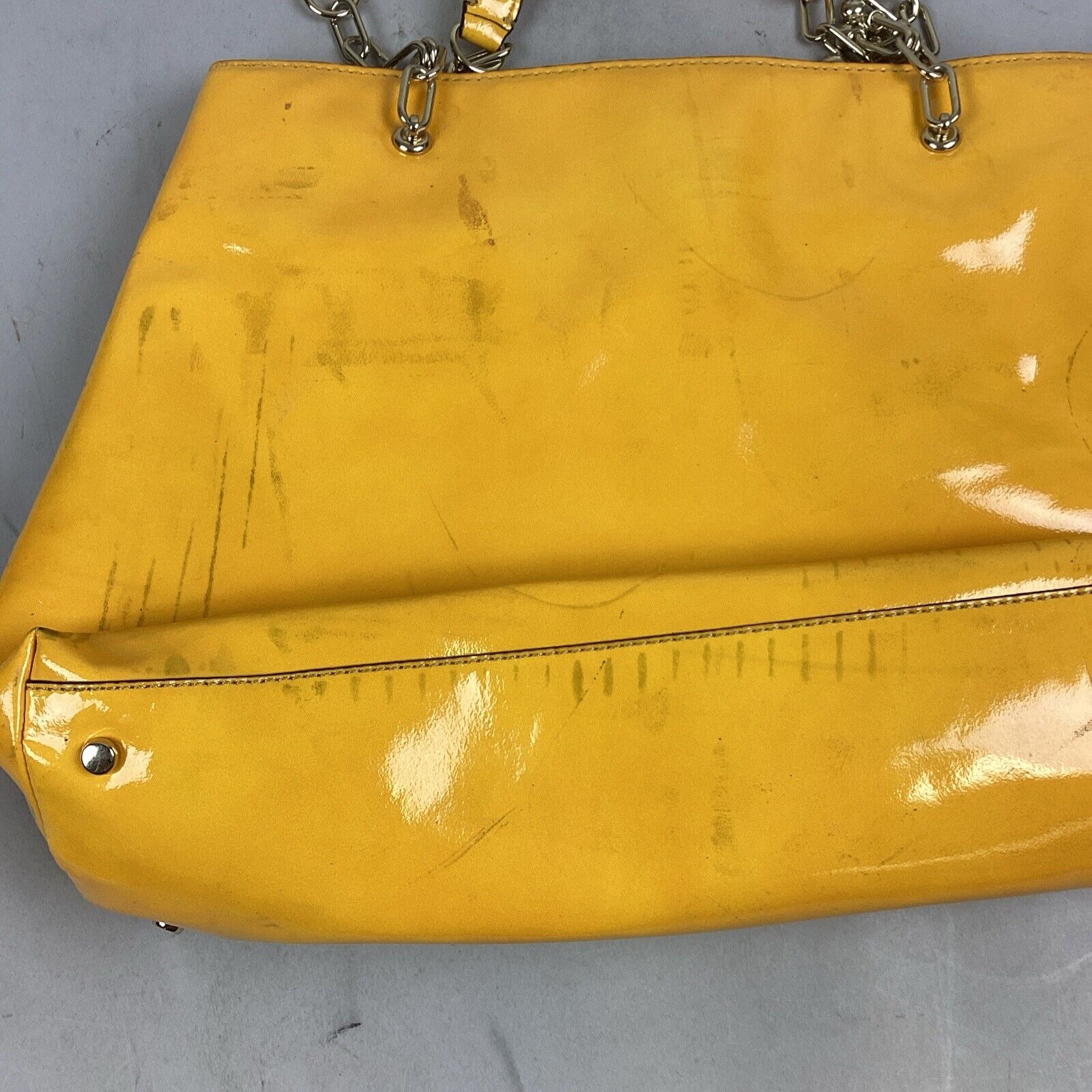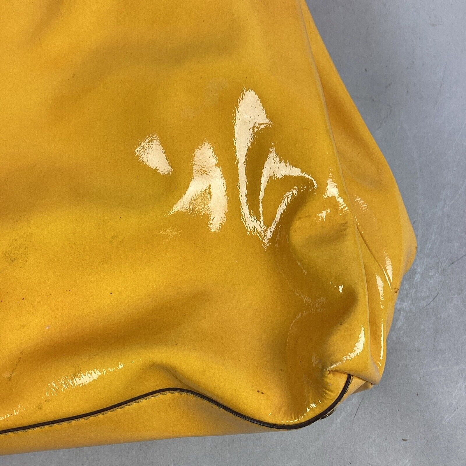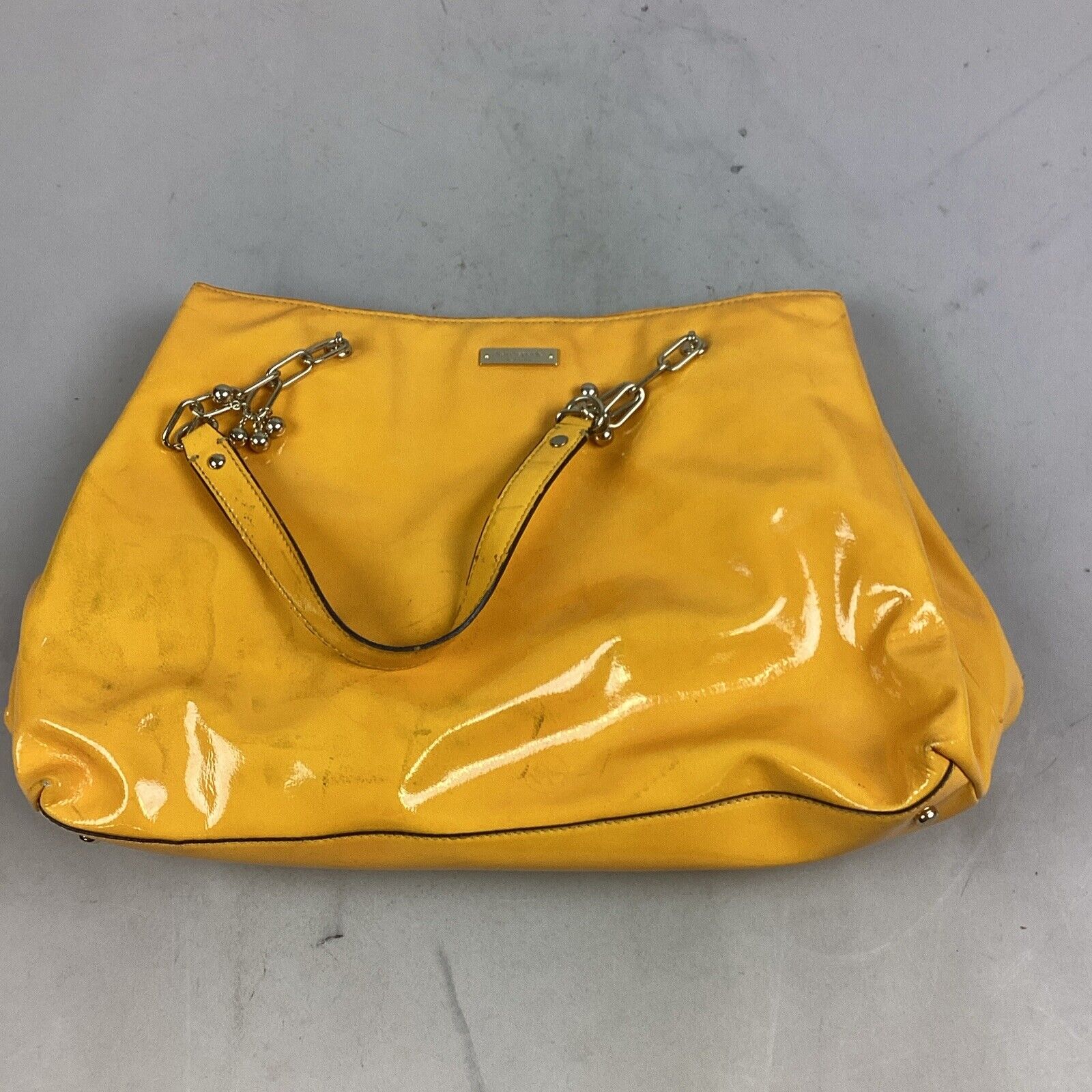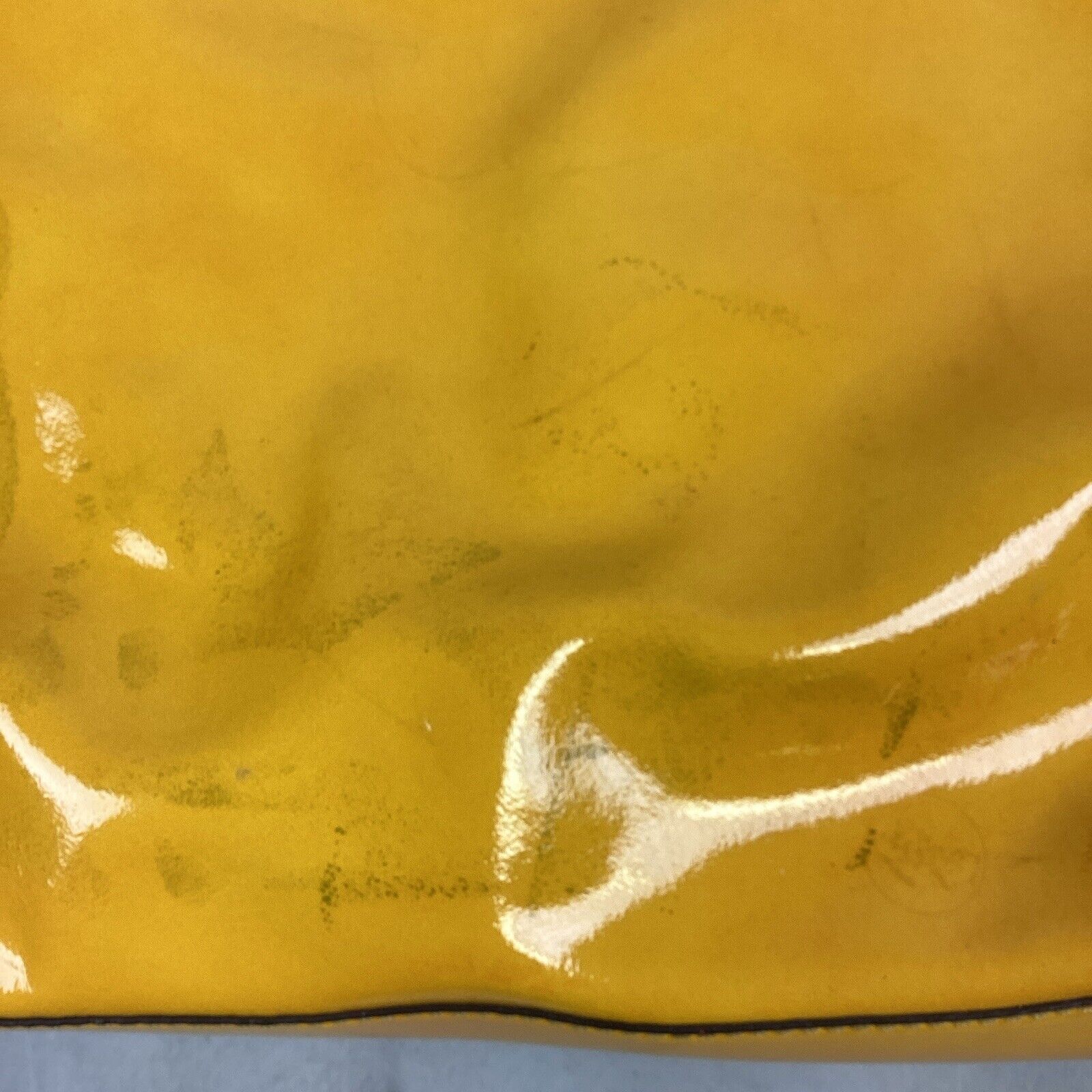 You are bidding on a Kate spade mustard yellow hand bag. It’s in pre-owned and well loved condition. There are quite a few stains and marks on the bag. With the stains as they are, I’d say it’s in poor condition. There are no rips or tears in it. There are 3 large interior compartments with 3 smaller pockets.