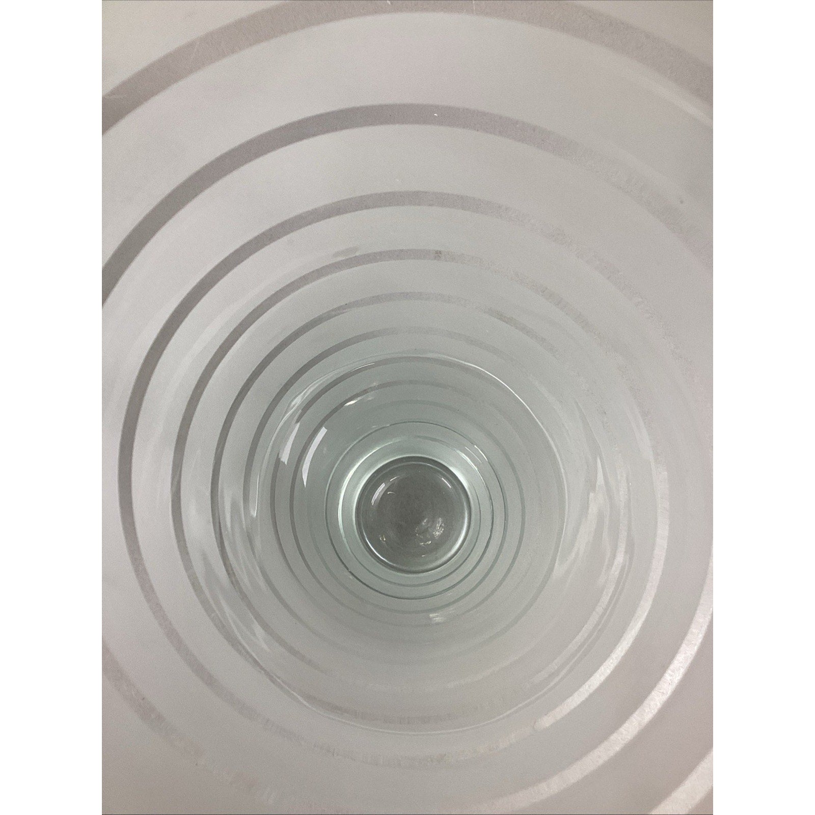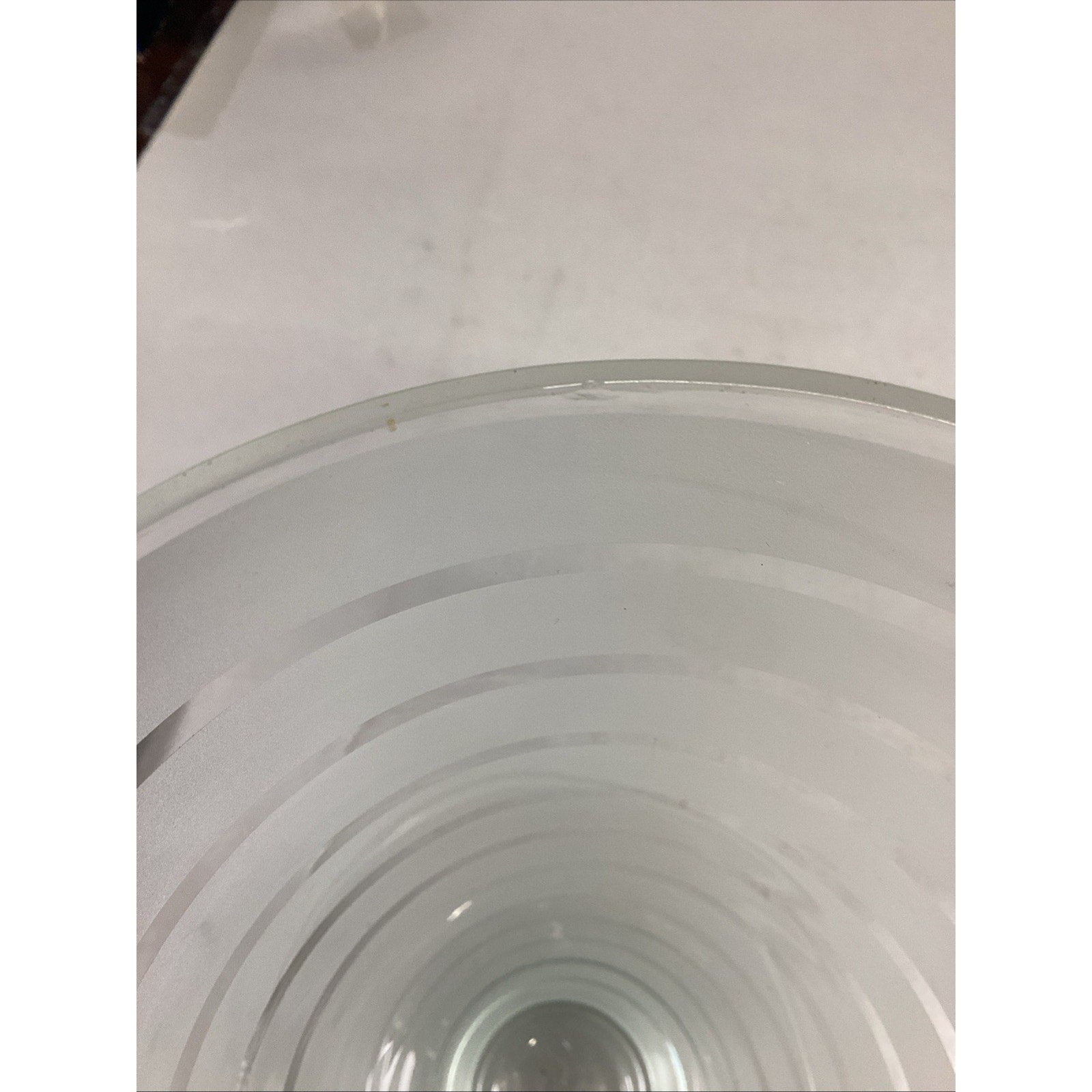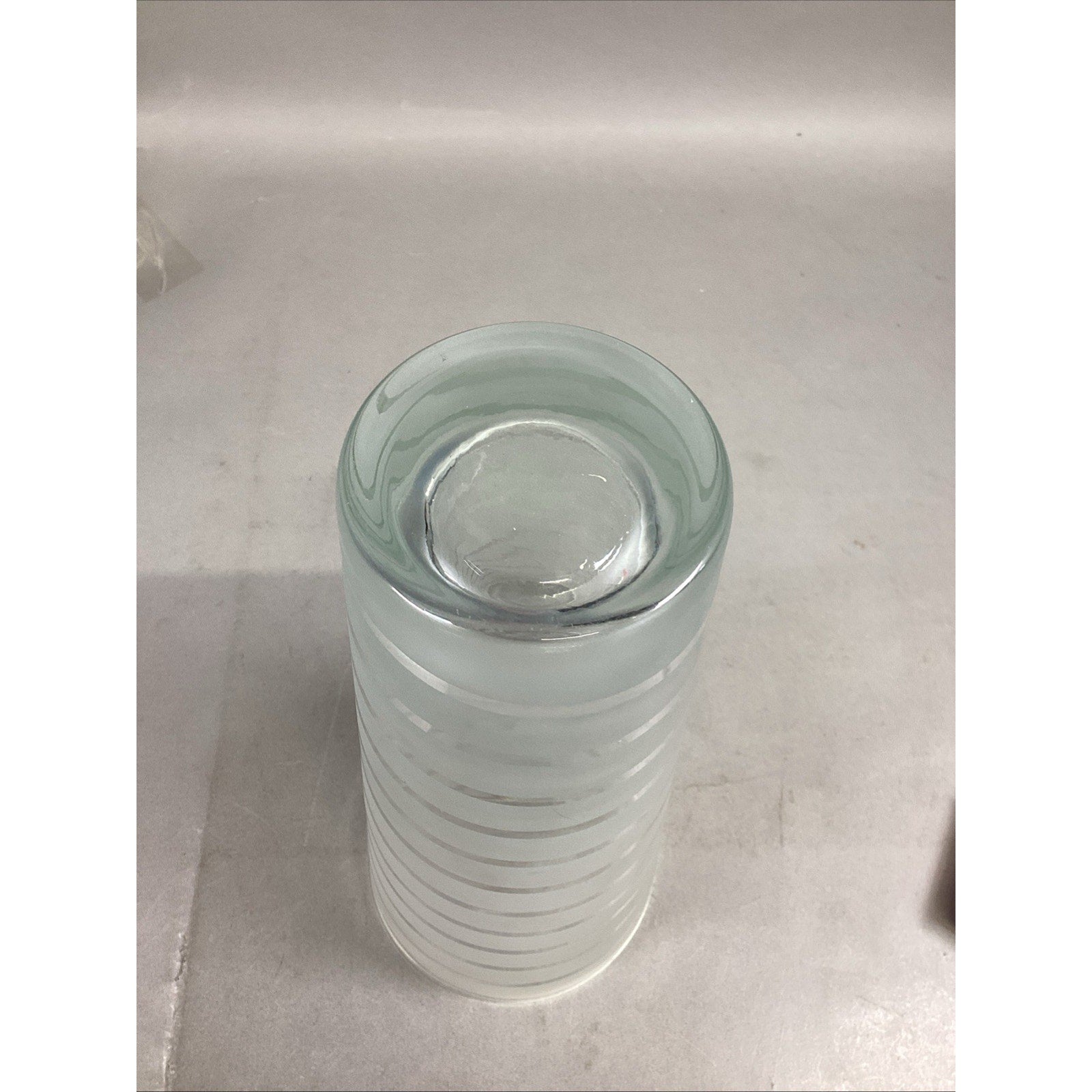 Large Glass Striped Vase - 13 1/4”H. In mostly good condition. There are few very small chips in the glass on the top edge. Tried taking pictures of them, but most pictures came out too blurry. The stripes are frosted. There are some marks and scratches on the vase as well.