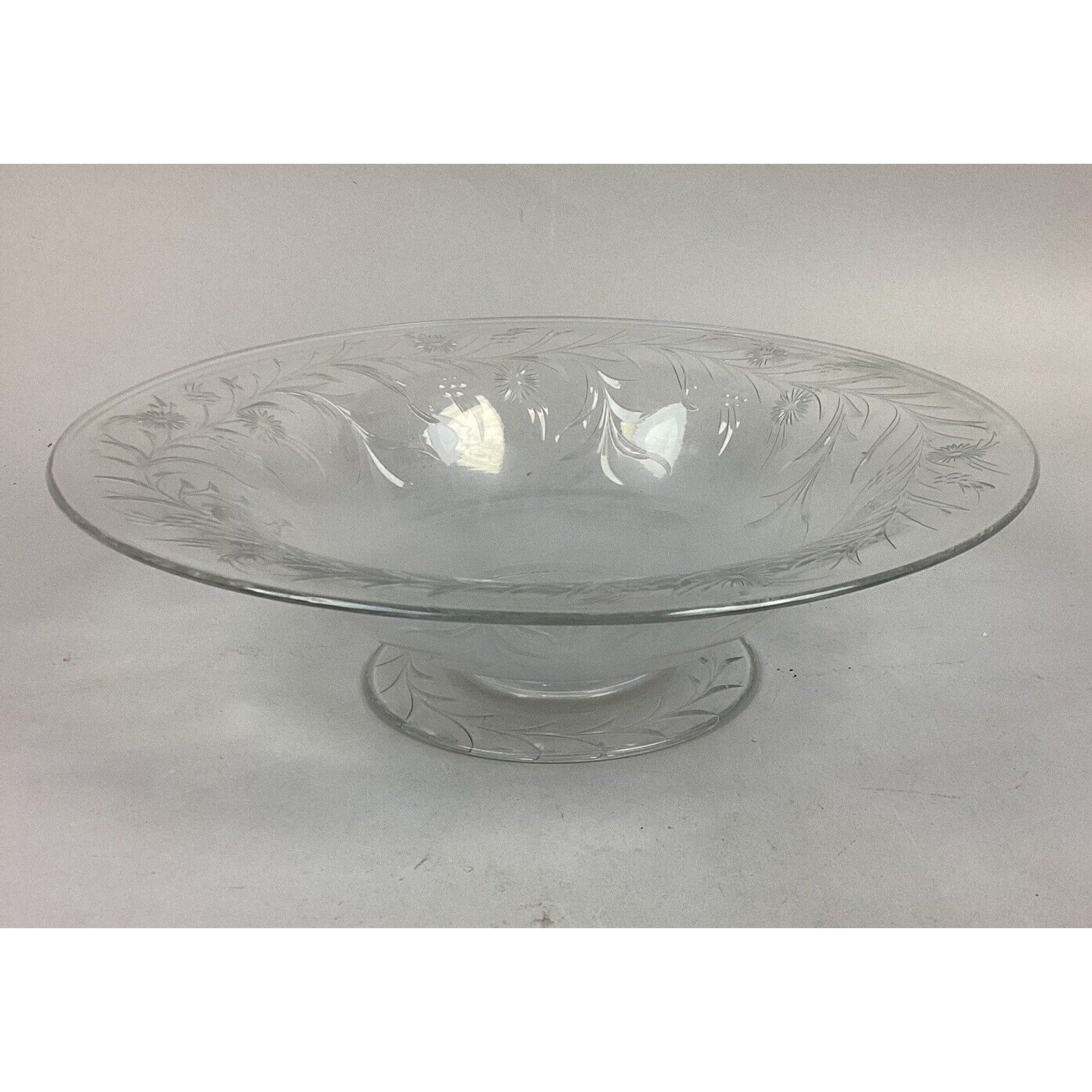 Large Vintage Glass Floral Salad Serving Bowl - 12”D