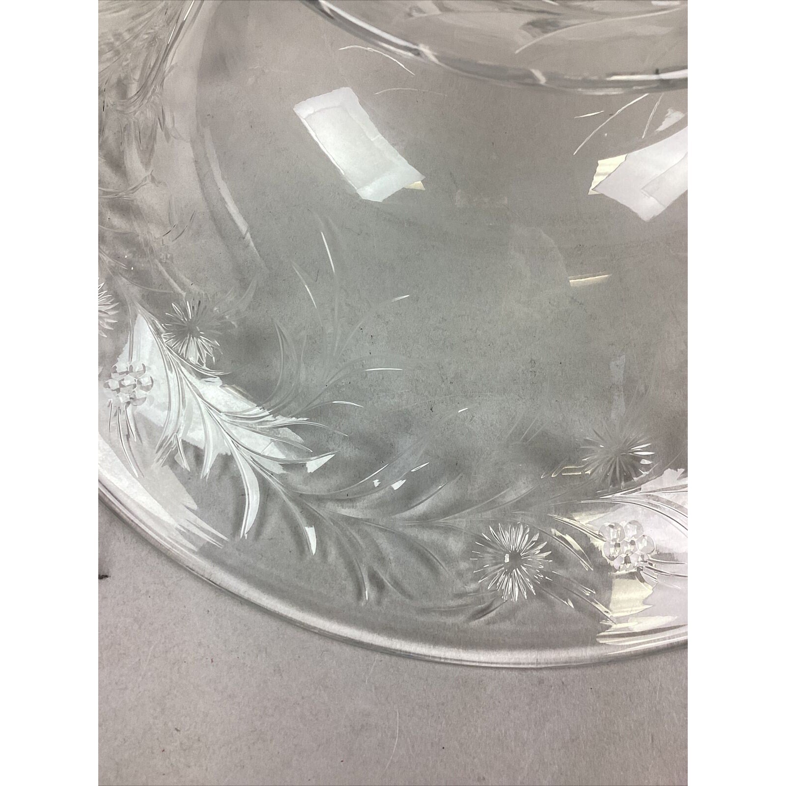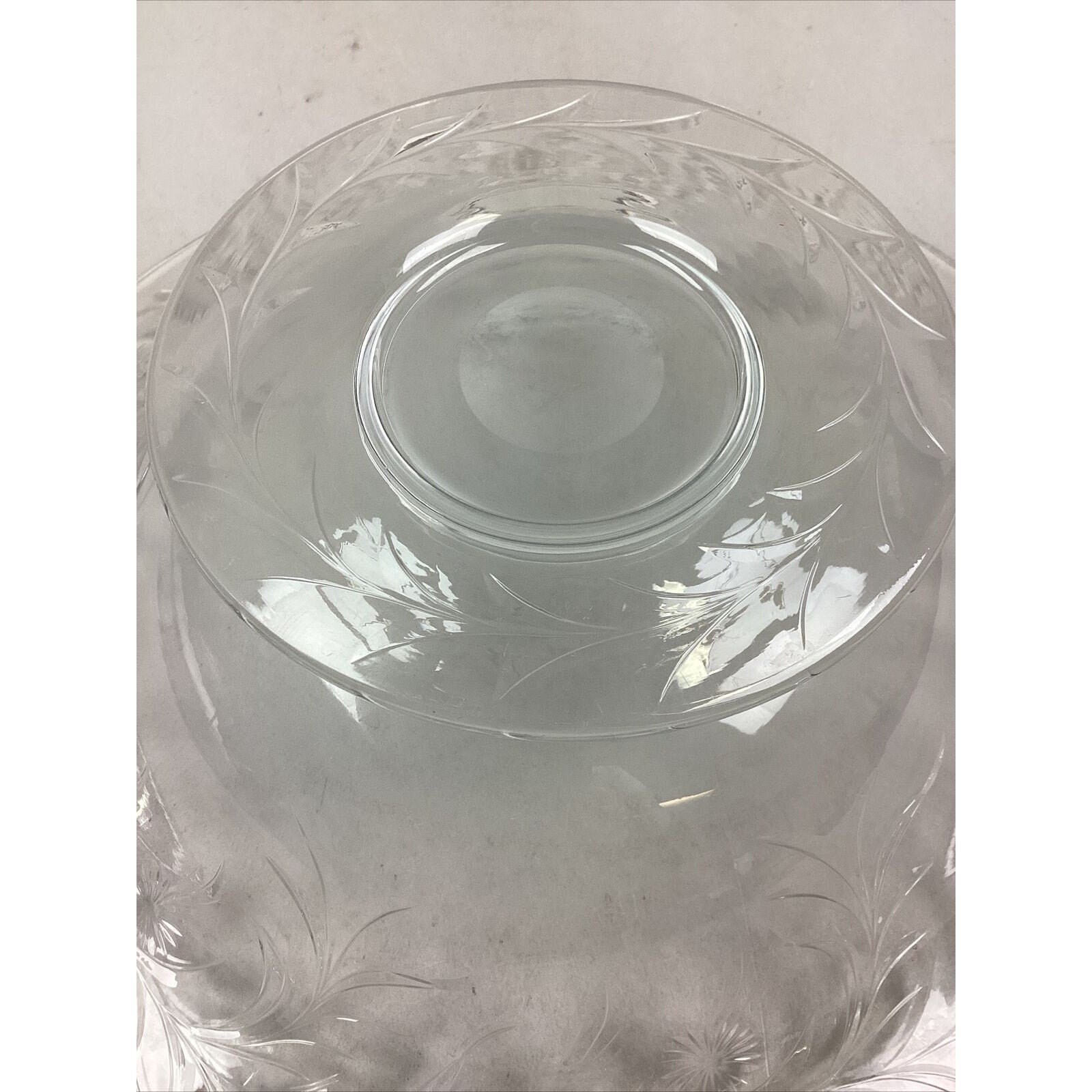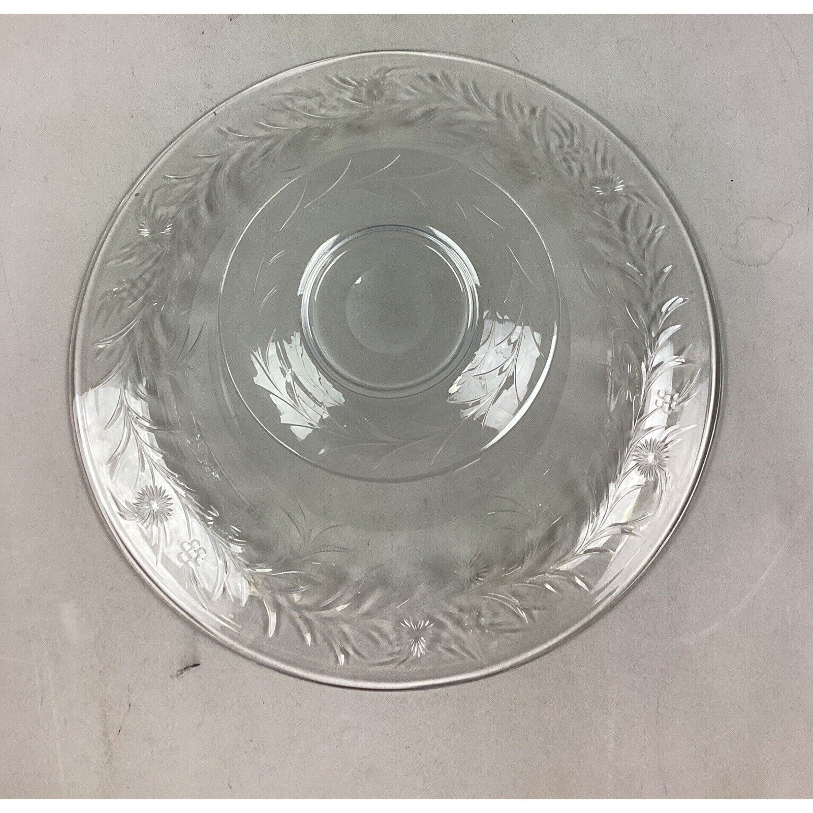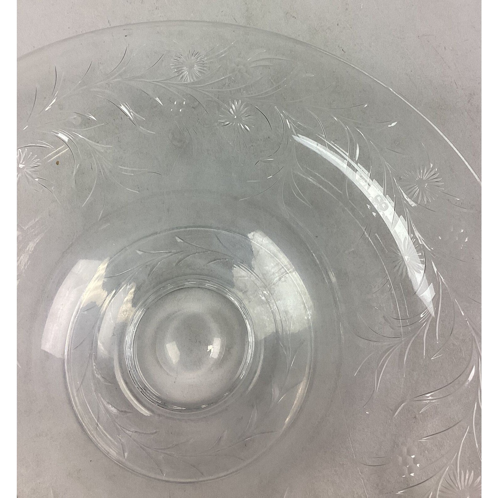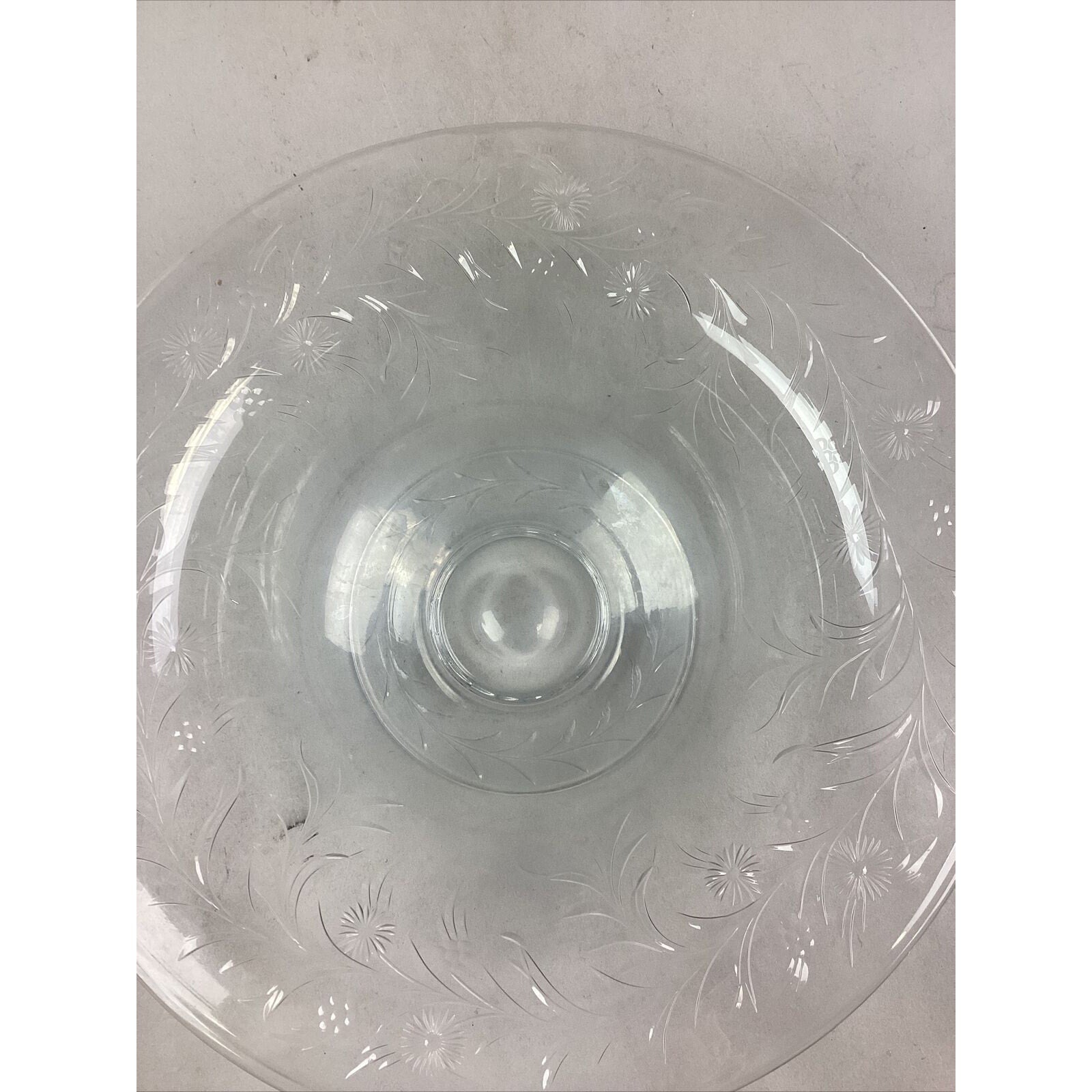 You are bidding on a large vintage glass floral salad serving bowl. No cracks or chips in the glass but it’s a little clouded mostly near the base.
