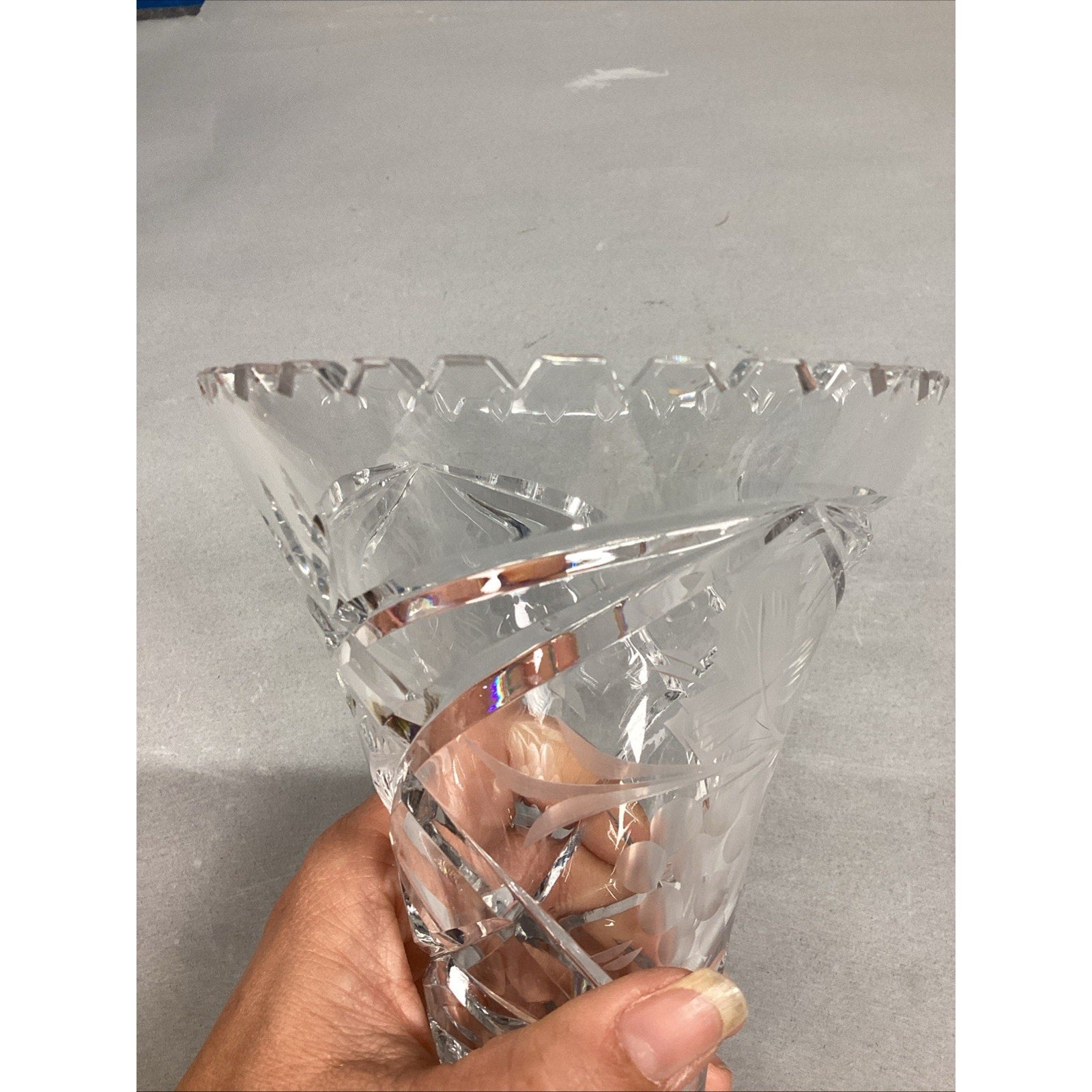 Lausitzer Glass 24% Lead Crystal Etched Hand Cut Vase Germany Grape Pattern. No cracks or chips but it does have some scratches. Measures 6.25”Hx4.5”D