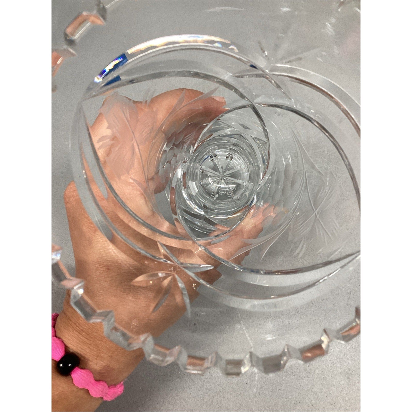 Lausitzer Glass 24% Lead Crystal Etched Hand Cut Vase Germany Grape Pattern