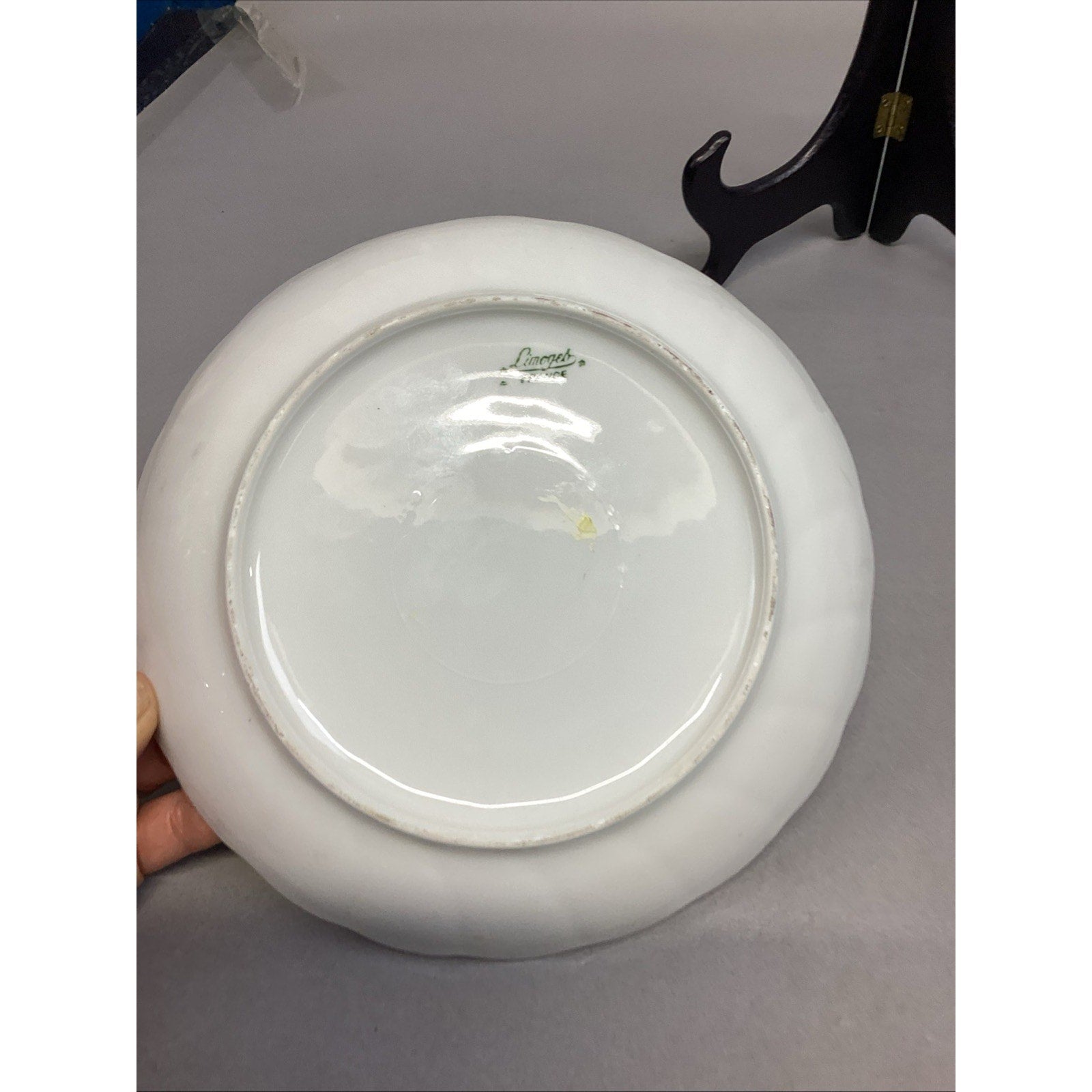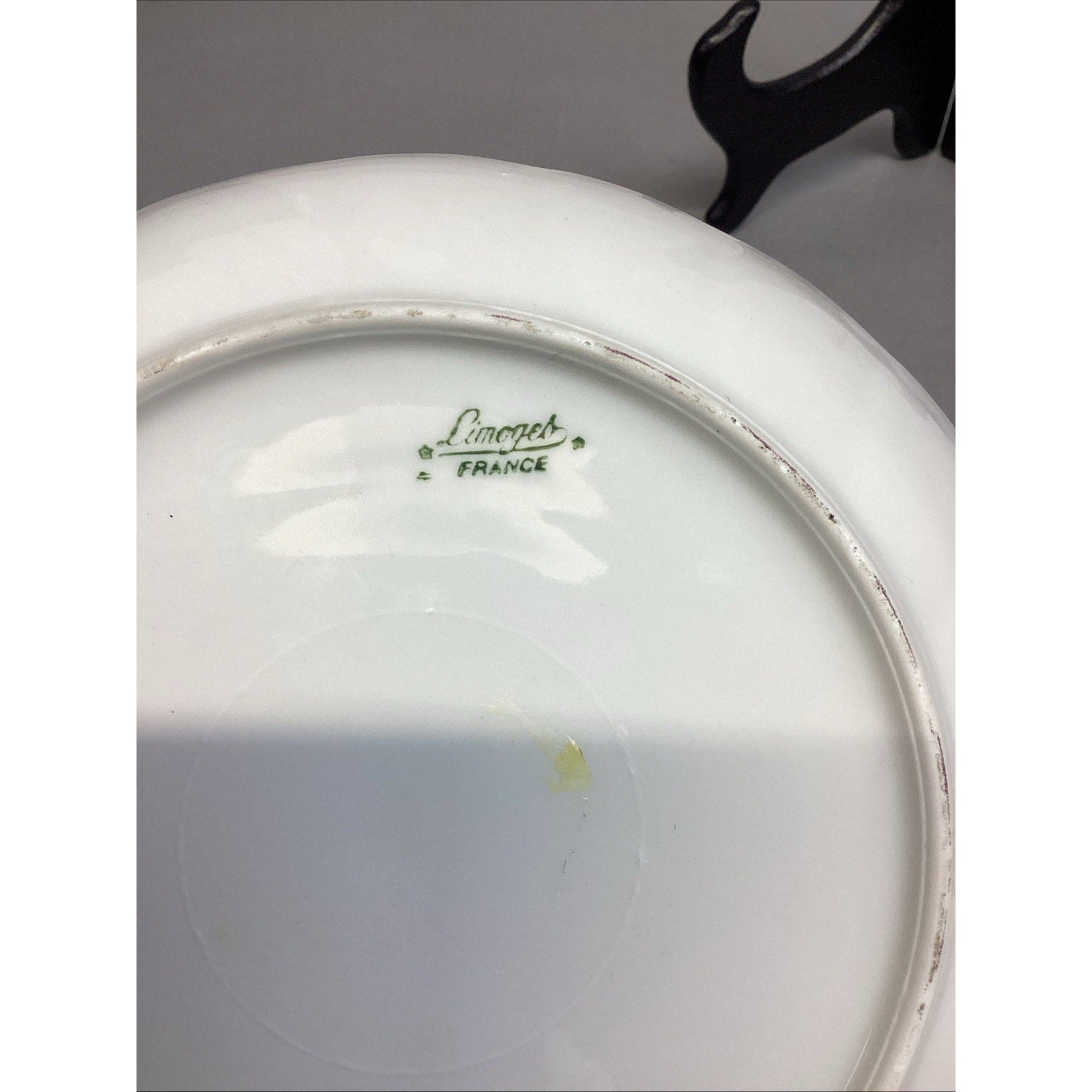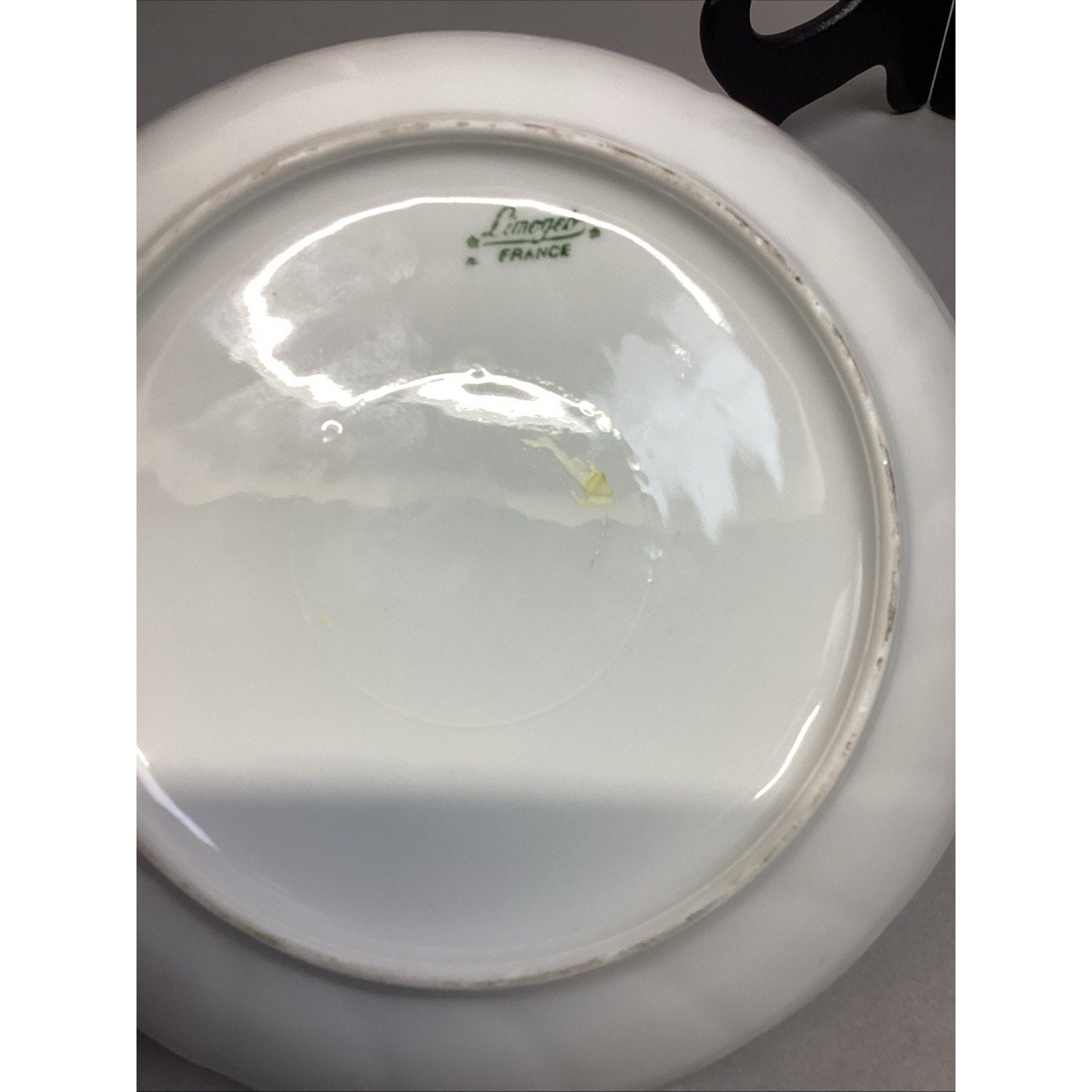 Limoges Floral White Dessert Dish - Made In France. In good condition. There are a few stains and there’s a little sticky residue on the base. No cracks or chips. The flowers look good. This item measures 1”Hx7.5”D