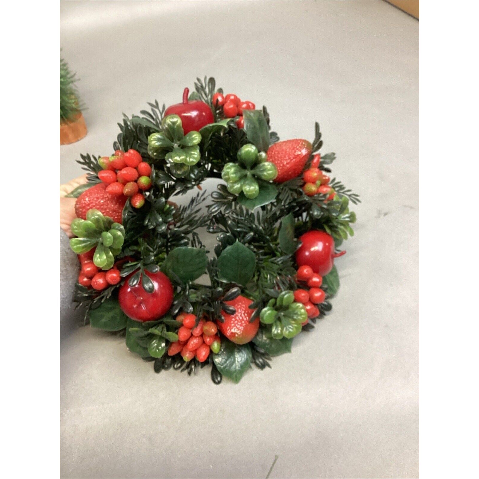 This listing is for a Lot Of 18 - Christmas Wreath, 5 Mini Trees, 2 Centerpieces & Strawberry Ornaments