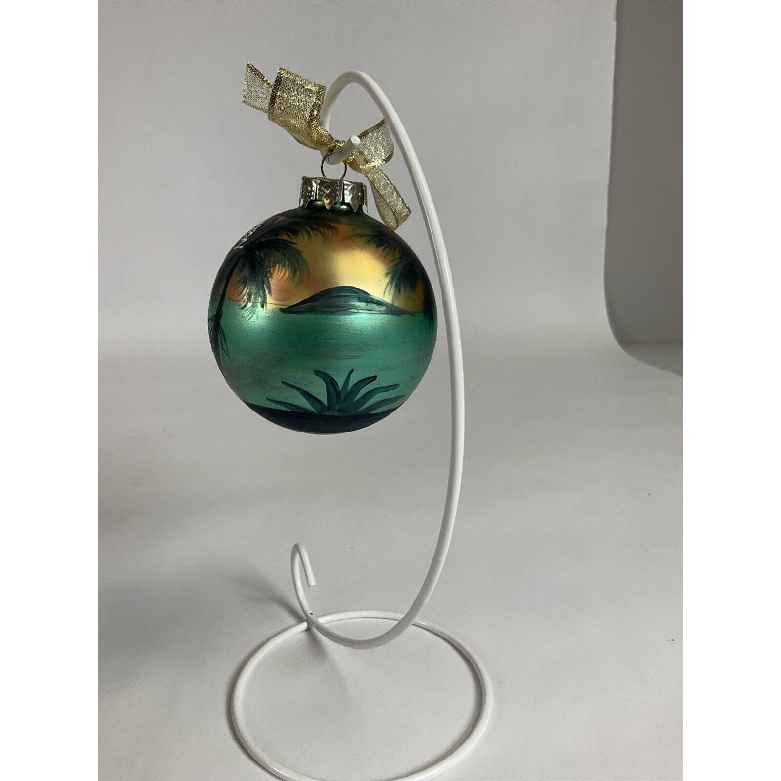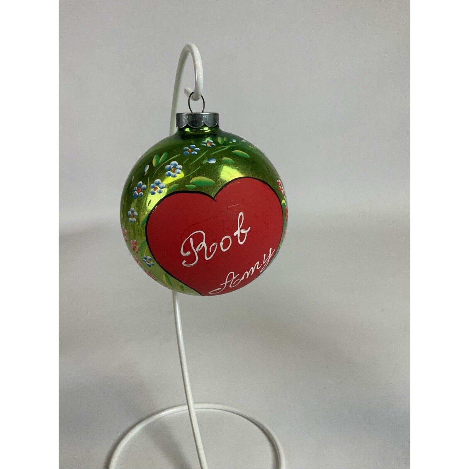 Lot Of 4 Vintage Glass Ball Ornaments : Snowy Hearts, San Fran, Miami, Floral